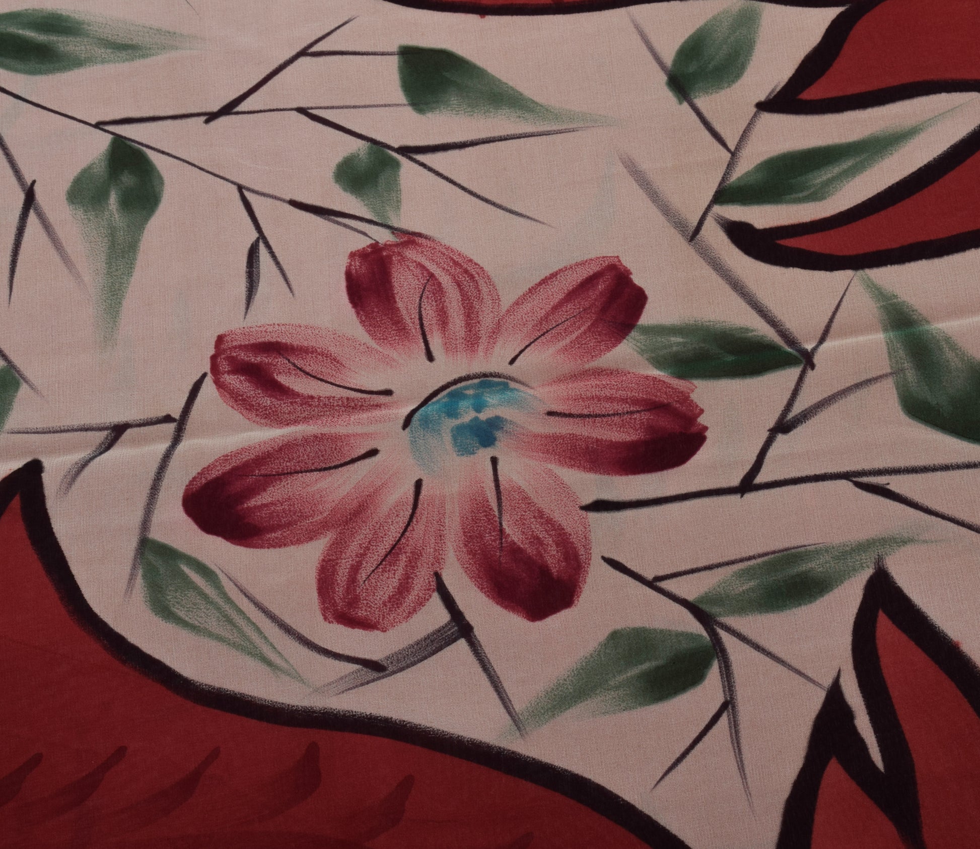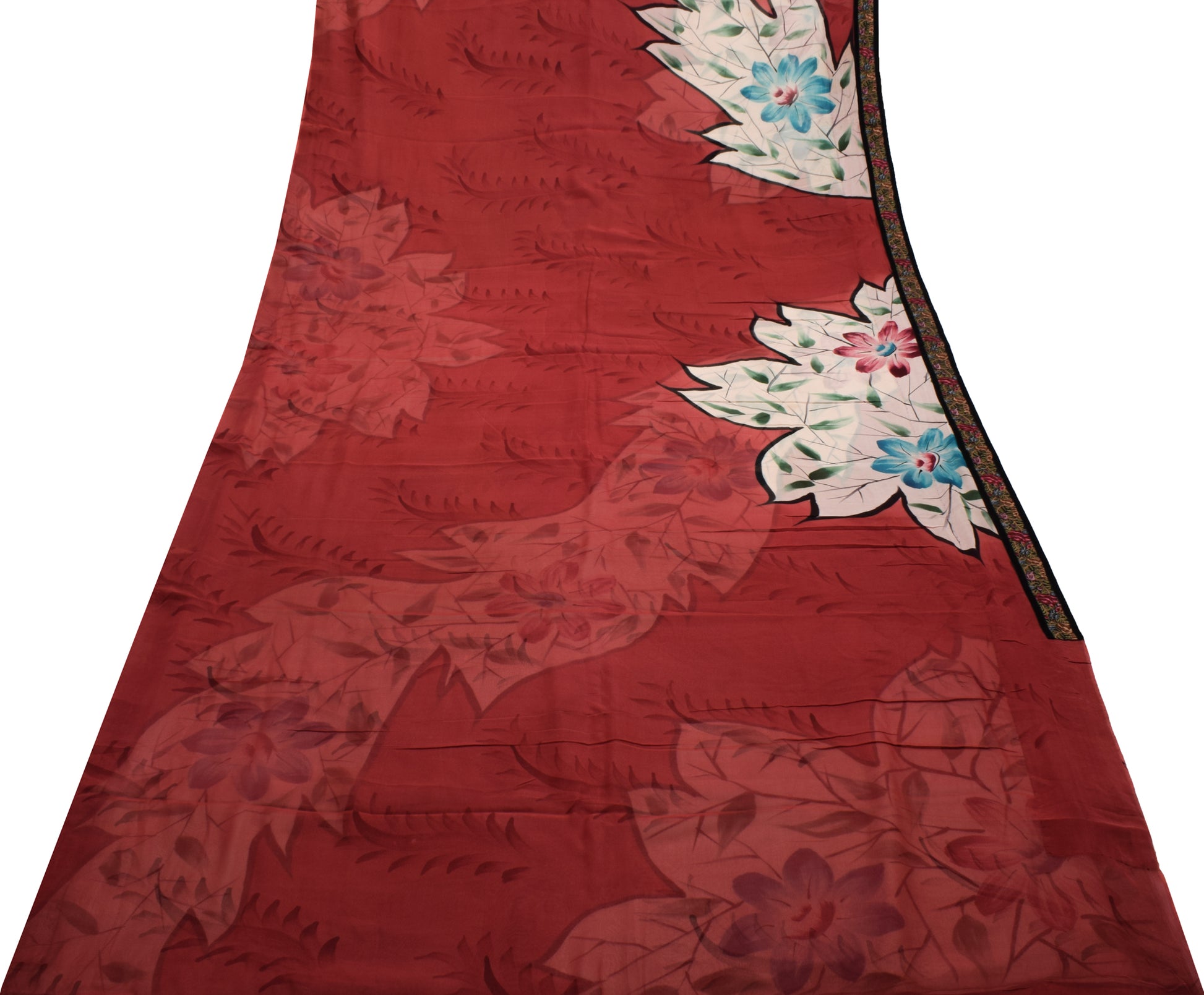 Sushila Vintage Maroon Saree 100%Pure Georgette Silk Printed Floral Craft Fabric