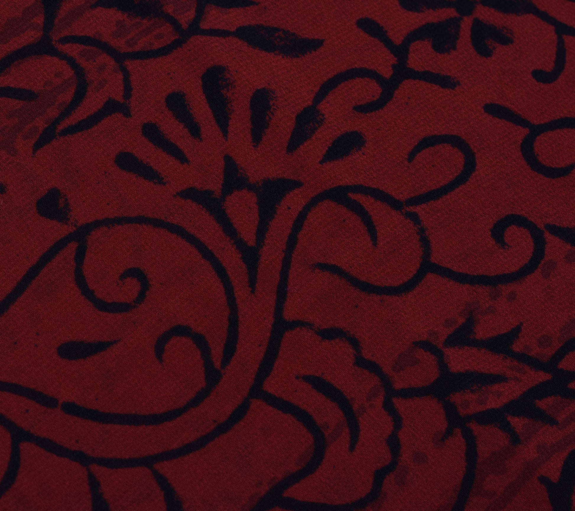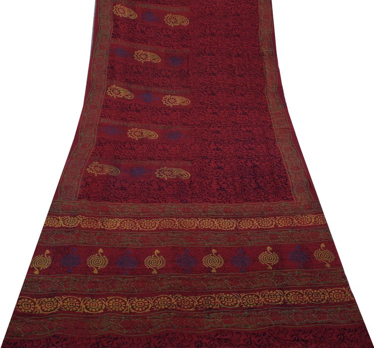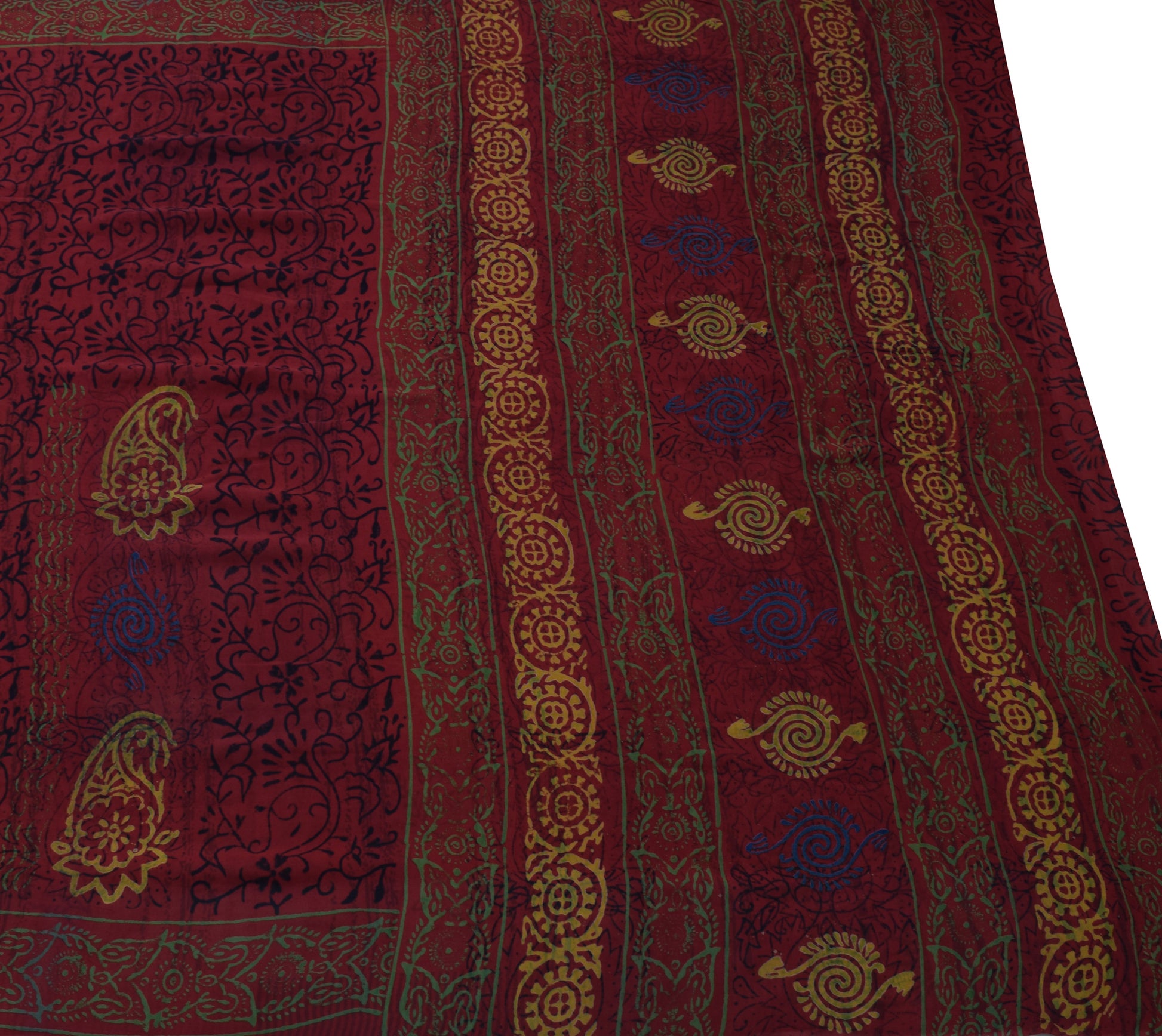Sushila Vintage Maroon Saree 100%Pure Georgette Silk Printed Floral Craft Fabric
