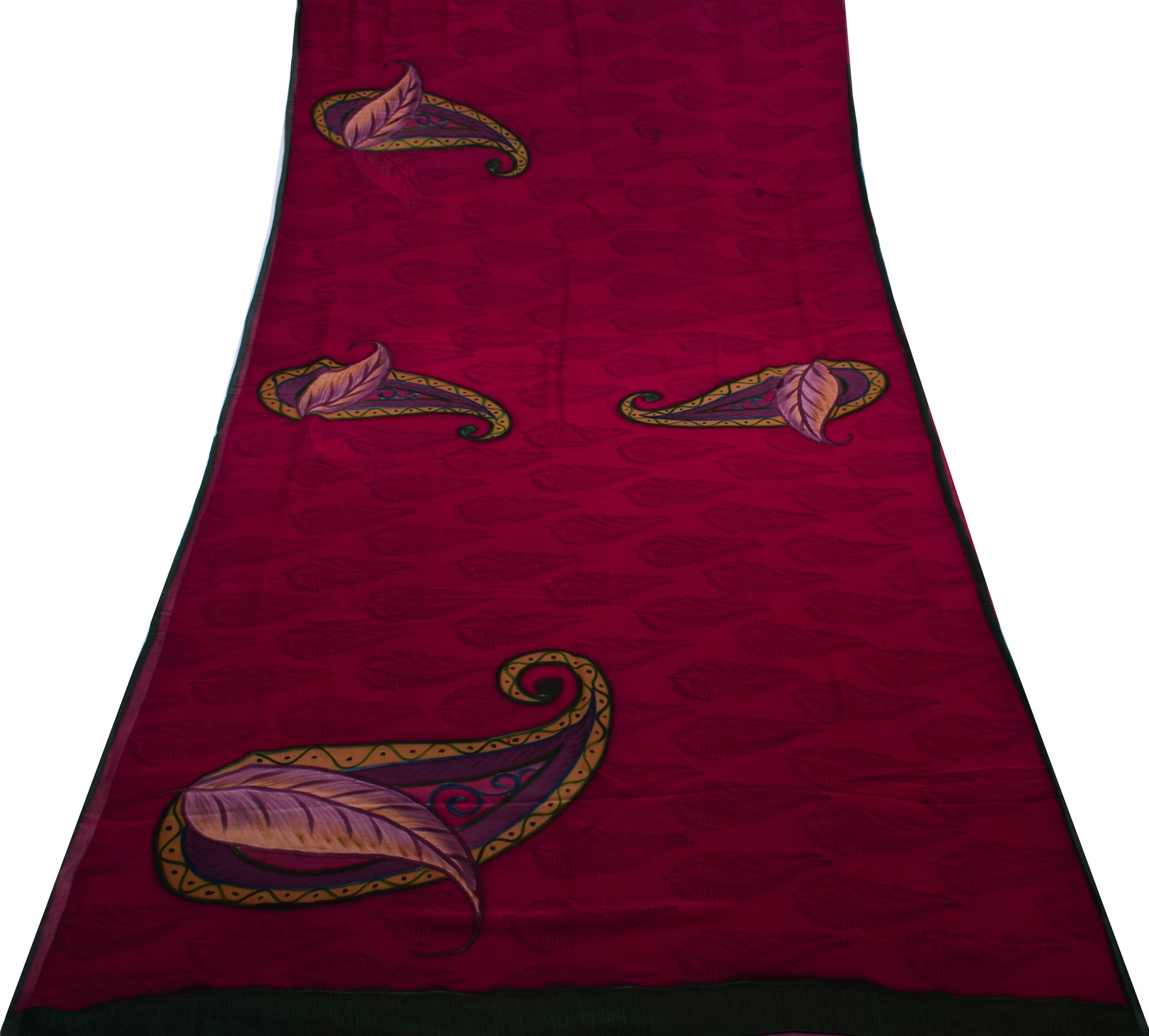Sushila Vintage Maroon Saree 100% Pure Georgette Silk Printed Paisley Fabric