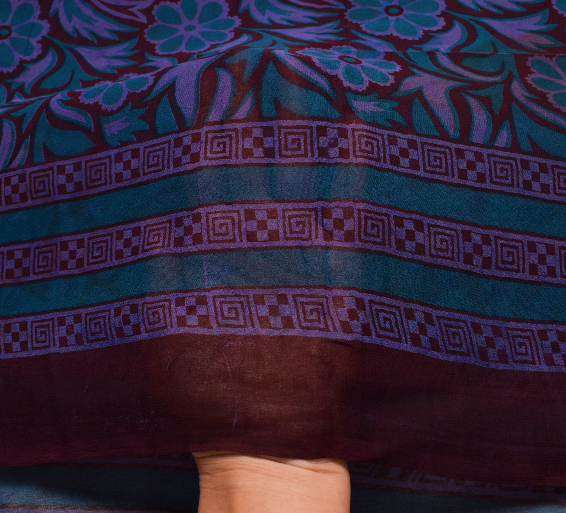 Step into classic sophistication with this Dark Maroon 100% Pure Georgette Silk saree, known for its elegant Floral designs and delicate Printed craftsmanship. It is perfect for special occasions, creative repurposing, or as a beautiful heirloom gift. Measuring approximately 41 Inch in length and 42 Inch in width, this sari offers versatile styling options. It is lightweight, weighing just 355 Grams (Actual Product weight), making it easy to drape and carry for long hours. The natural breathability and luxurious drape of 100% pure georgette silk make it a prized choice for those who appreciate fine craftsmanship and vintage fashion.