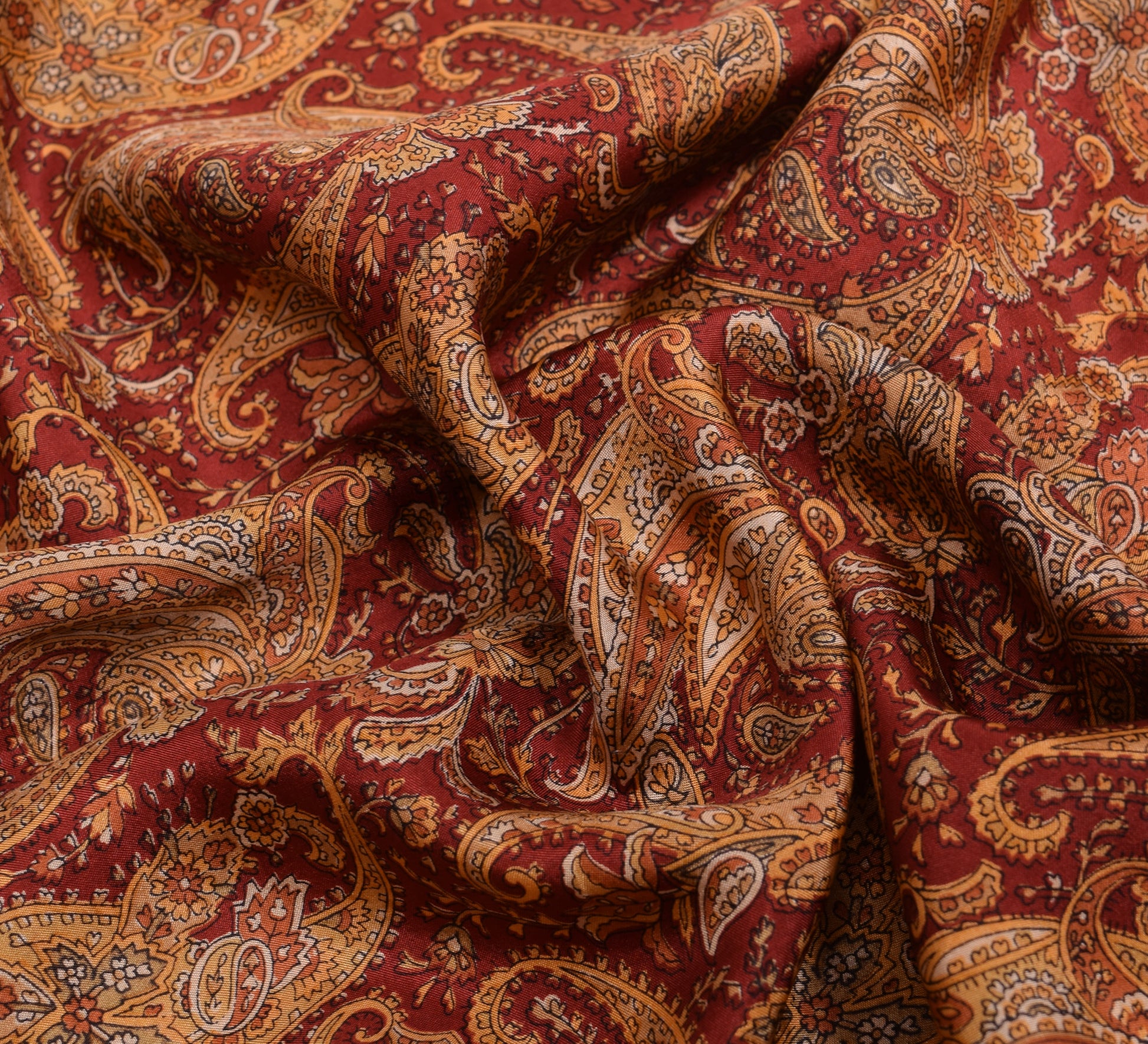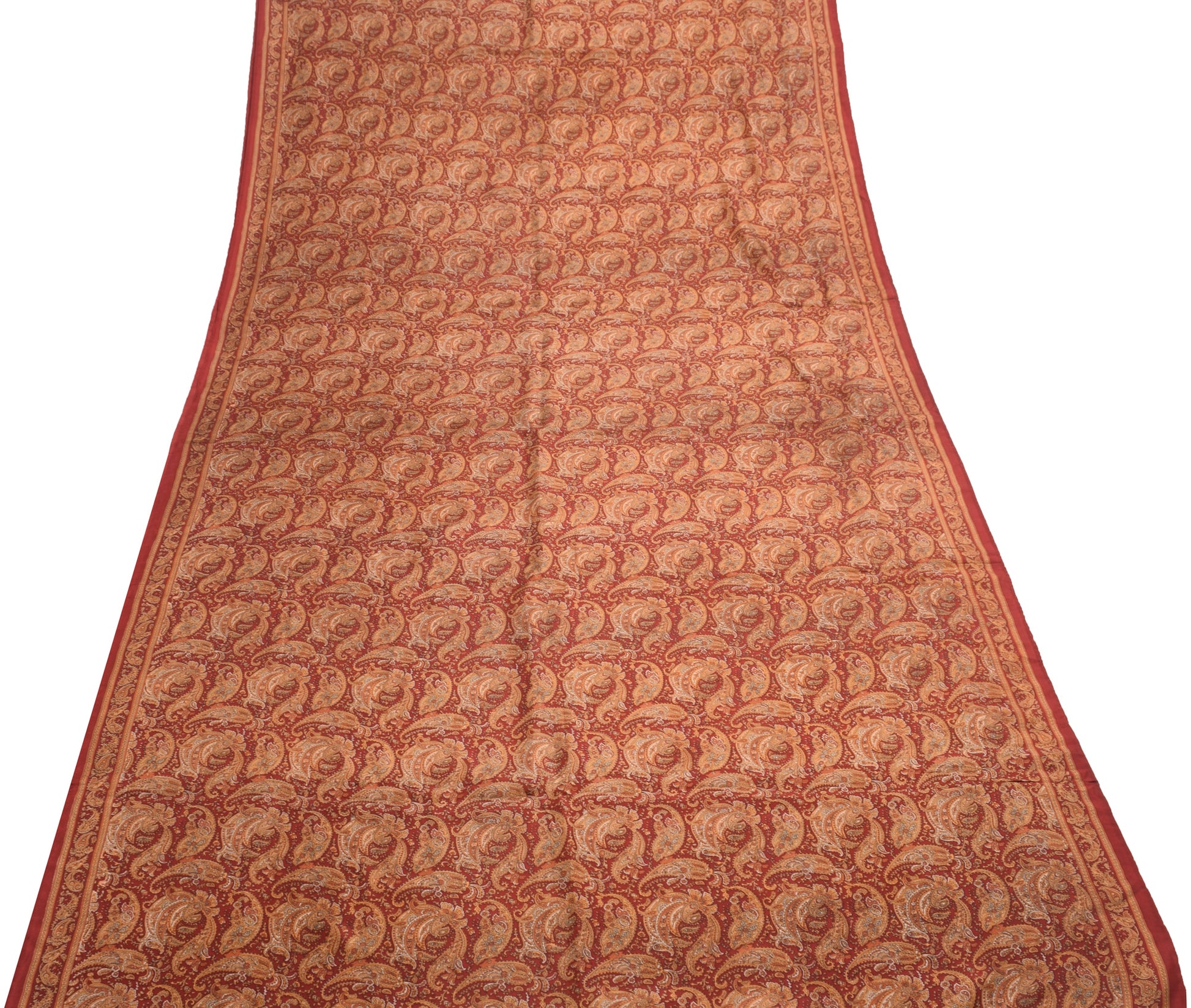 Sushila Vintage Maroon Saree 100% Pure Silk Paisley Printed Daily Wear Fabric