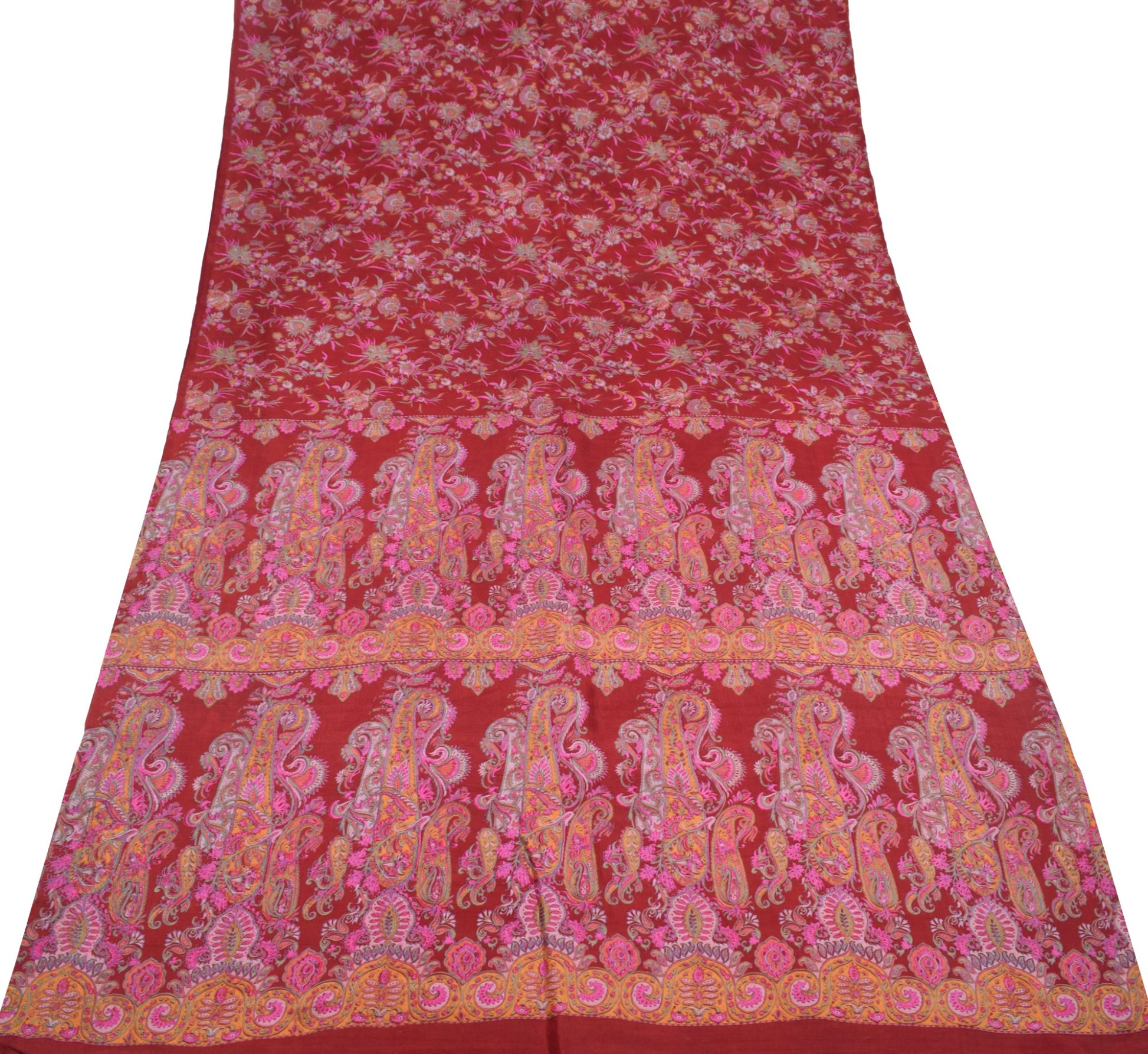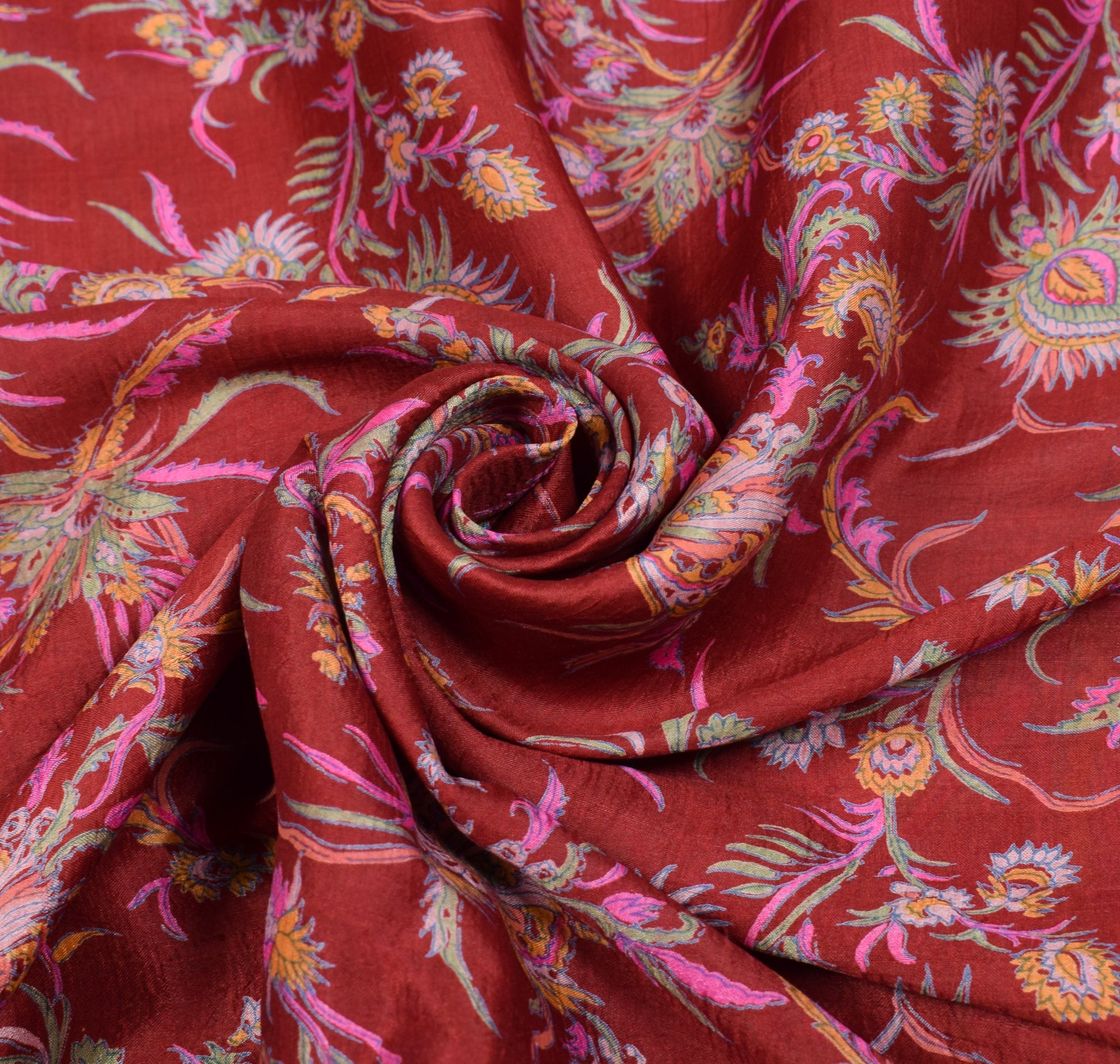 Sushila Vintage Maroon Saree 100%Pure Silk Printed Soft Sari Craft Floral Fabric