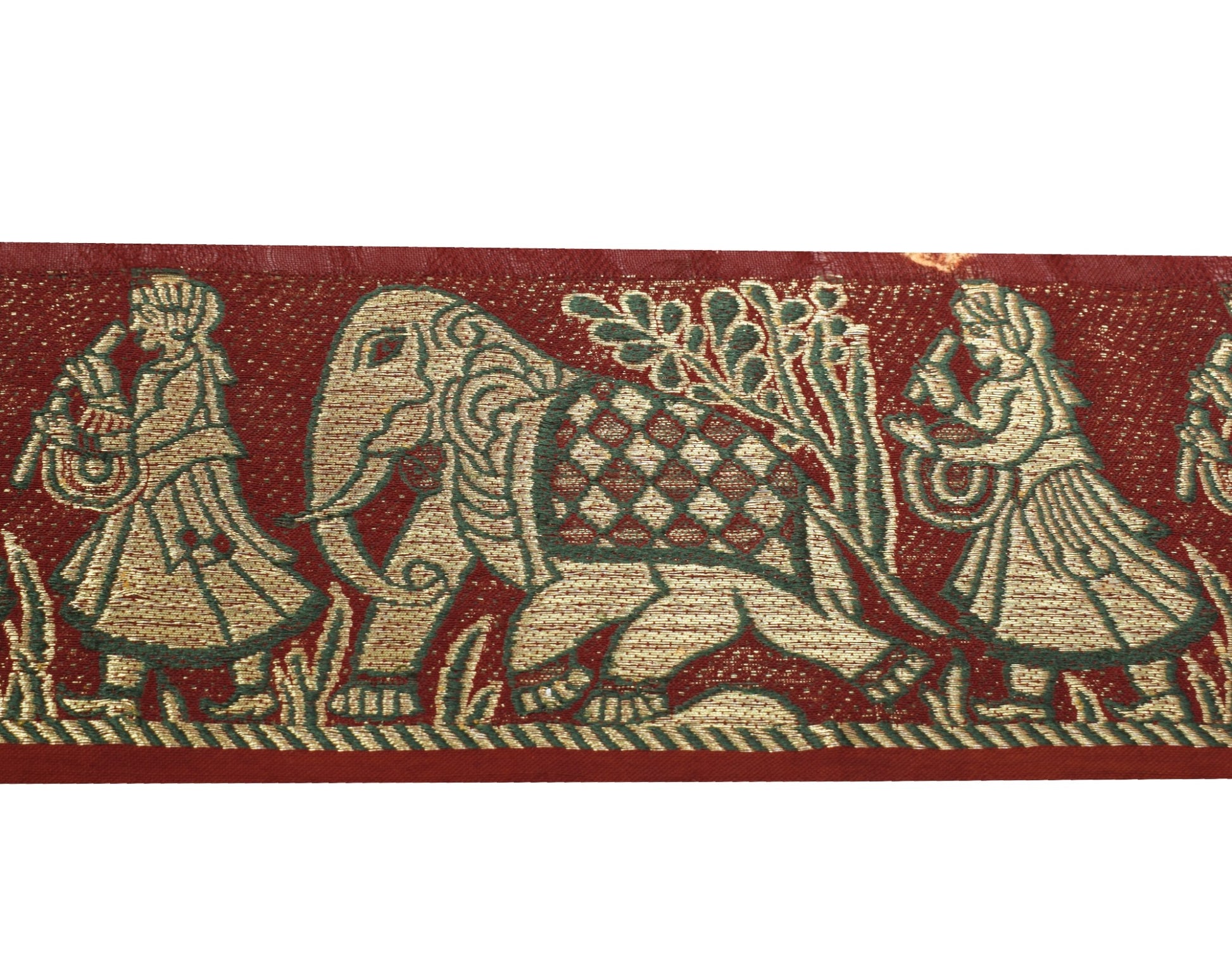 Sushila Vintage Maroon Saree Border Craft Sewing Trim Figure Woven Lace Ribbon