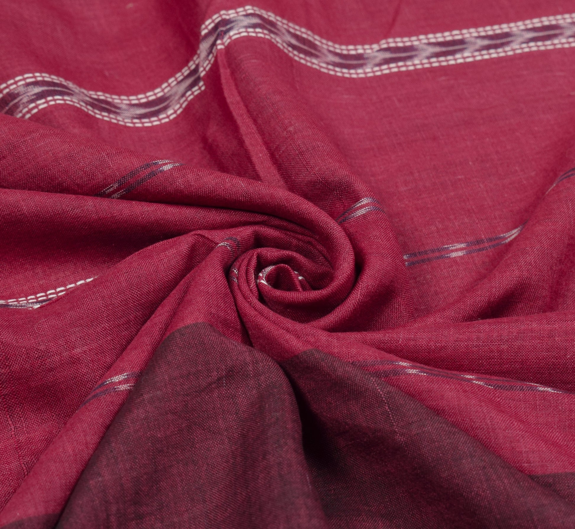 Sushila Vintage Maroon Saree Pure Cotton HandWoven Ikat Patola Sari Craft Fabric