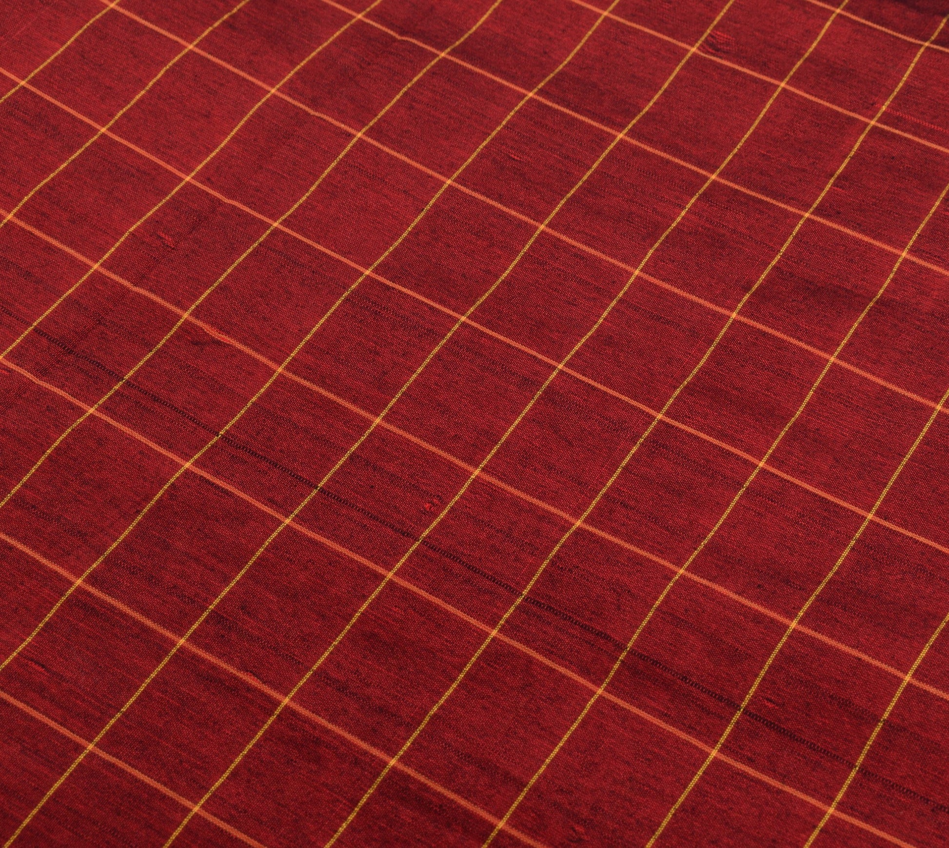 Sushila Vintage Maroon Saree Pure Cotton Silk Hand Woven Ikat with Checks Sari