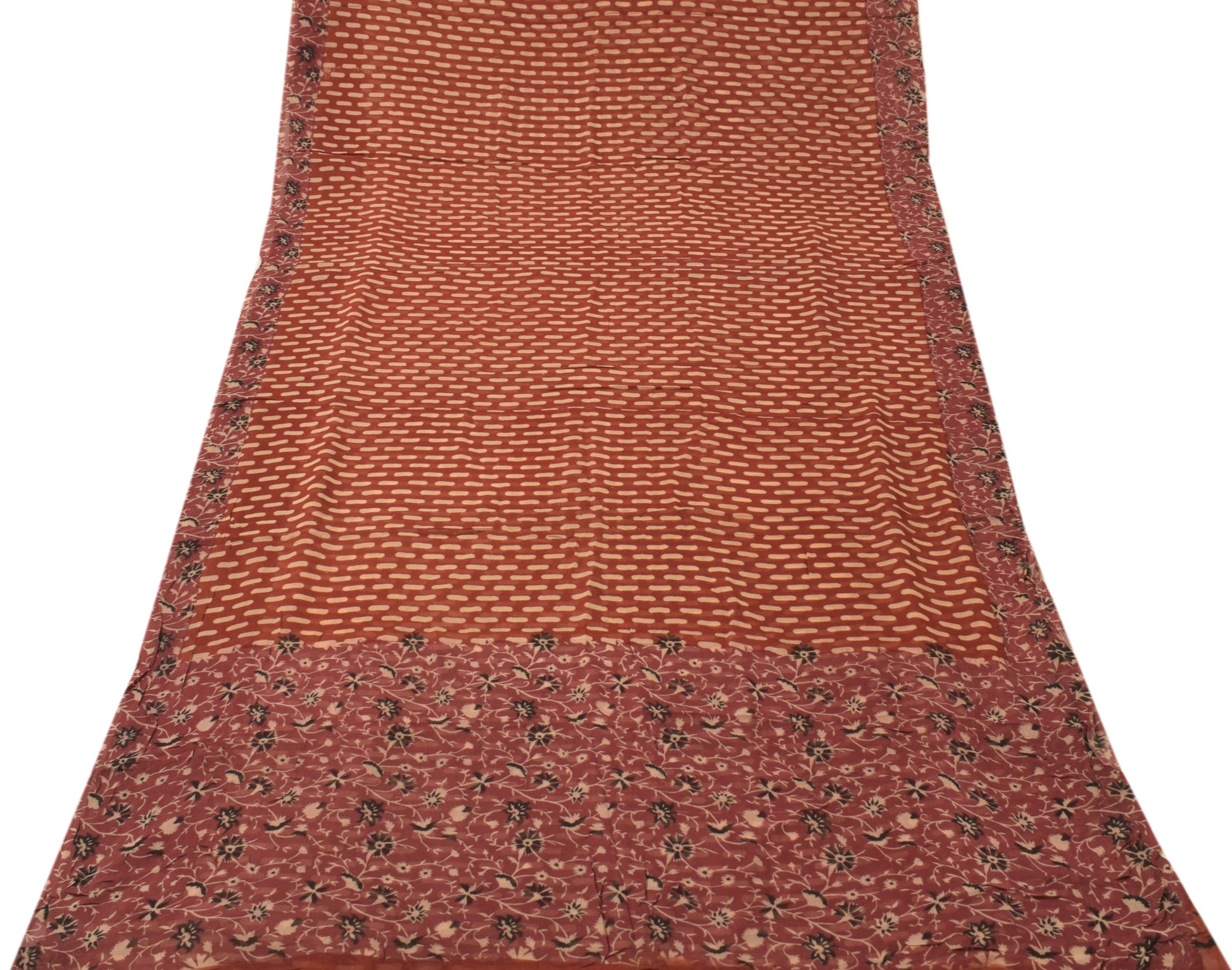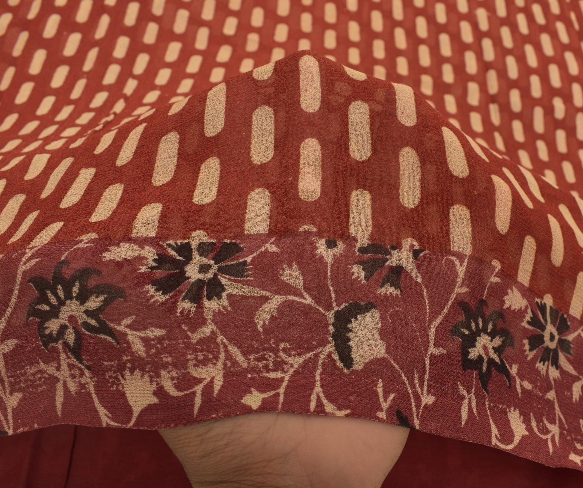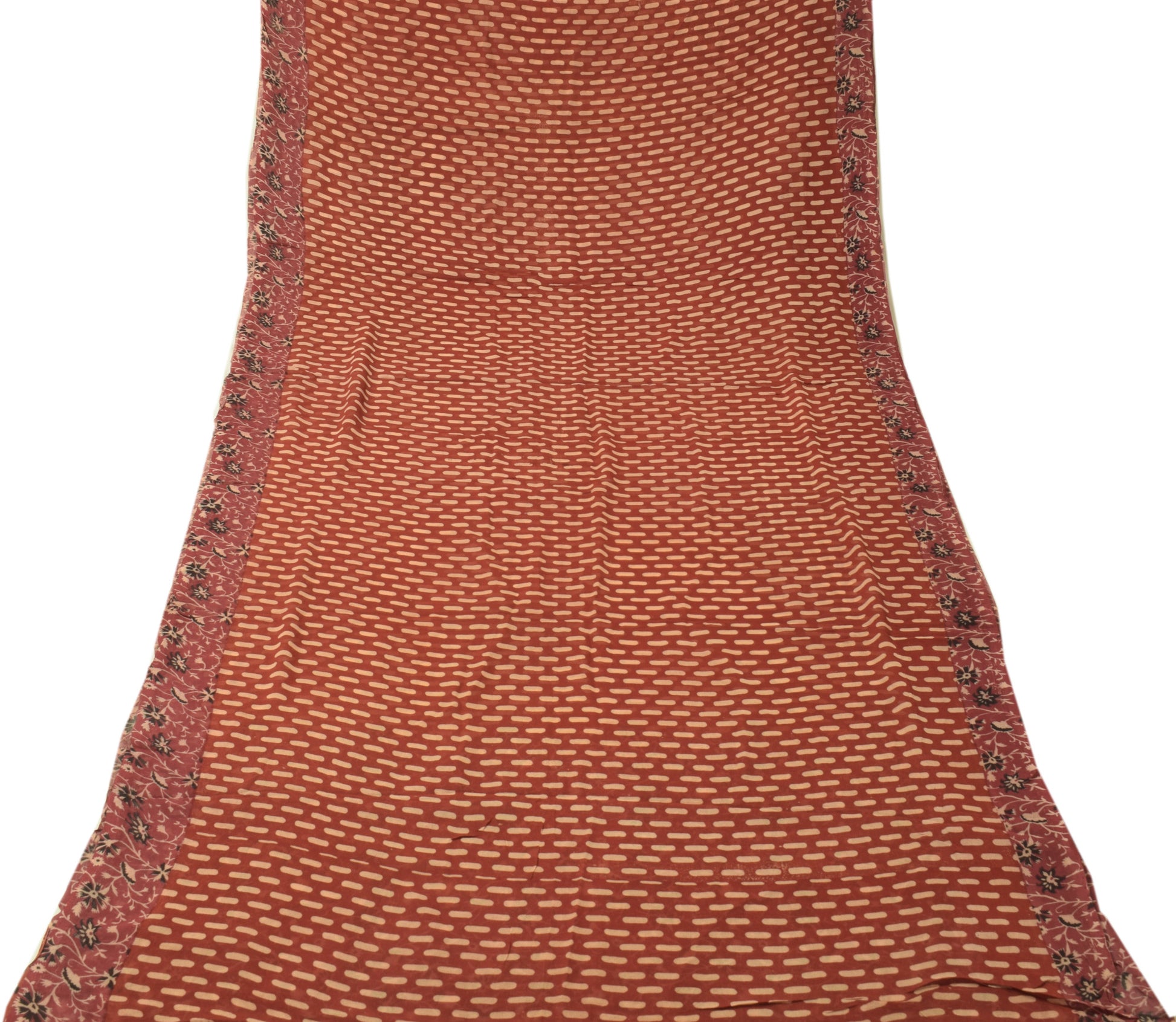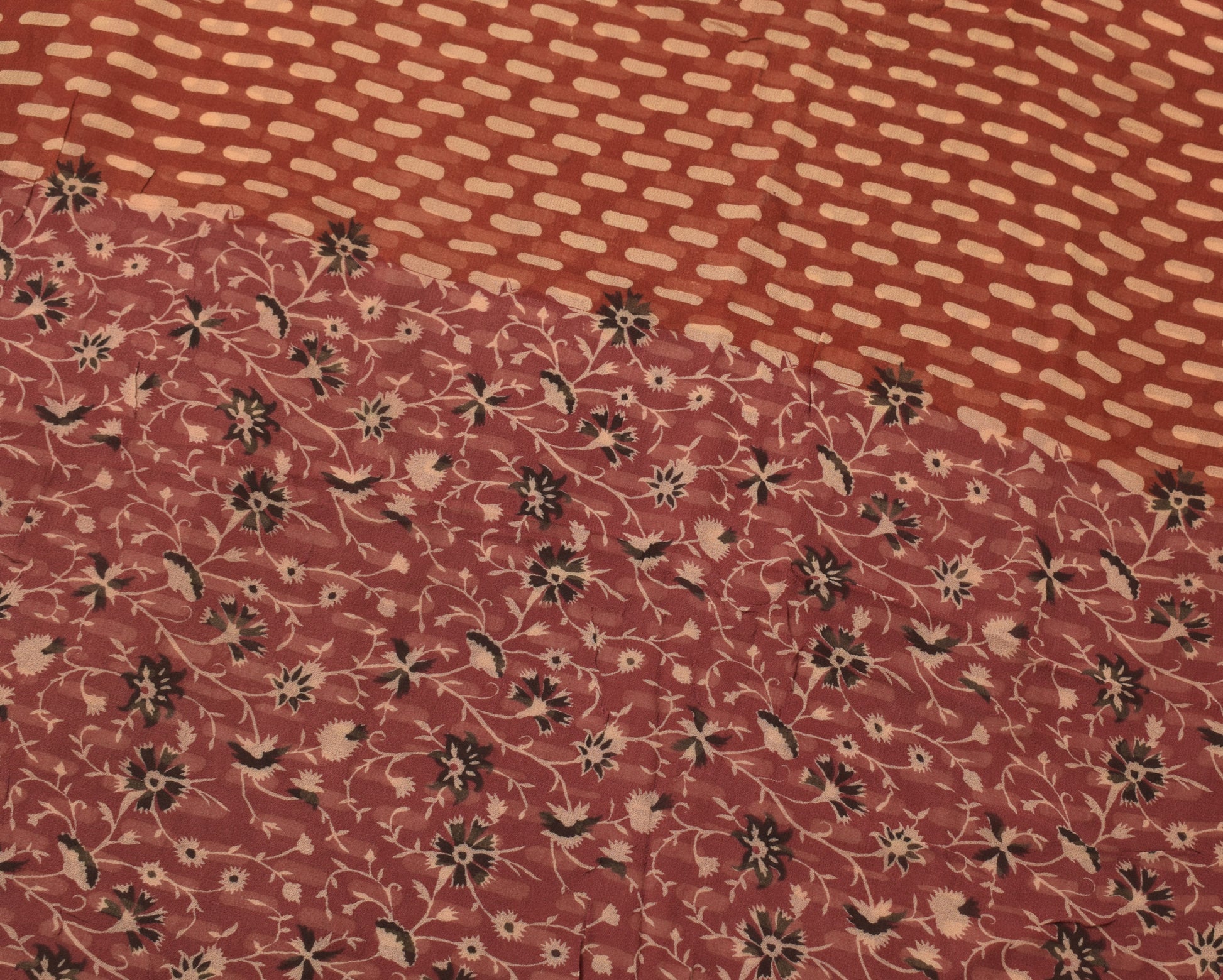 Sushila Vintage Maroon Sari 100% Pure Georgette Silk Printed Floral Craft Fabric