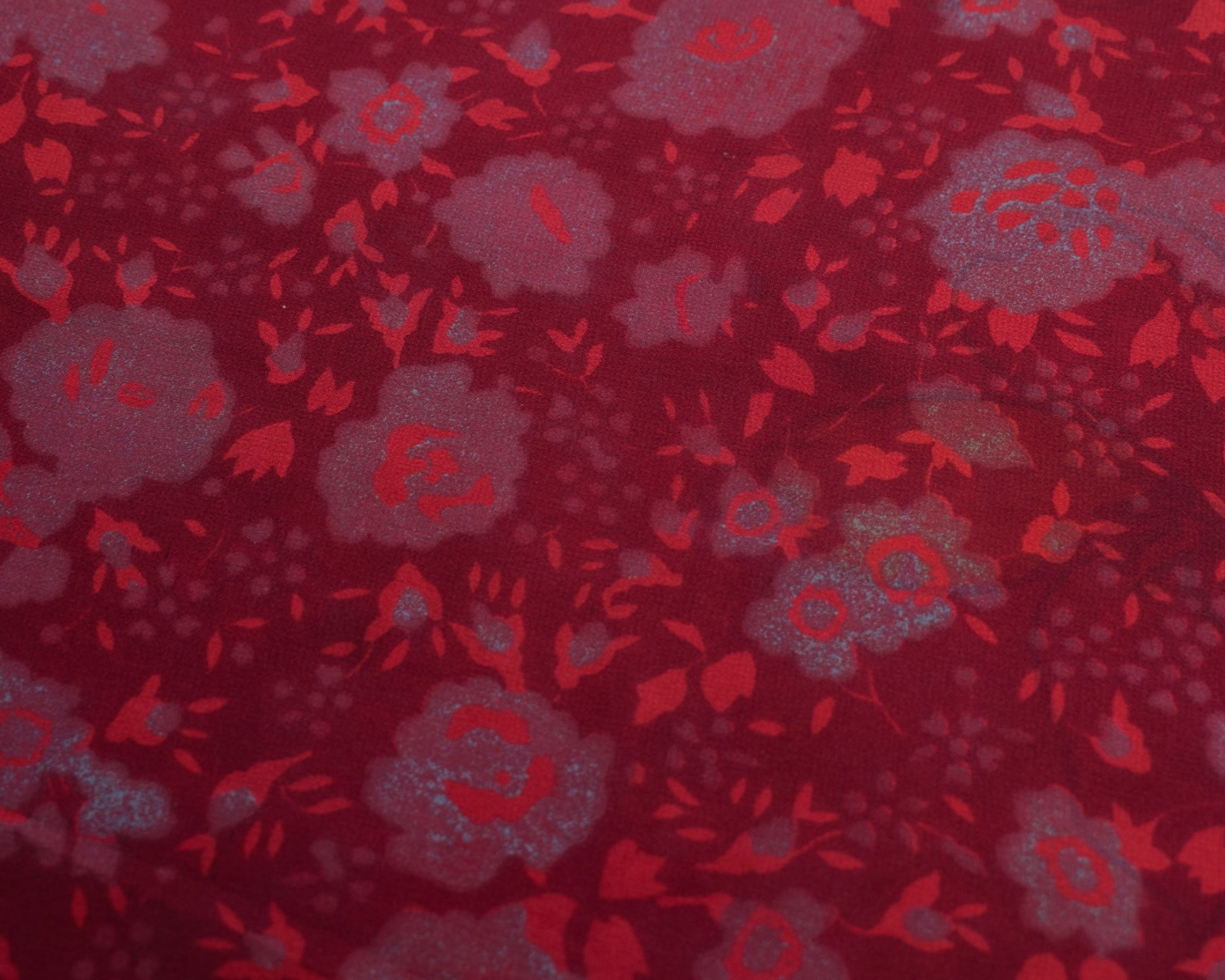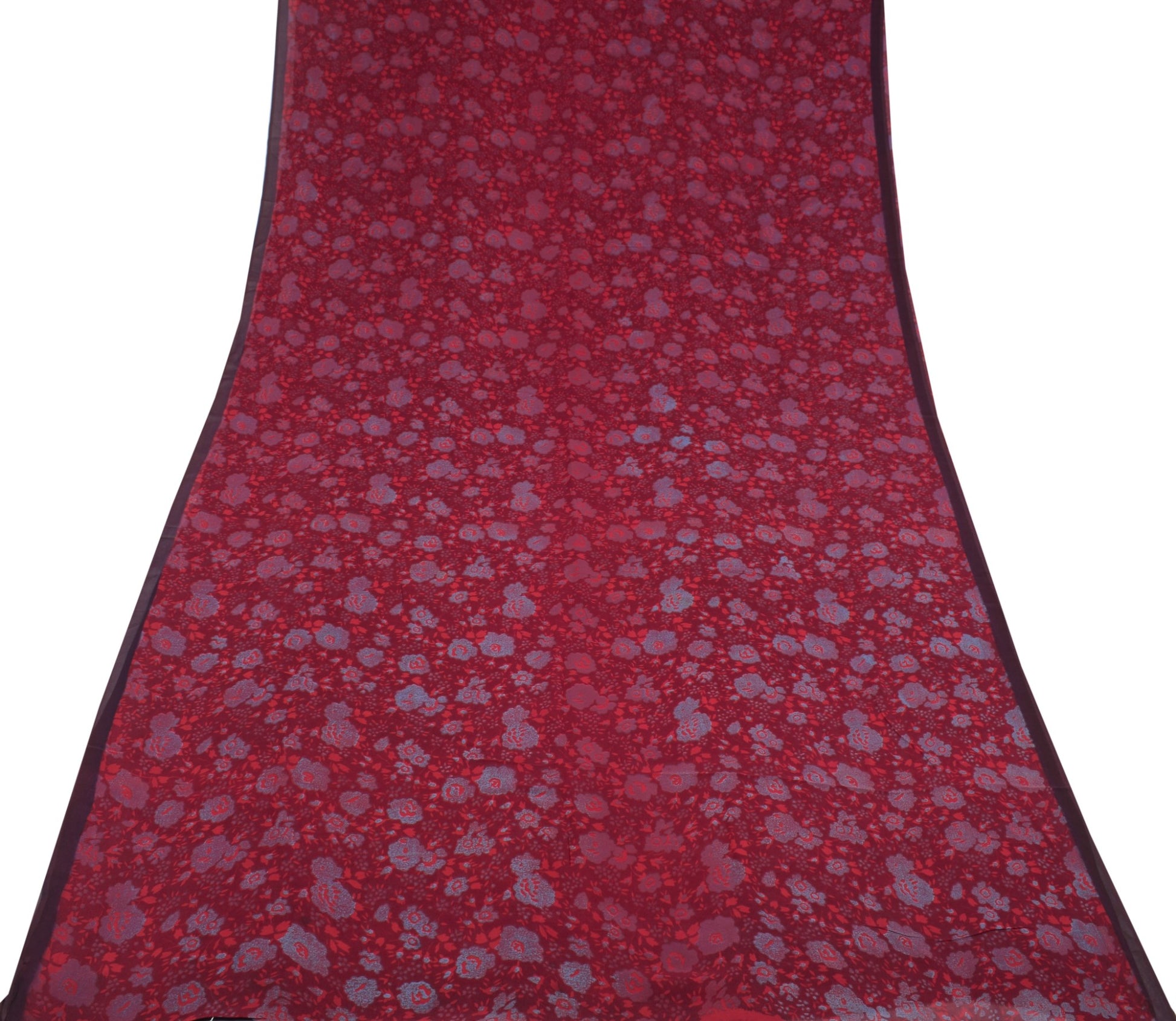 Sushila Vintage Maroon Sari 100% Pure Georgette Silk Printed Floral Craft Fabric