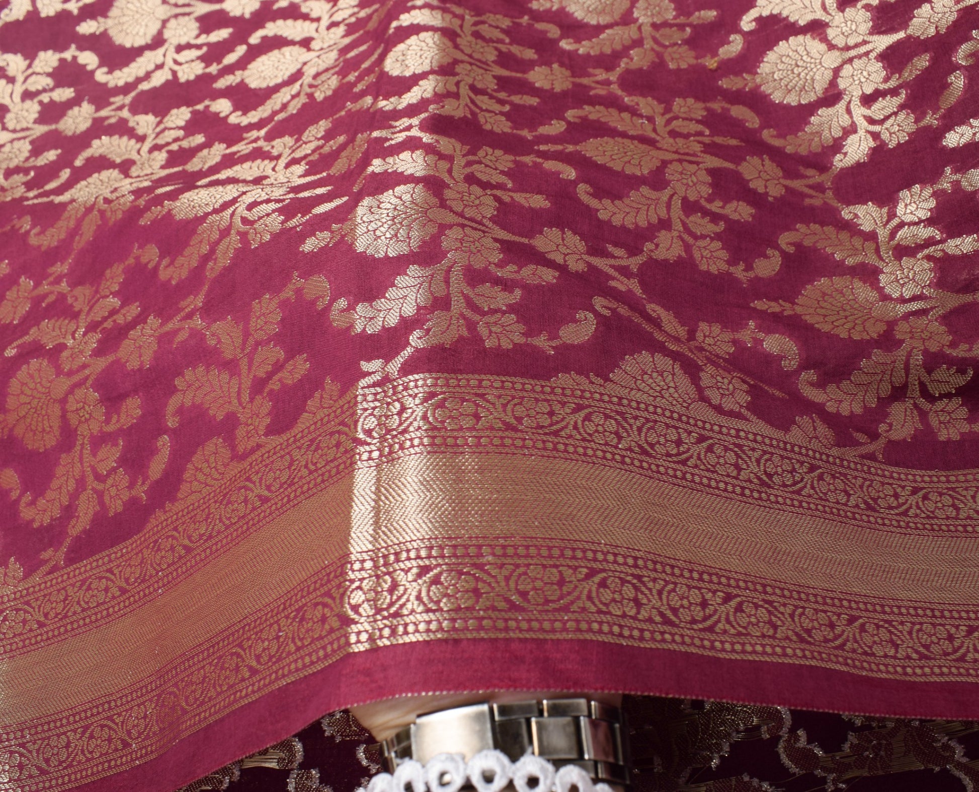 Enhance your ethnic collection with this stunning mauve dupatta made from 100% pure cotton silk. Featuring a beautiful floral woven zari brocade design, this piece is perfect for pairing with traditional outfits or adding a touch of elegance to modern wear.