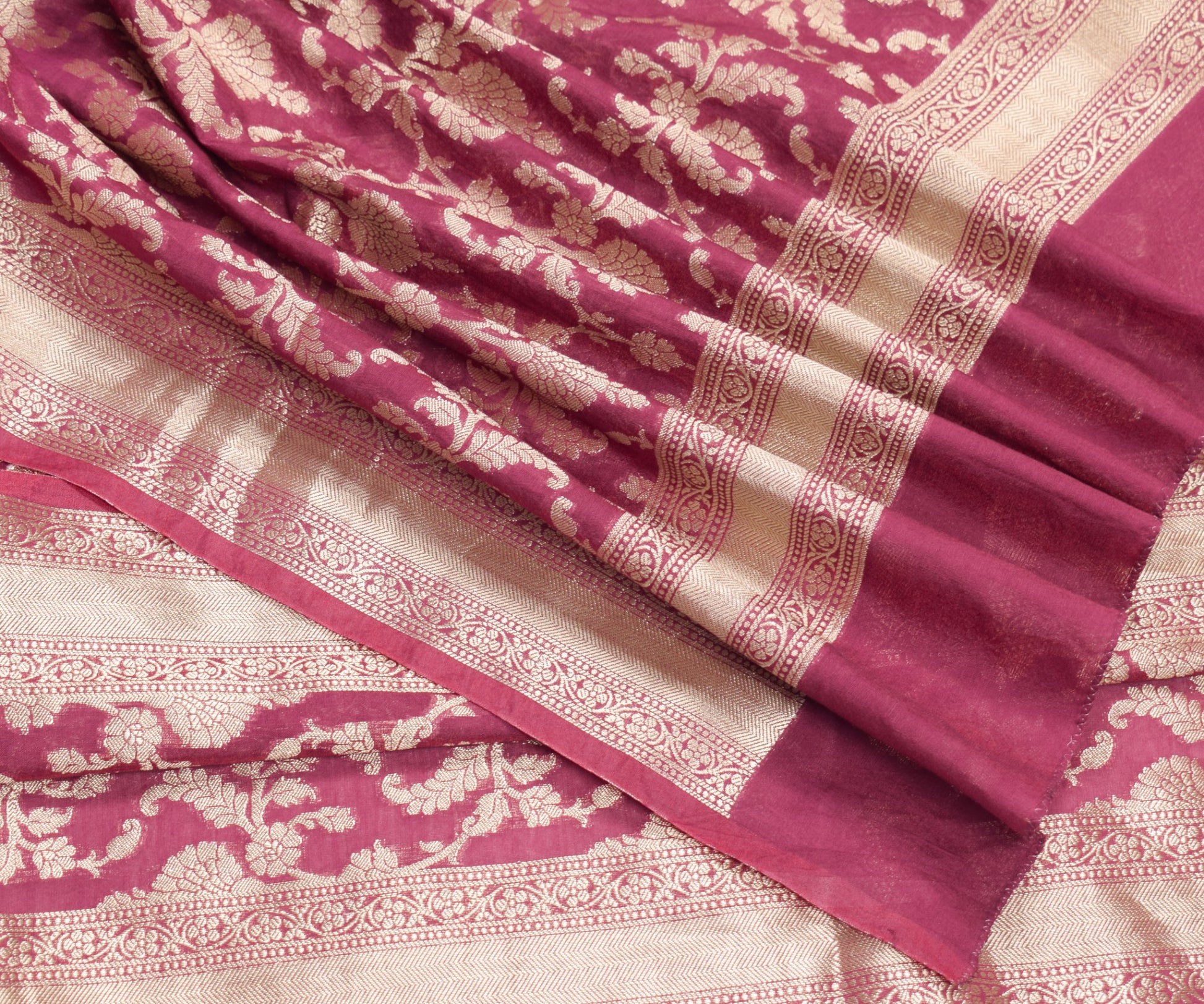 Sushila Vintage Mauve Banarasi Dupatta Pure Cotton Silk Zari Woven Long Stole
