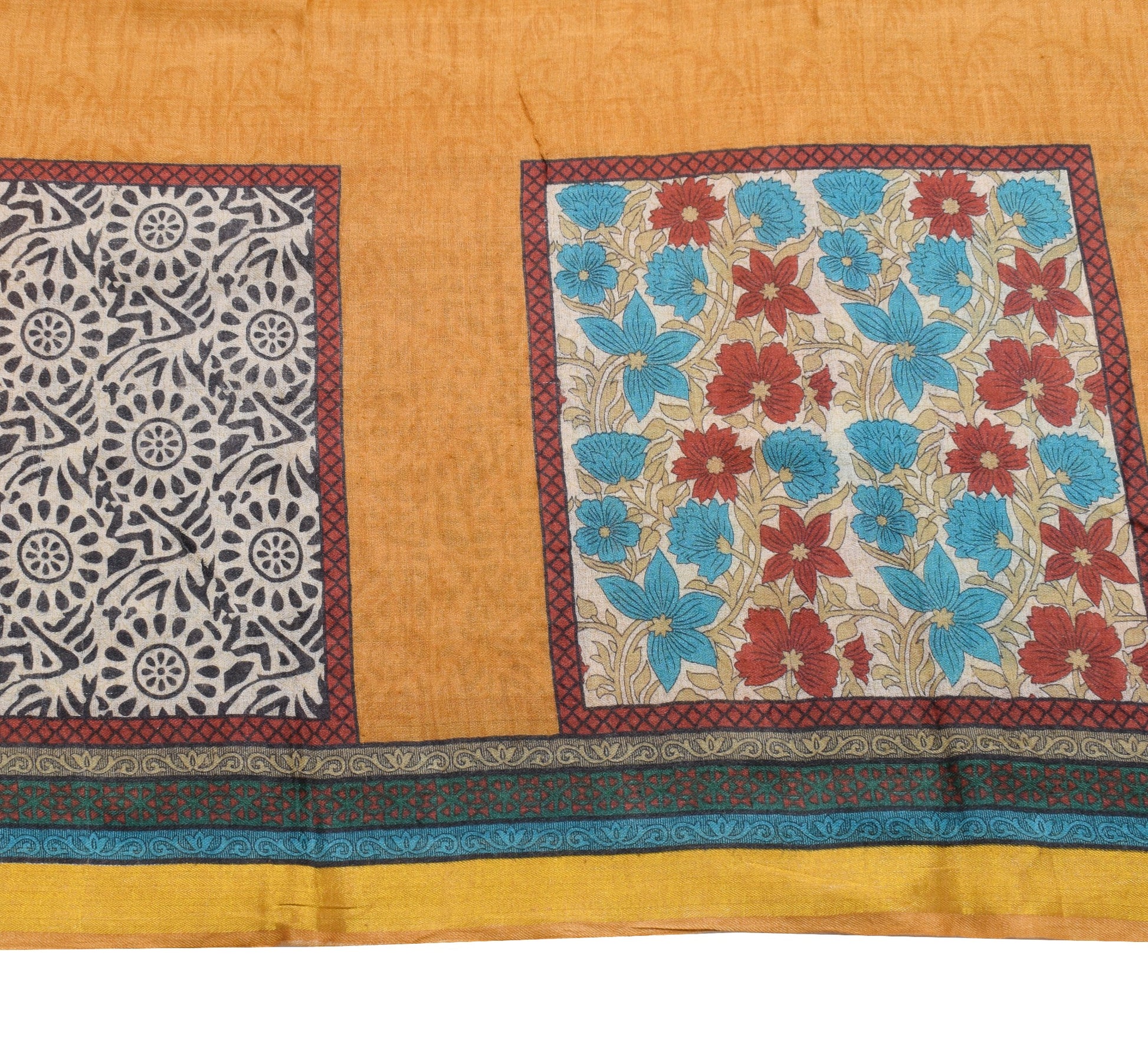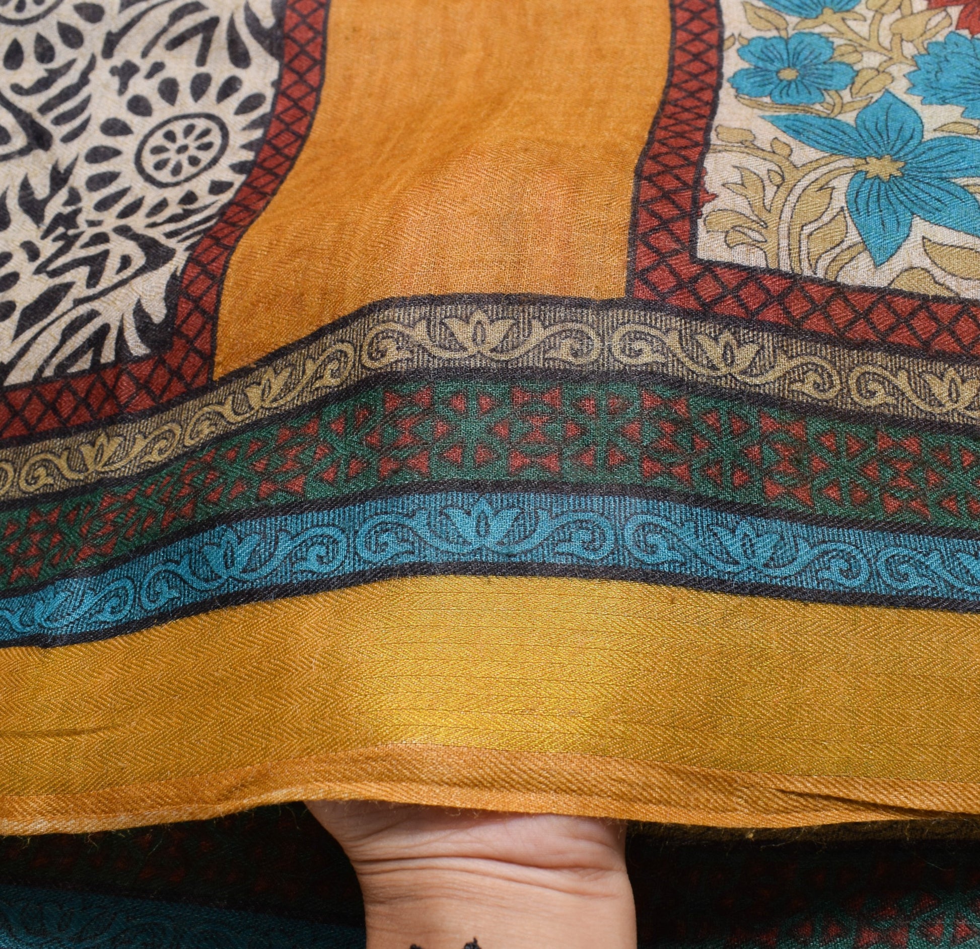 Sushila Vintage Mustard Floral Saree 100% Pure Woolen Soft Sari Craft Fabric