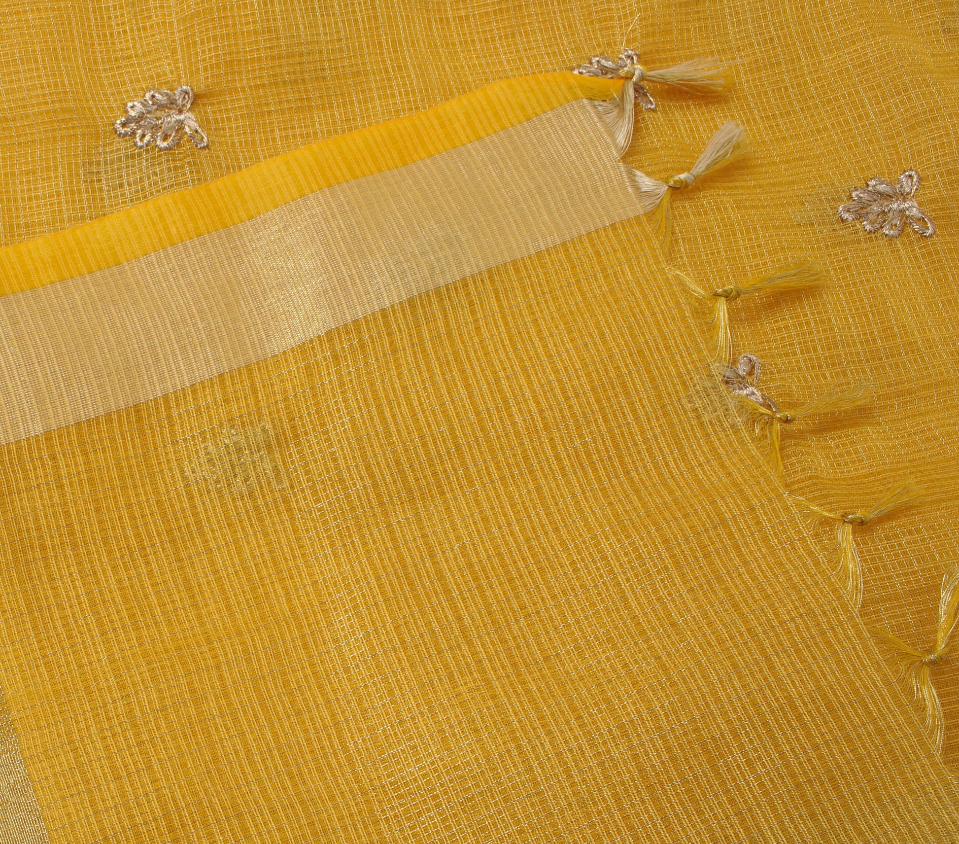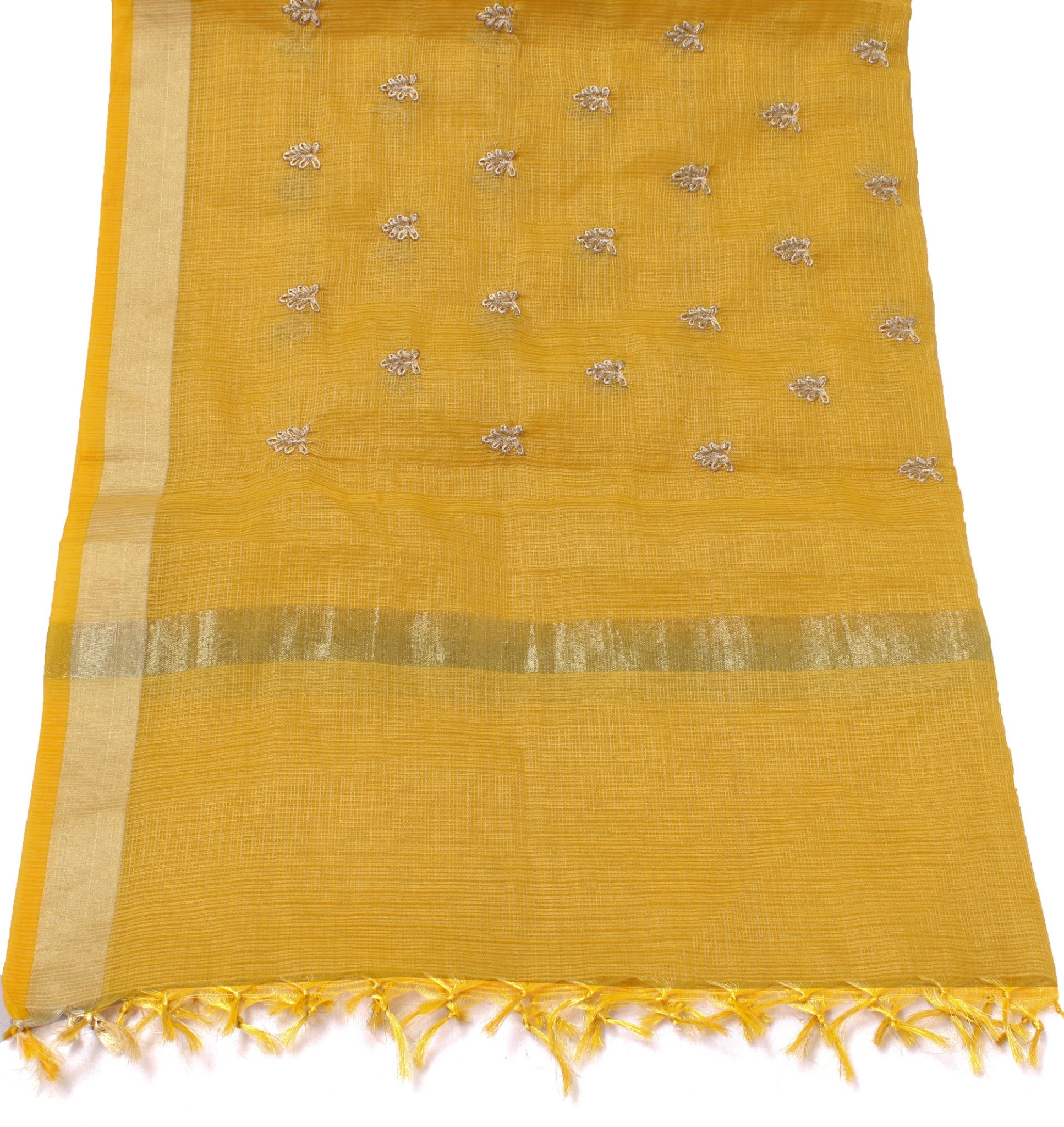Sushila Vintage Mustard Indian Dupatta Blend Silk Embroidered Long Stole Scarves
