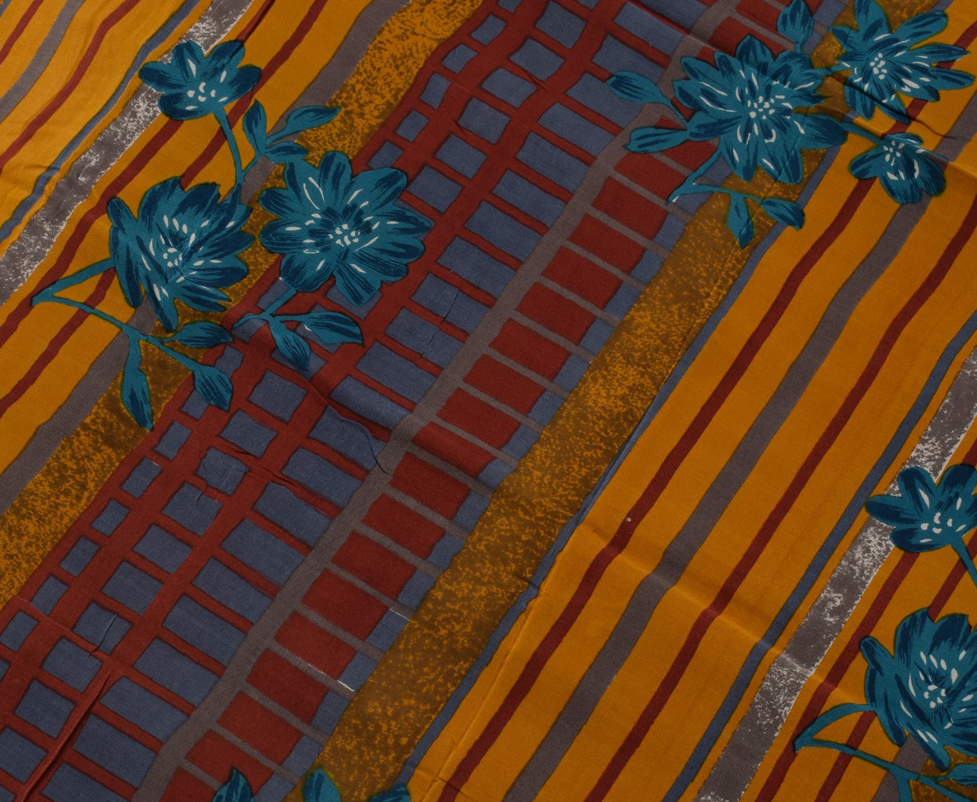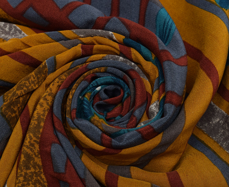 Sushila Vintage Mustard Saree 100% Pure Crepe Silk Printed Floral Soft Fabric