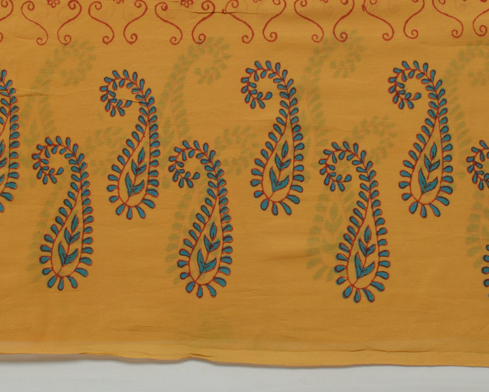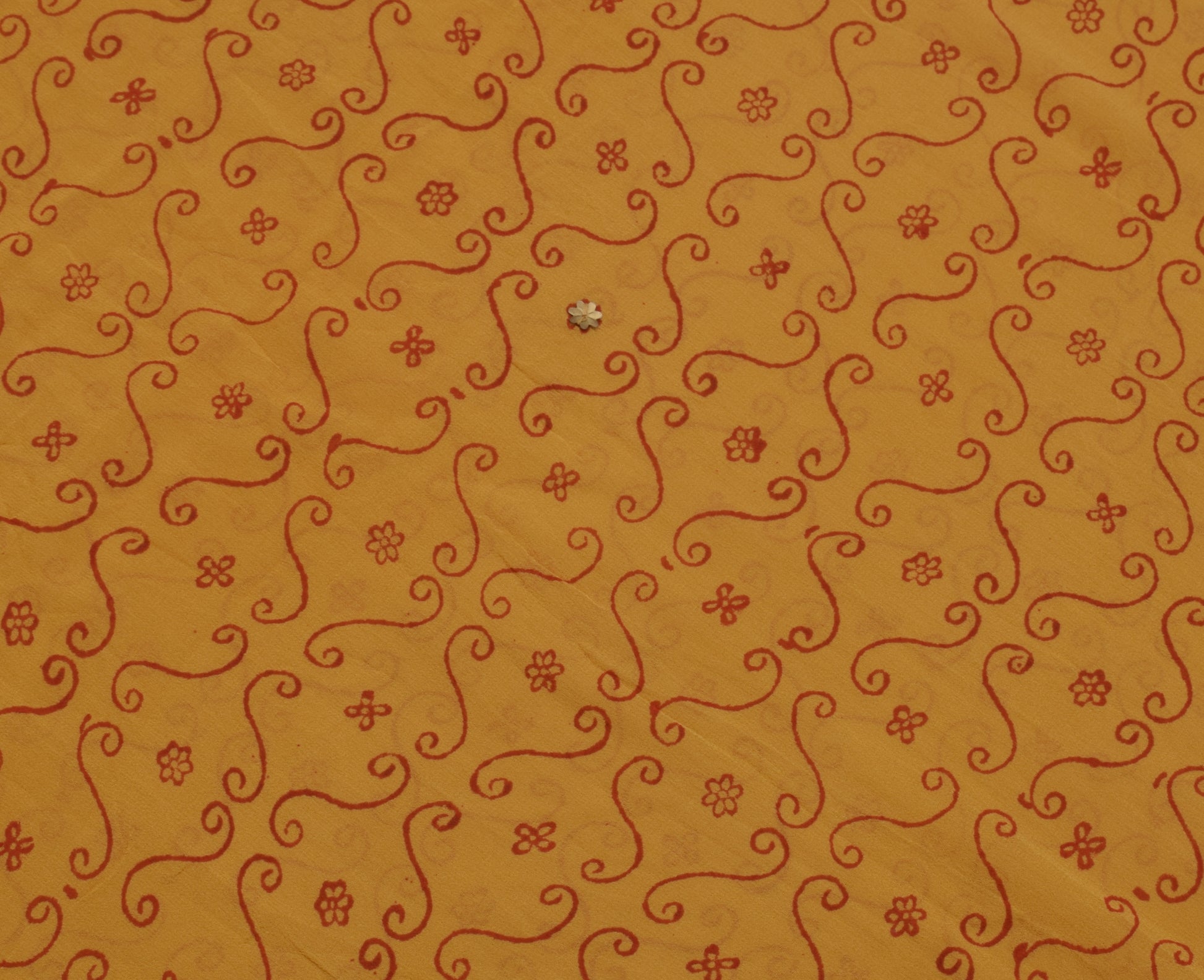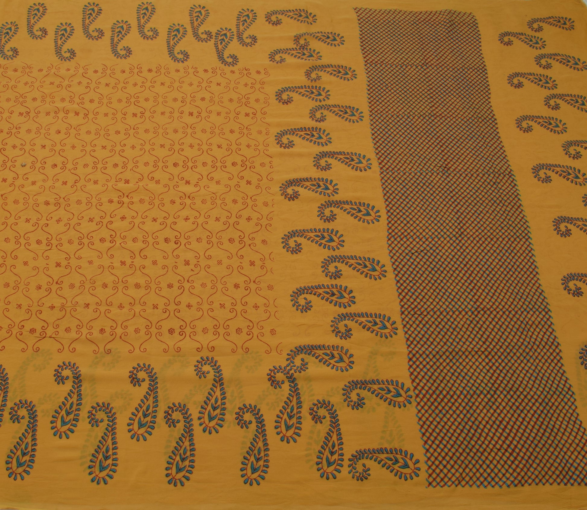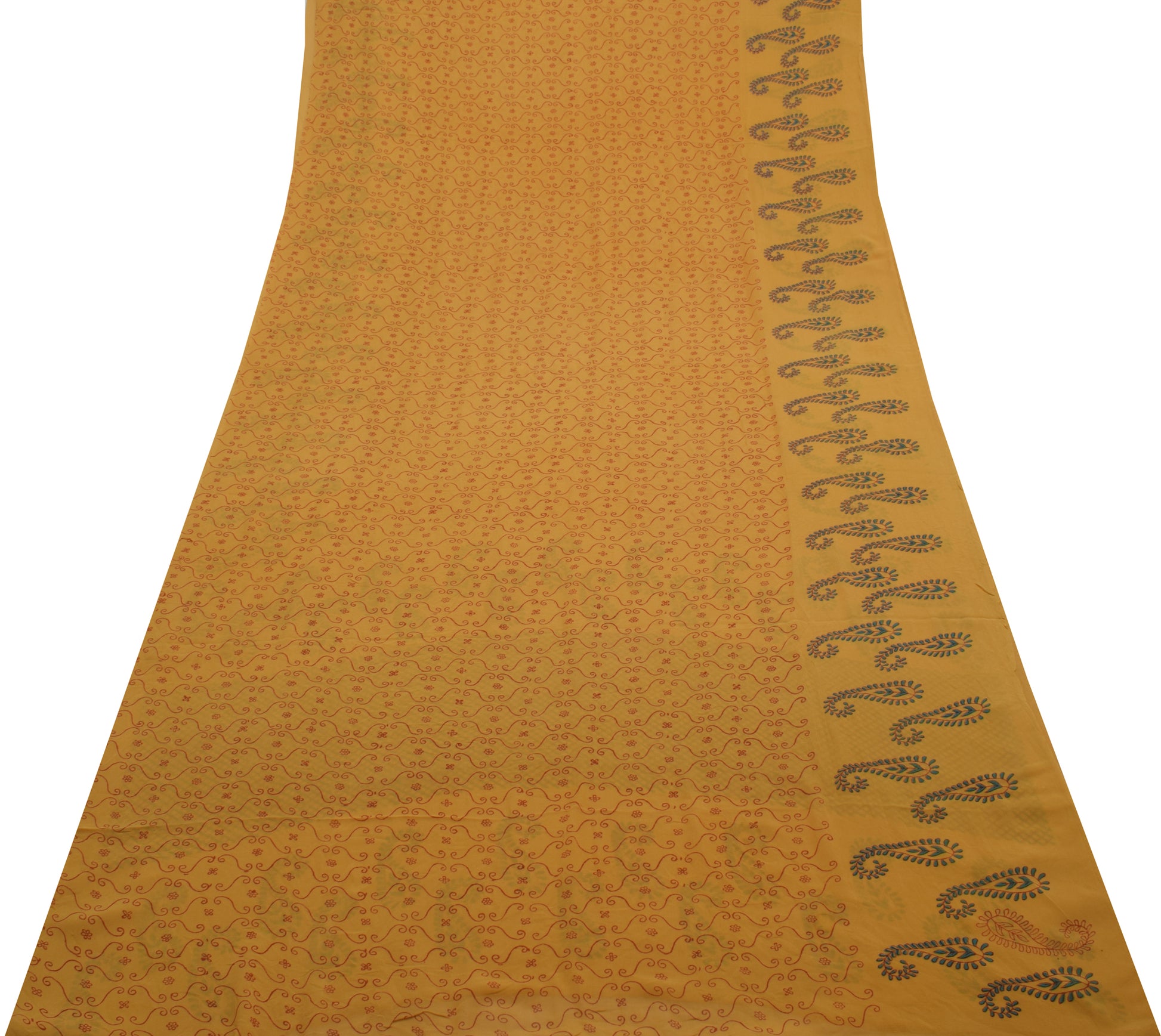Sushila Vintage Mustard Saree 100% Pure Georgette Silk Printed Craft 5 YD Fabric