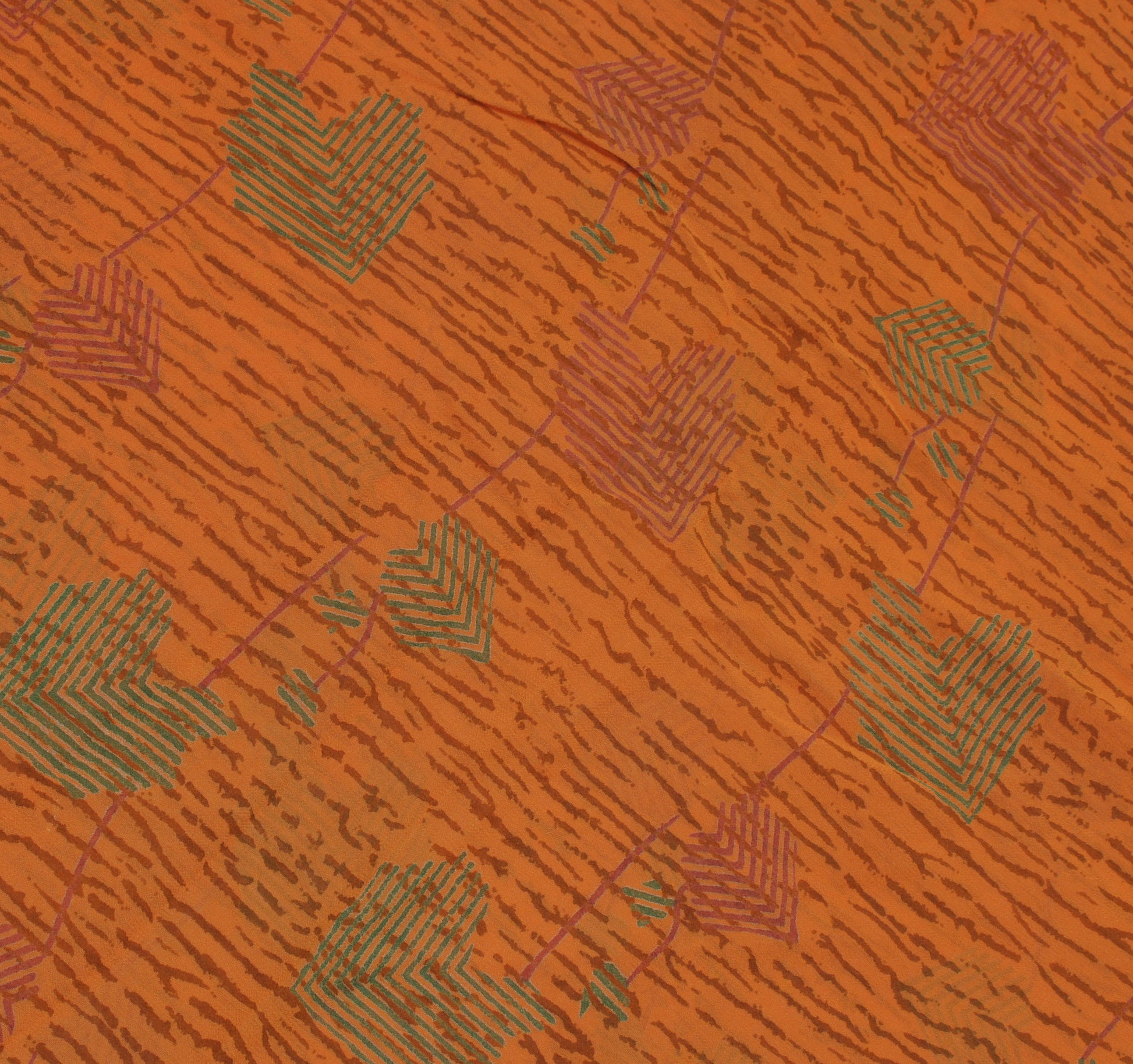 Sushila Vintage Mustard Saree 100% Pure Georgette Silk Printed Craft Fabric