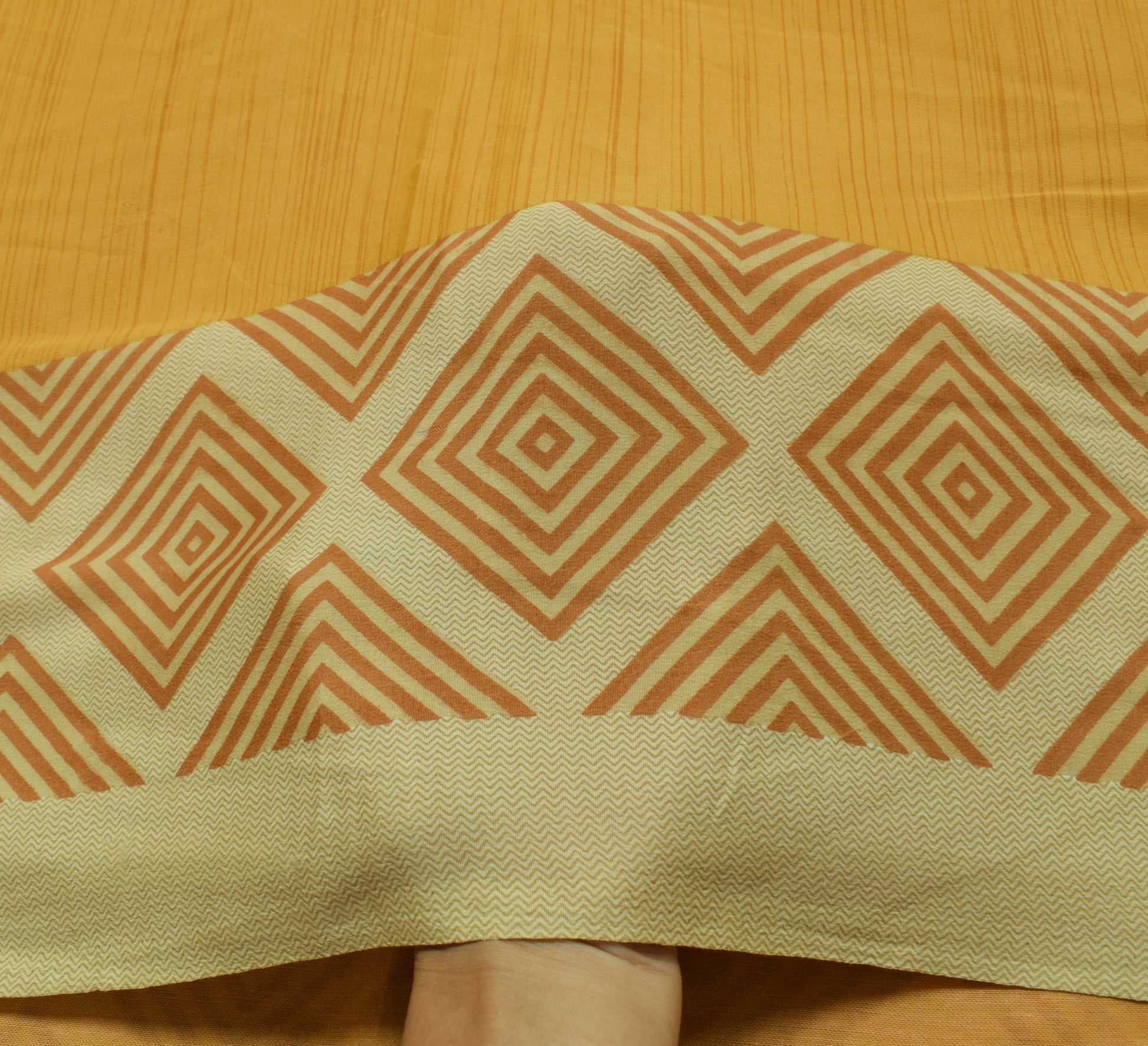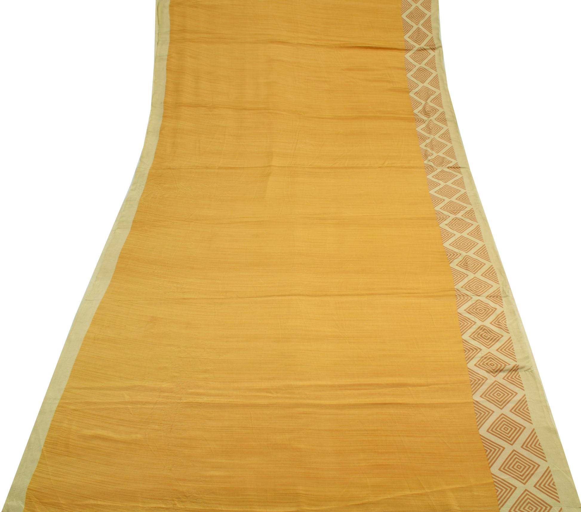 Sushila Vintage Mustard Saree Blend Crepe Silk Printed 5 Yard Soft Dress Fabric