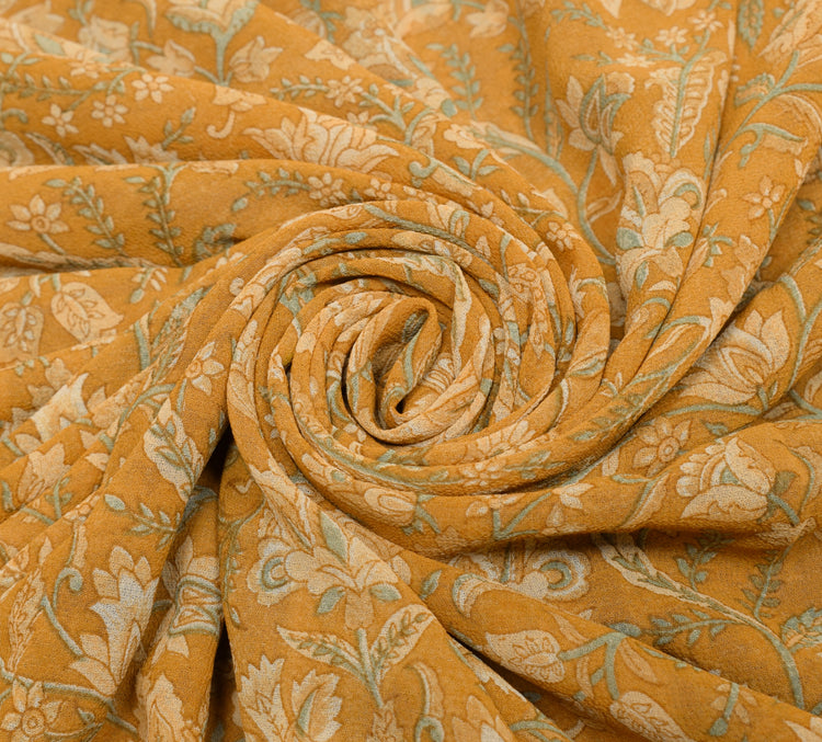Sushila Vintage Mustard Saree Blend Georgette Silk Printed Floral Craft Fabric
