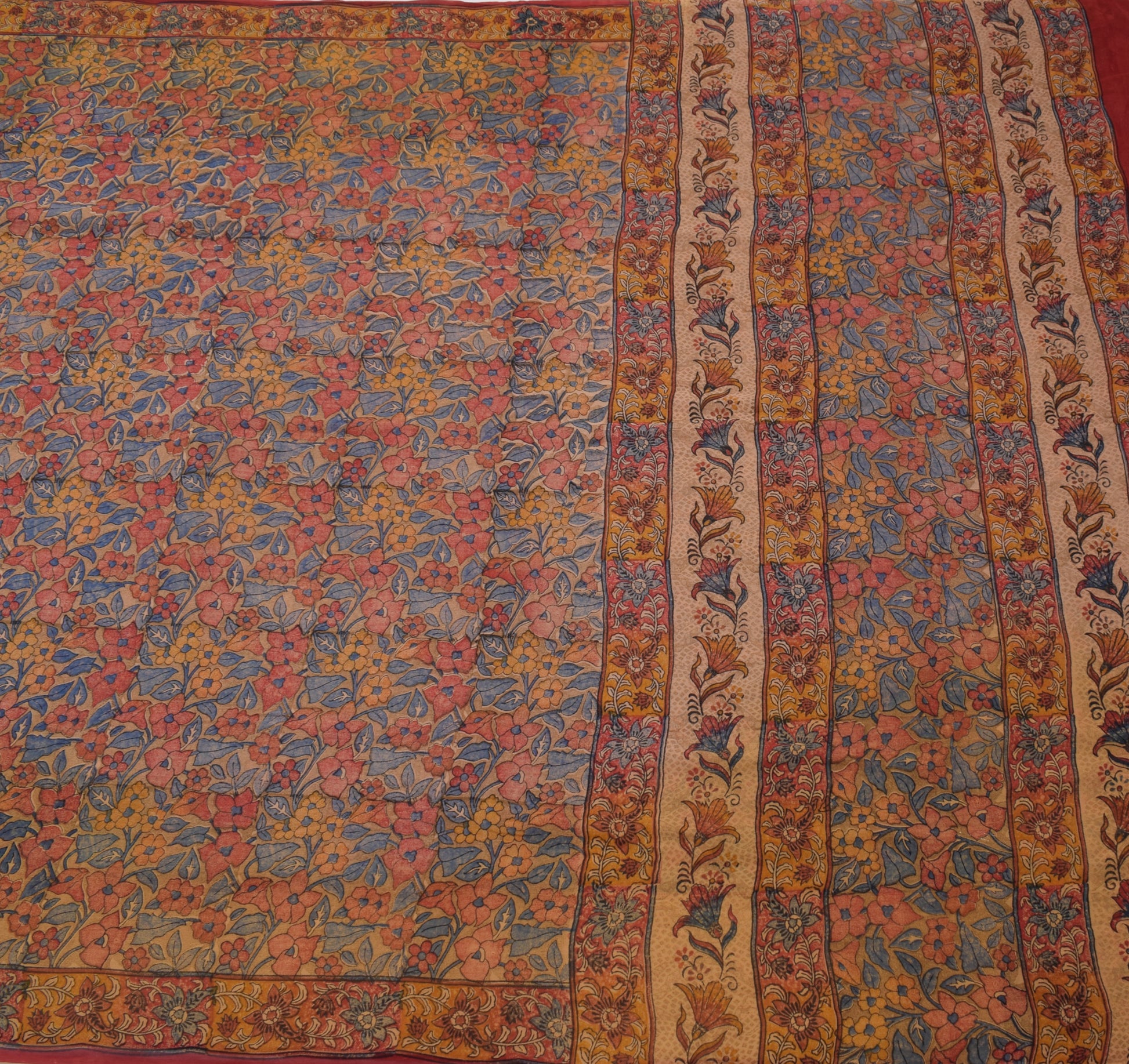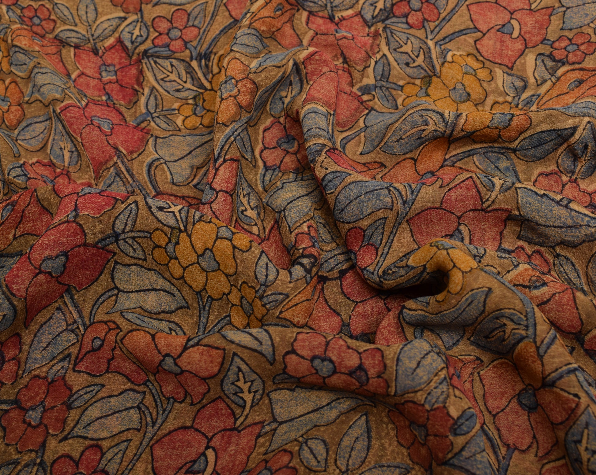Sushila Vintage Mustard Saree Pure Georgette Silk Printed Floral Craft Fabric