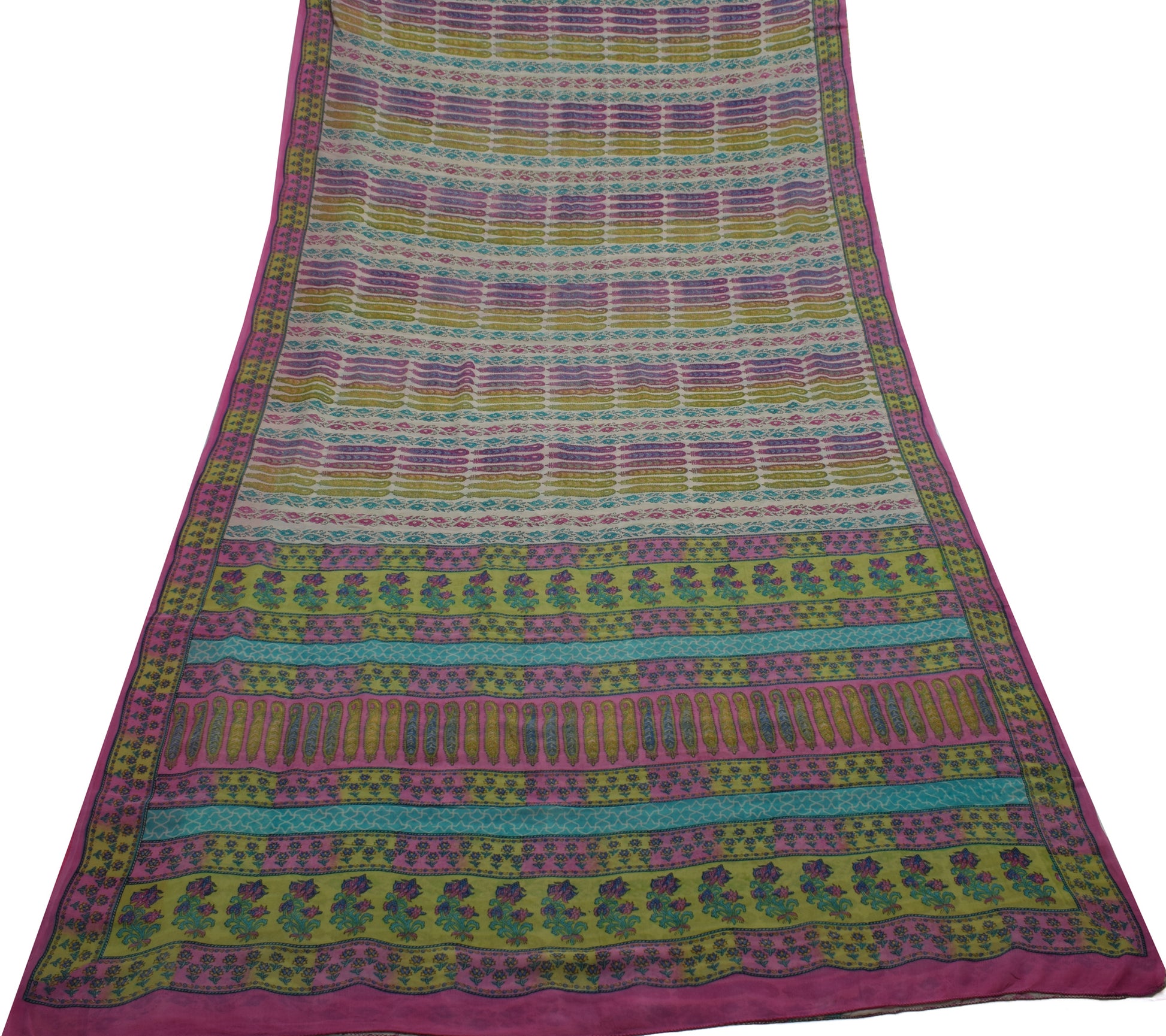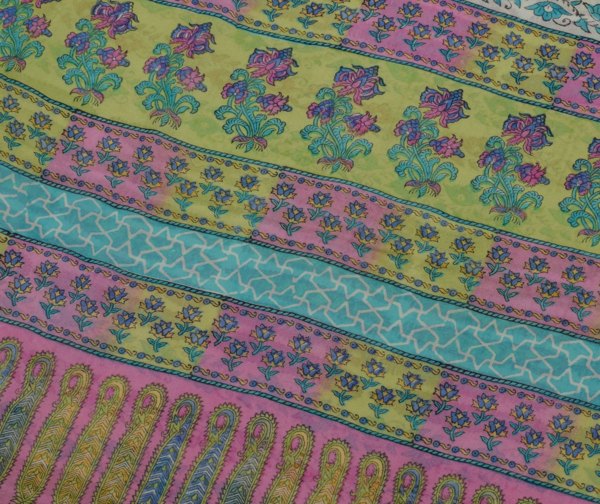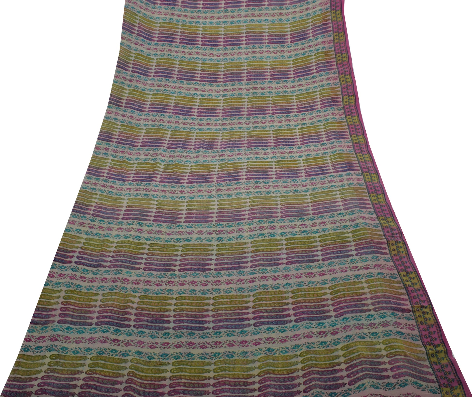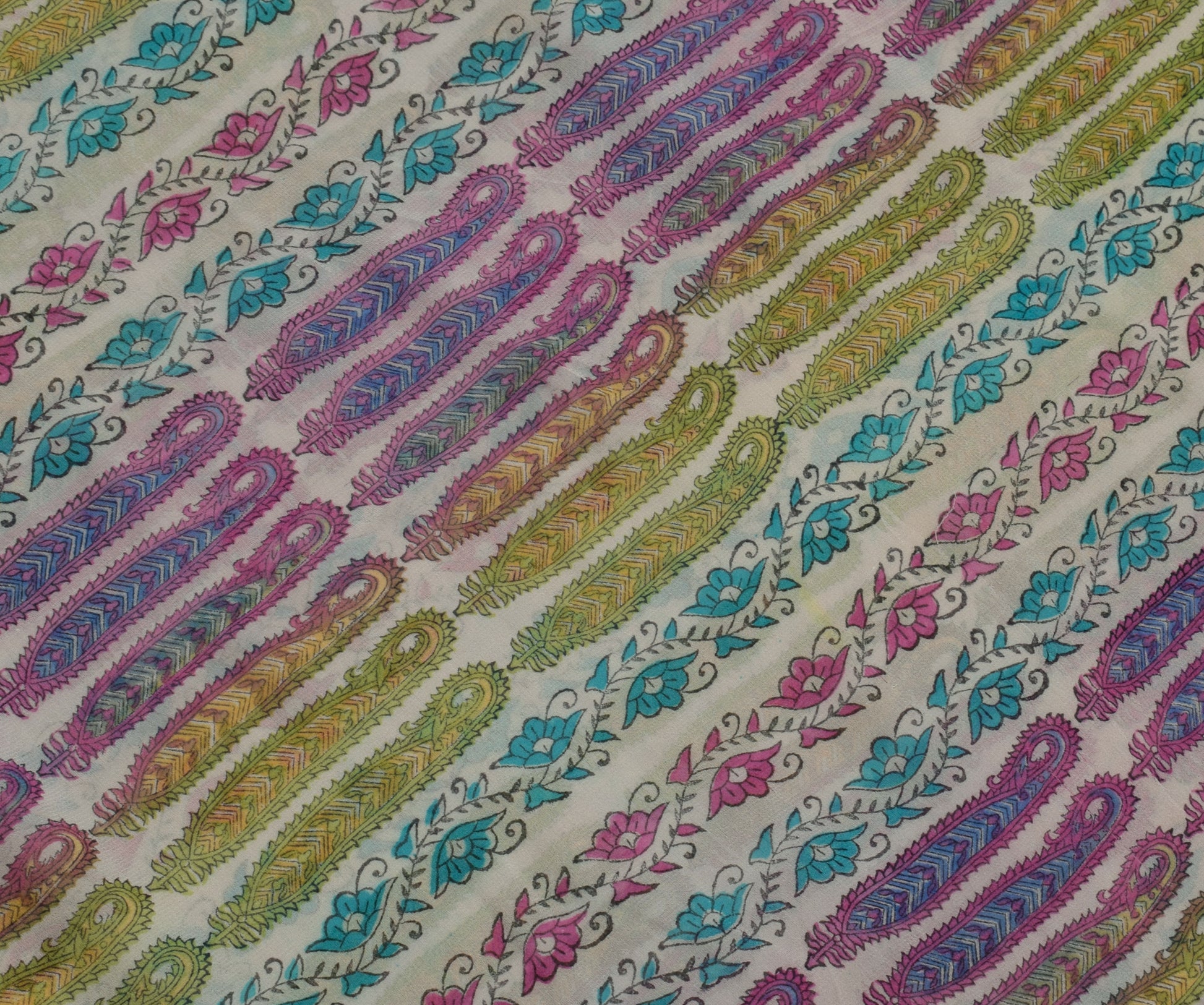 Sushila Vintage Off White Saree 100% Pure Georgette Silk Printed Paisley Fabric