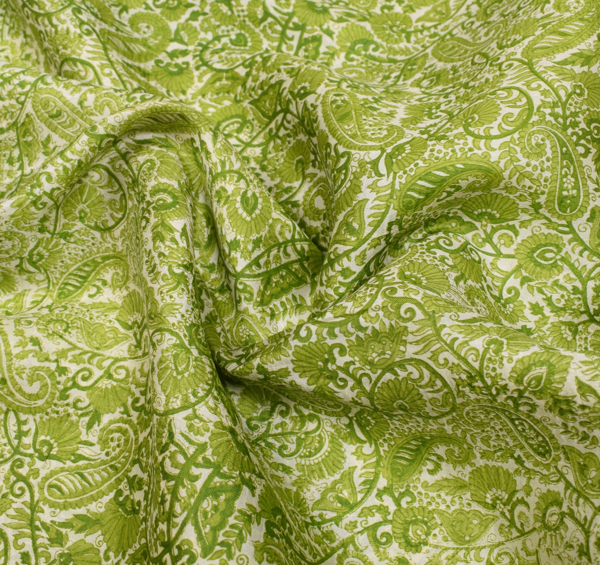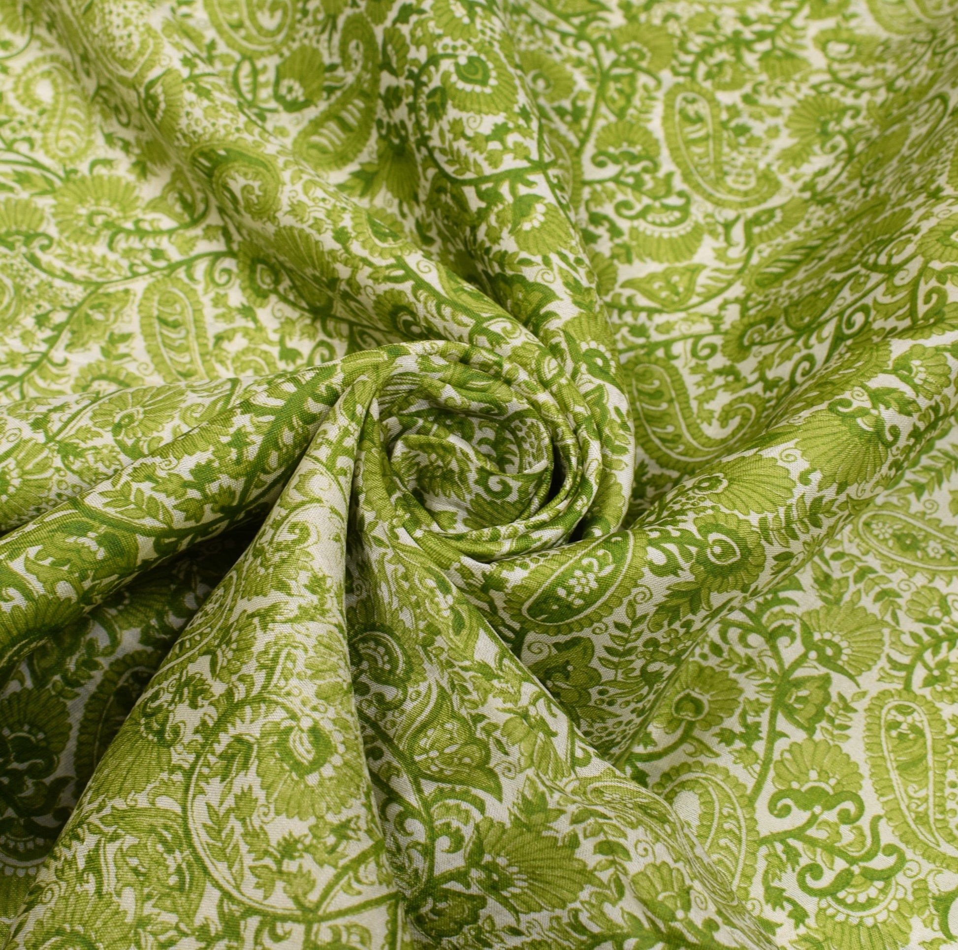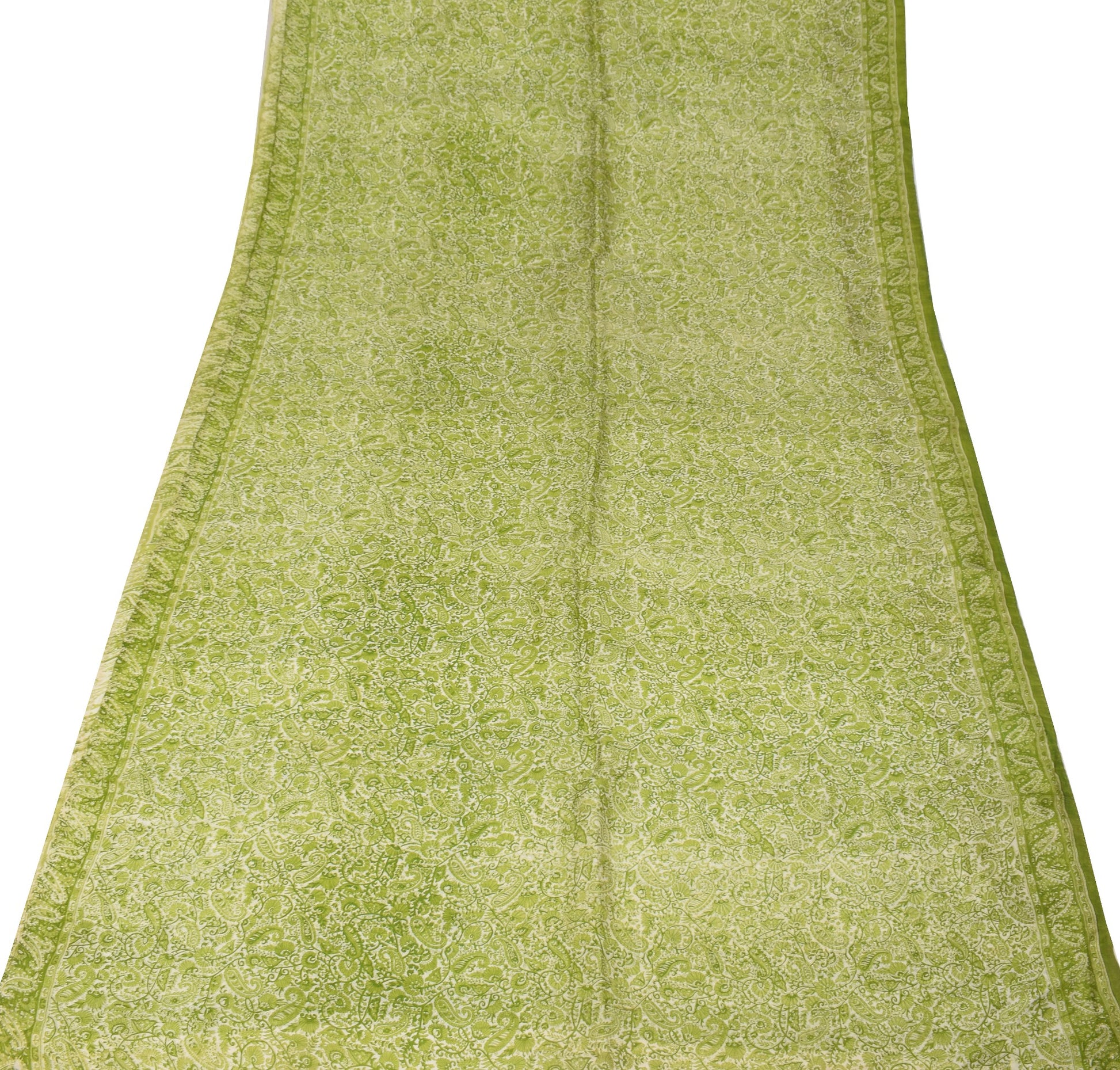 Sushila Vintage Off White Saree 100% Pure Silk Printed Paisley Soft Craft Fabric