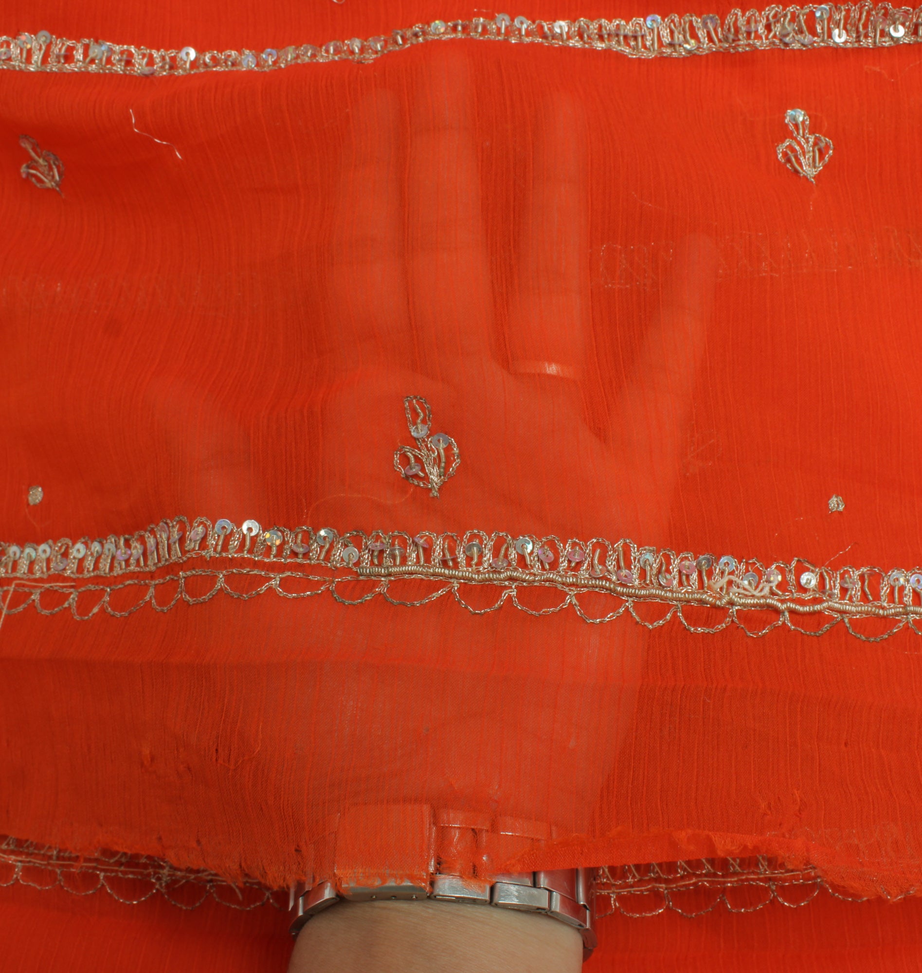 Sushila Vintage Orange Dupatta Blend Chiffon Silk Hand Beaded Zardozi Long Stole