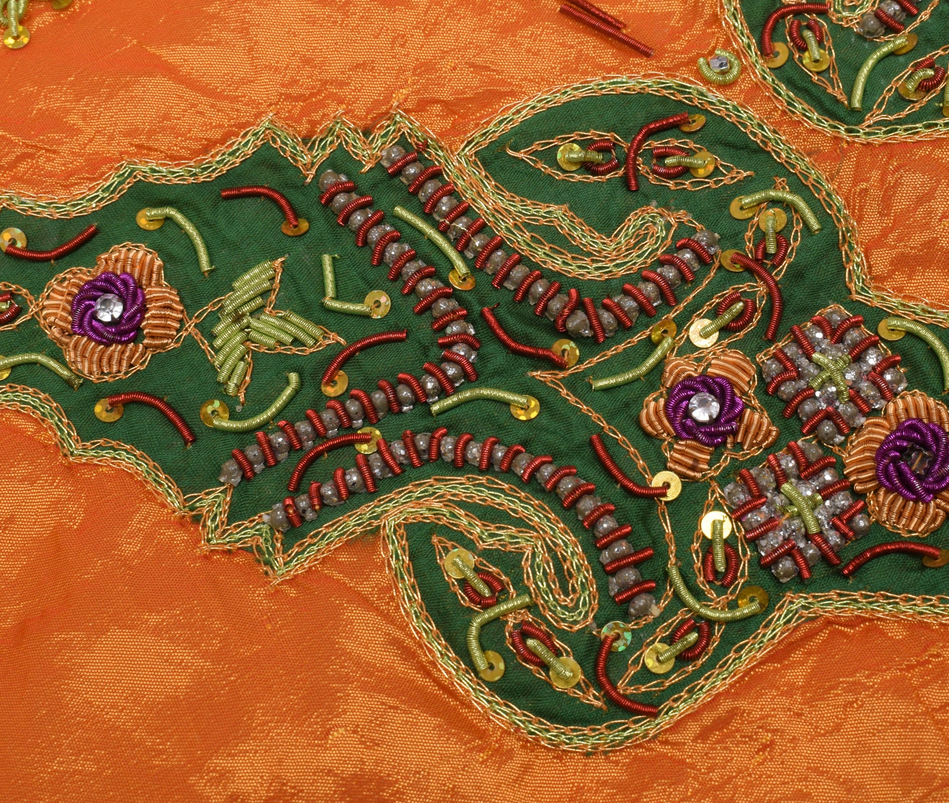 Sushila Vintage Orange Dupatta Blend Silk Hand Beaded Floral Long Stole Veil