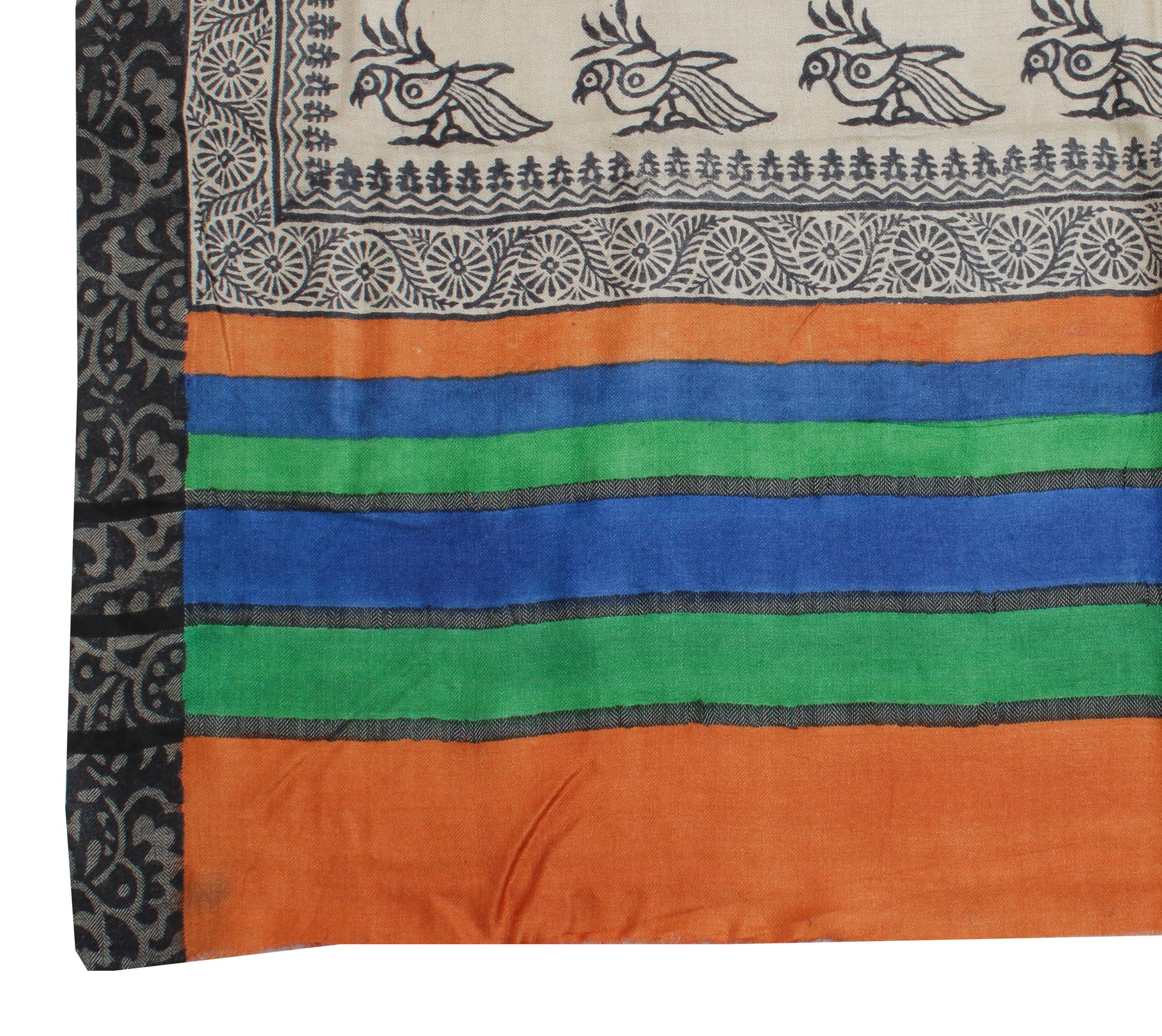 Sushila Vintage Orange Dupatta Indian 100% Pure Woolen Printed Long Stole Veil