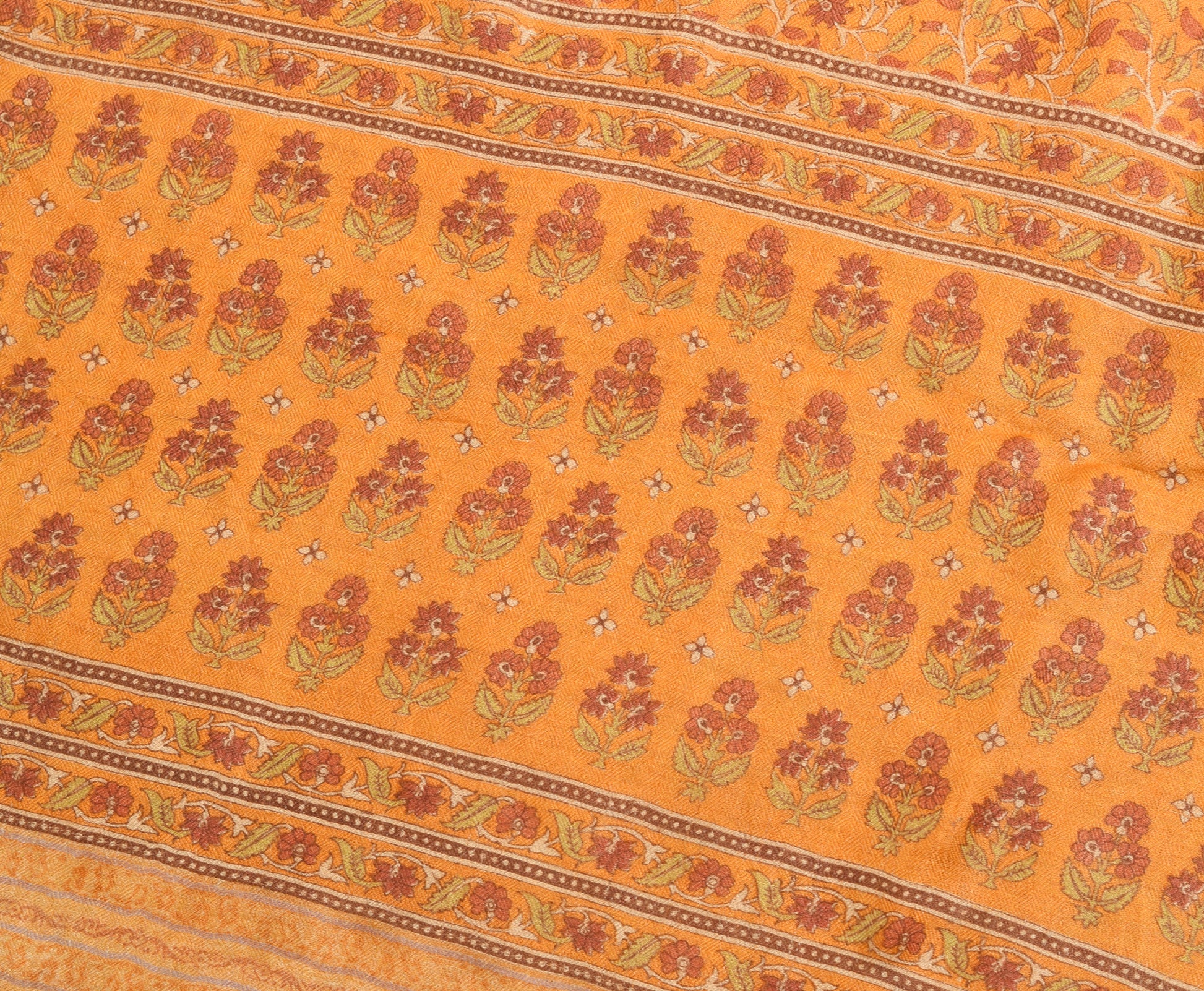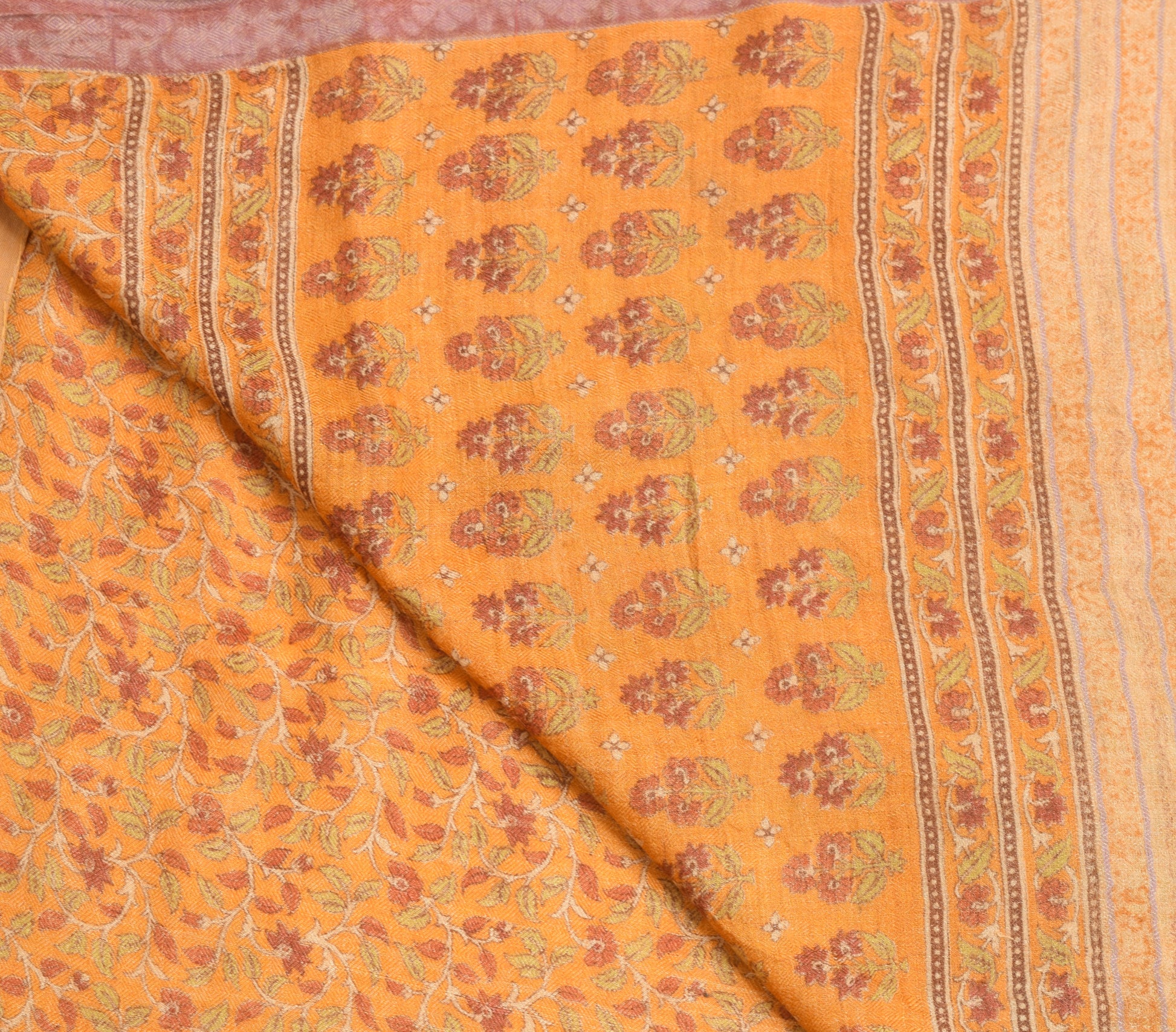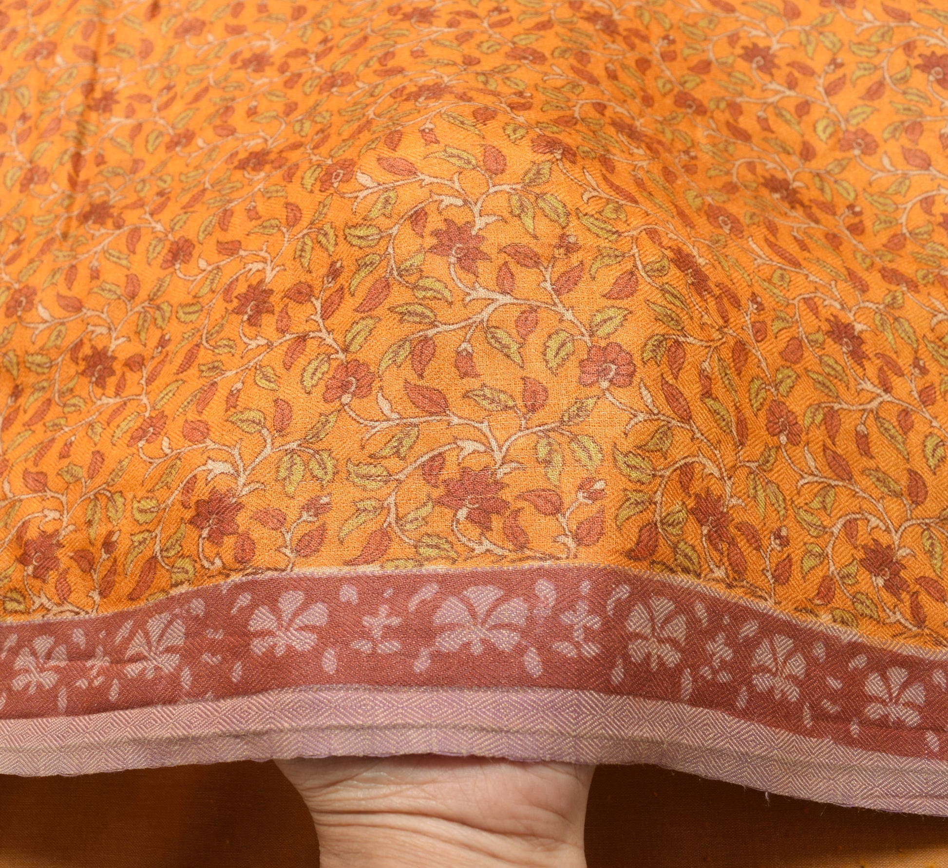 Sushila Vintage Orange Floral Saree 100% Pure Woolen Soft Sari Craft Fabric
