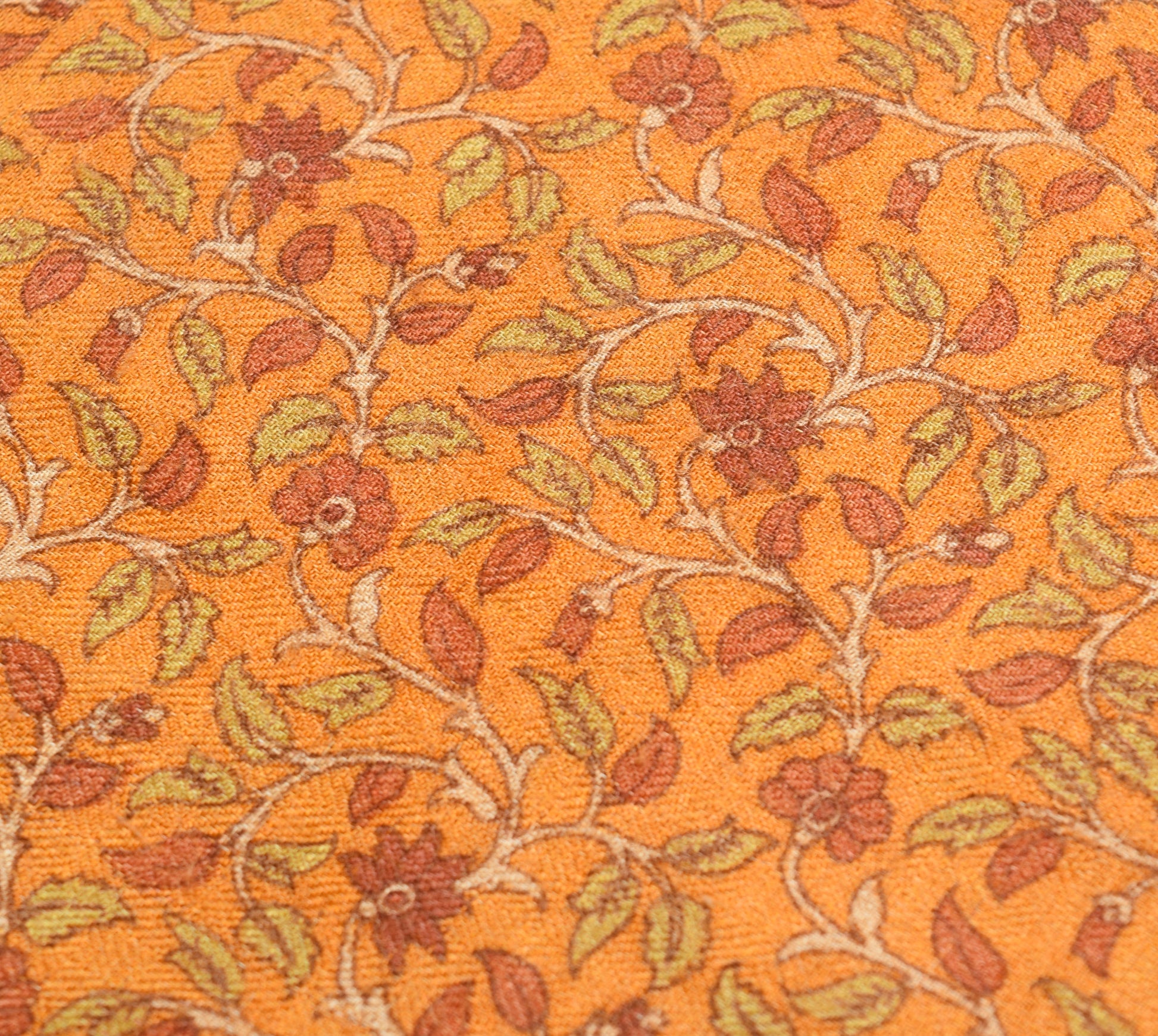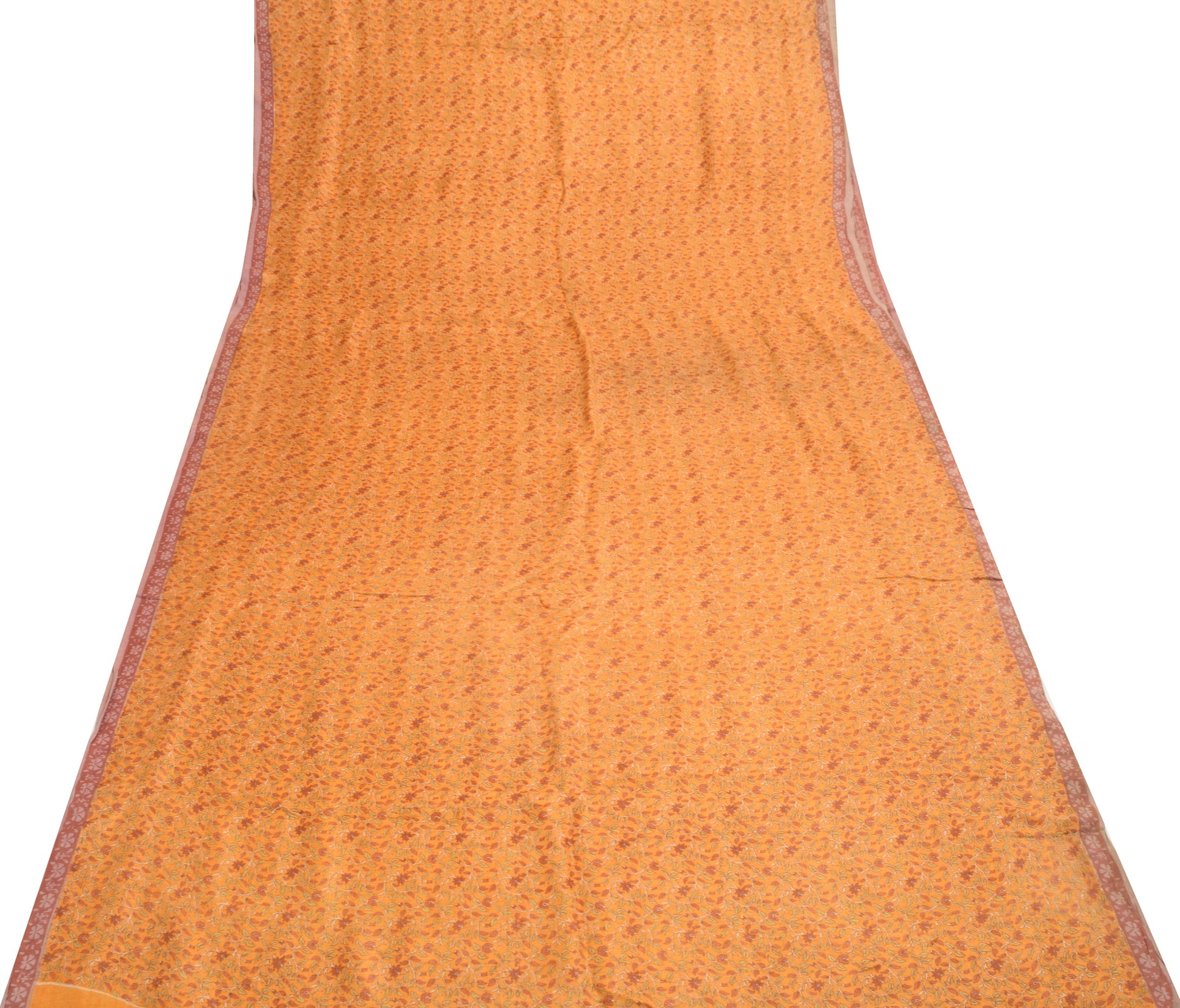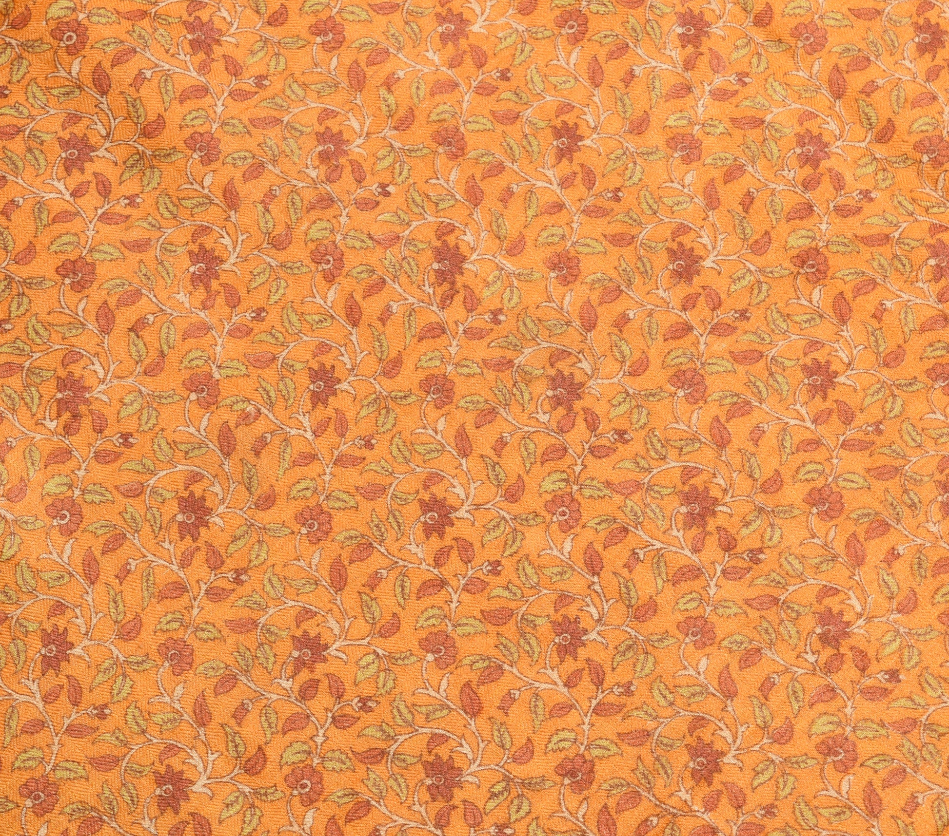 Sushila Vintage Orange Floral Saree 100% Pure Woolen Soft Sari Craft Fabric