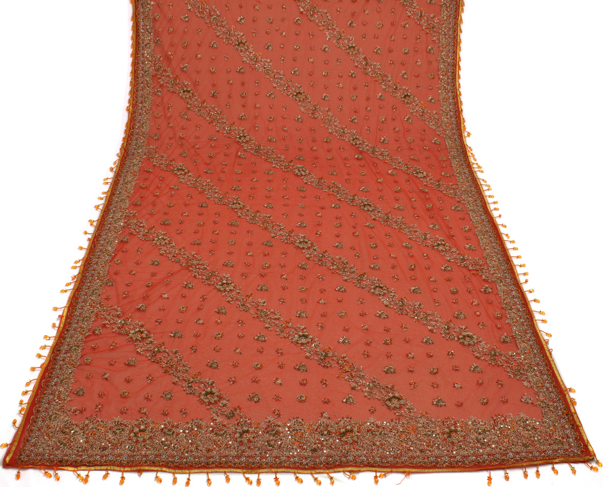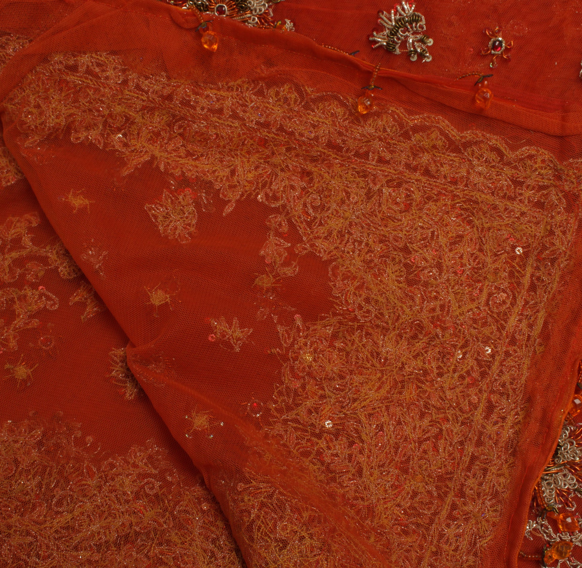 Sushila Vintage Orange Heavy Dupatta Net Mesh Hand Beaded Zardozi Long Stole
