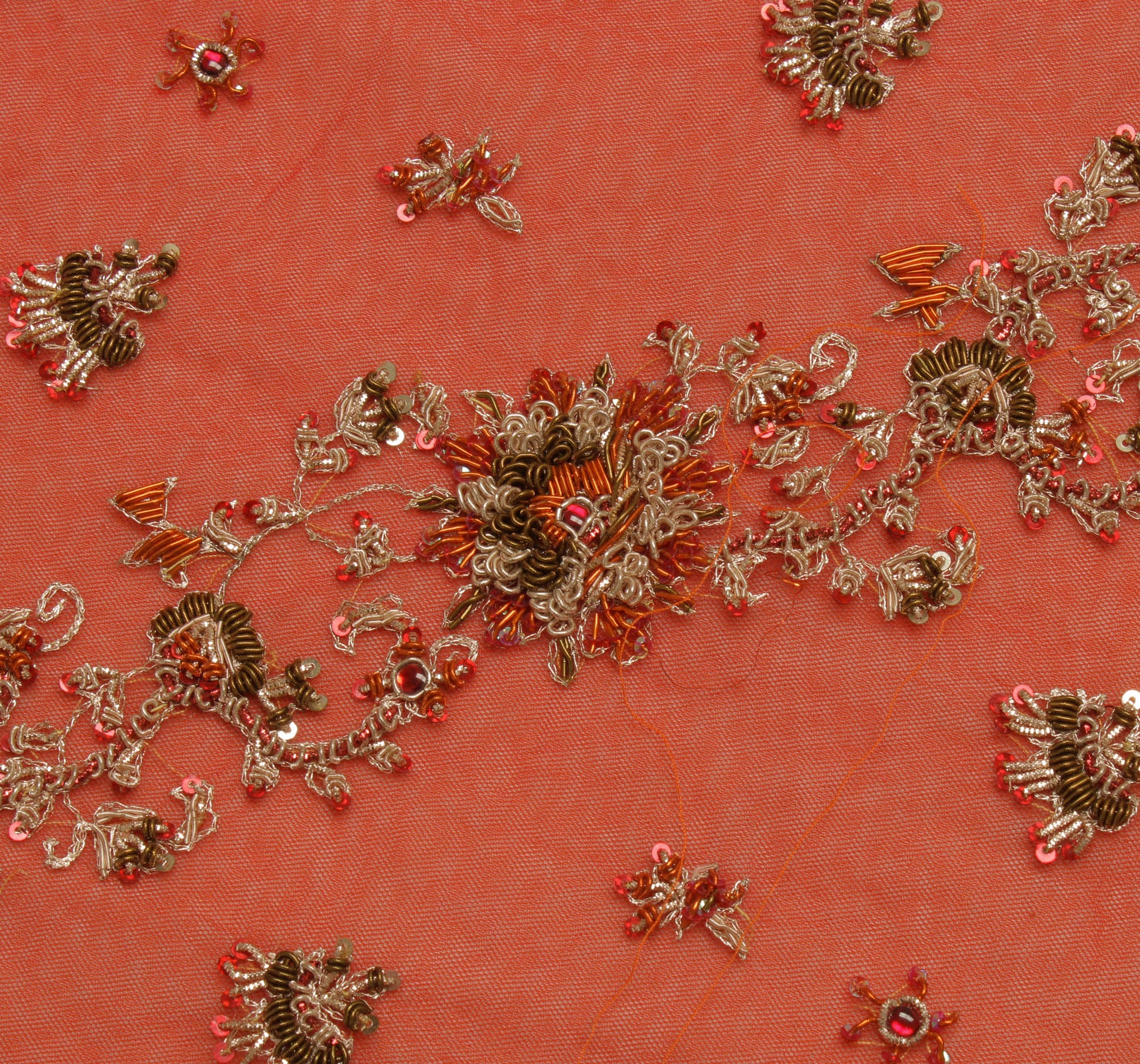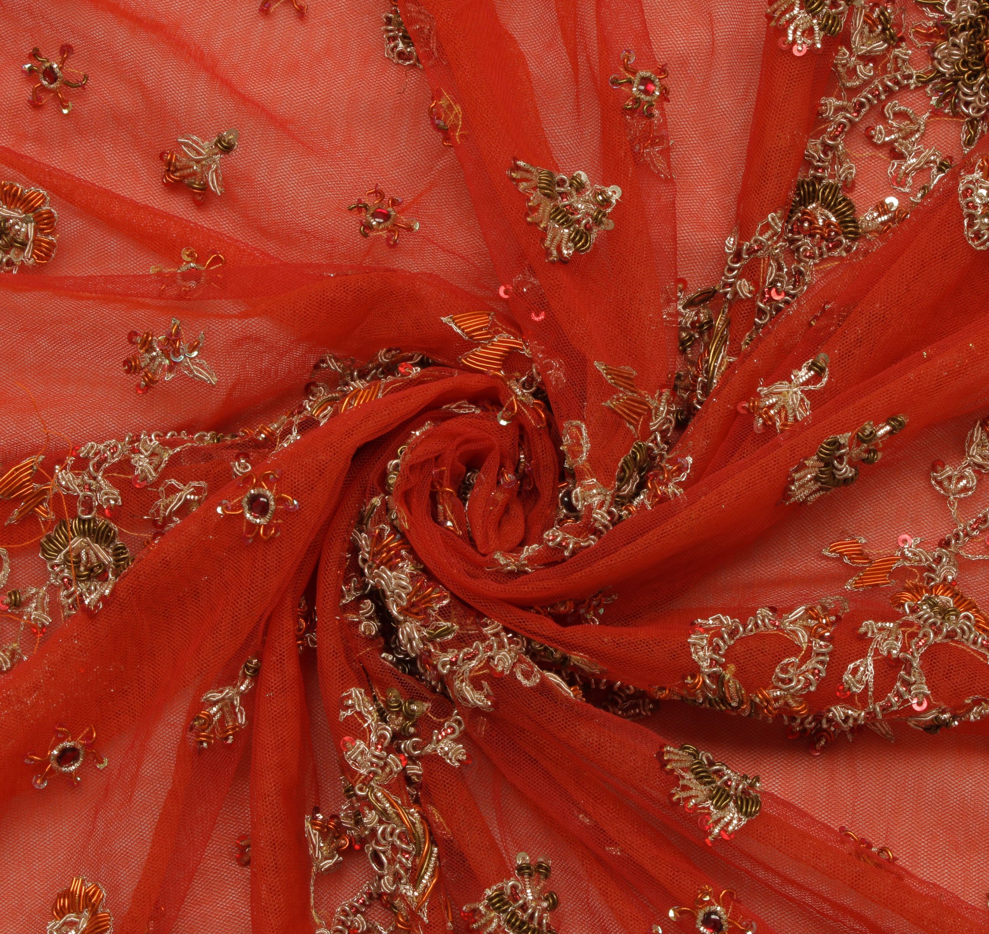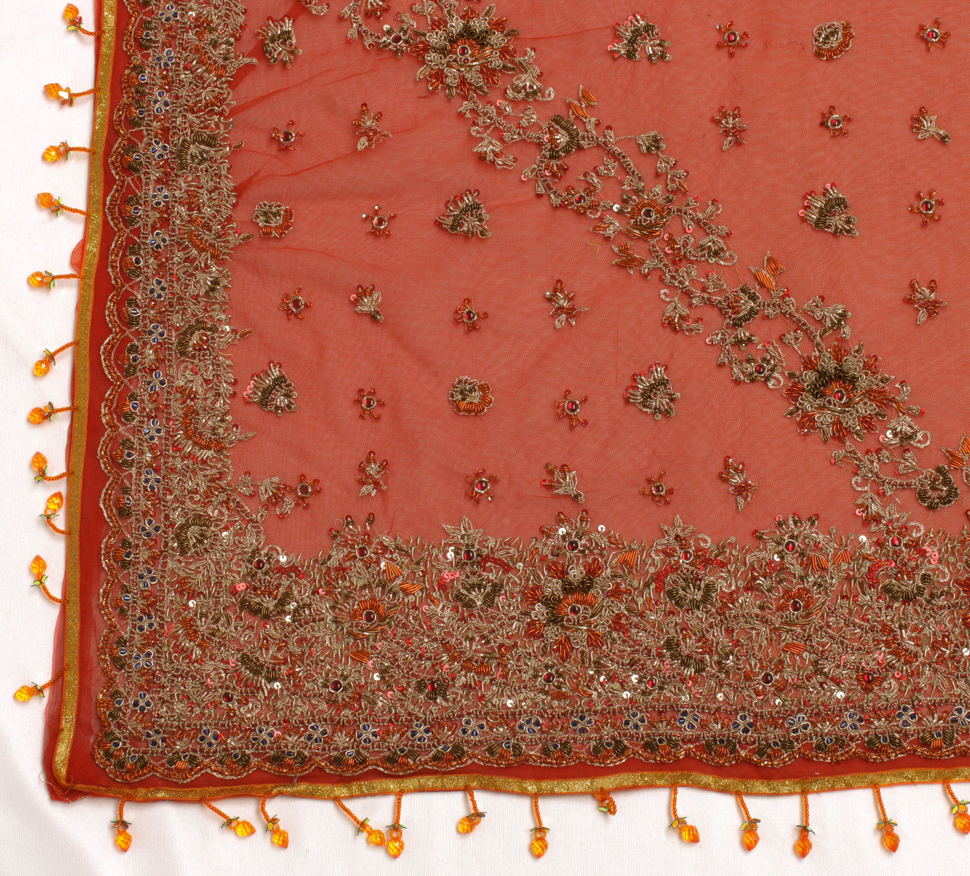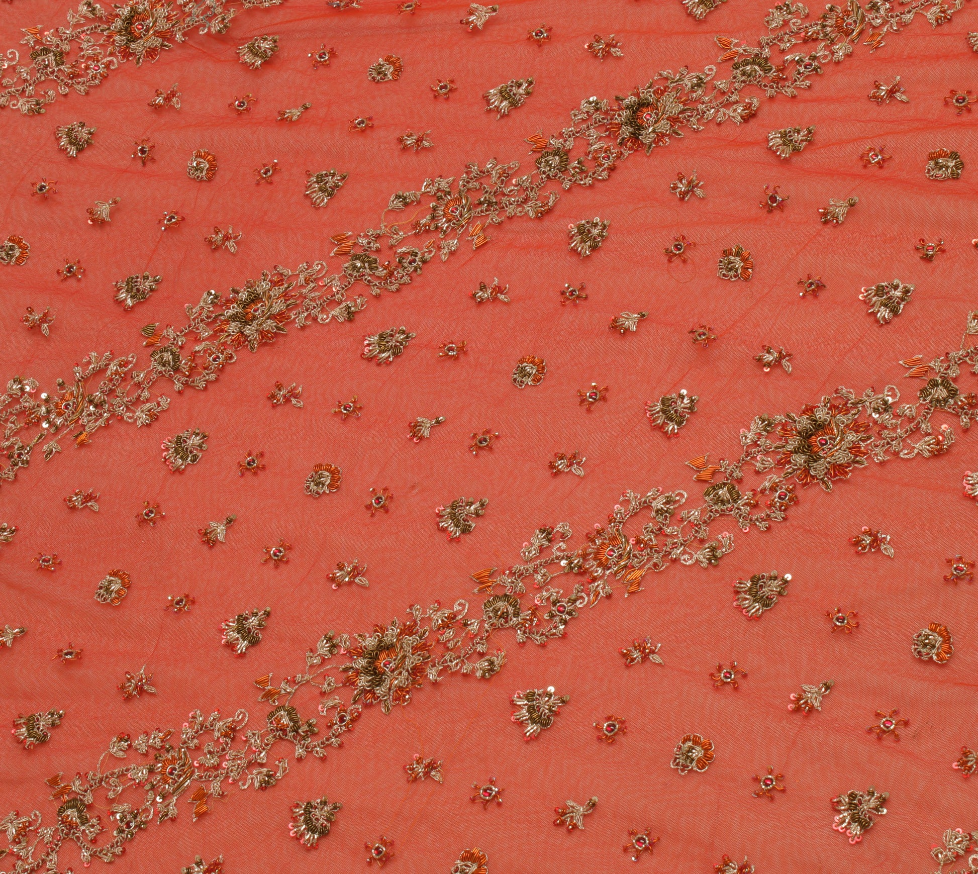 Step into a world of timeless elegance with this exquisite Dark Orange Floral Heavy Dupatta, also known as an Indian Long Stole, Scarves, Veil, or Hijab. Crafted from premium Net Mesh, this piece features intricate Hand Beaded Zardozi Work, Stone Work, Glass Beads, Sequins Work & Embroidered work that captures the rich cultural heritage of India. The Dark Orange base beautifully complements the delicate Floral details, making it a perfect choice for weddings, festivals, or creative upcycling projects.