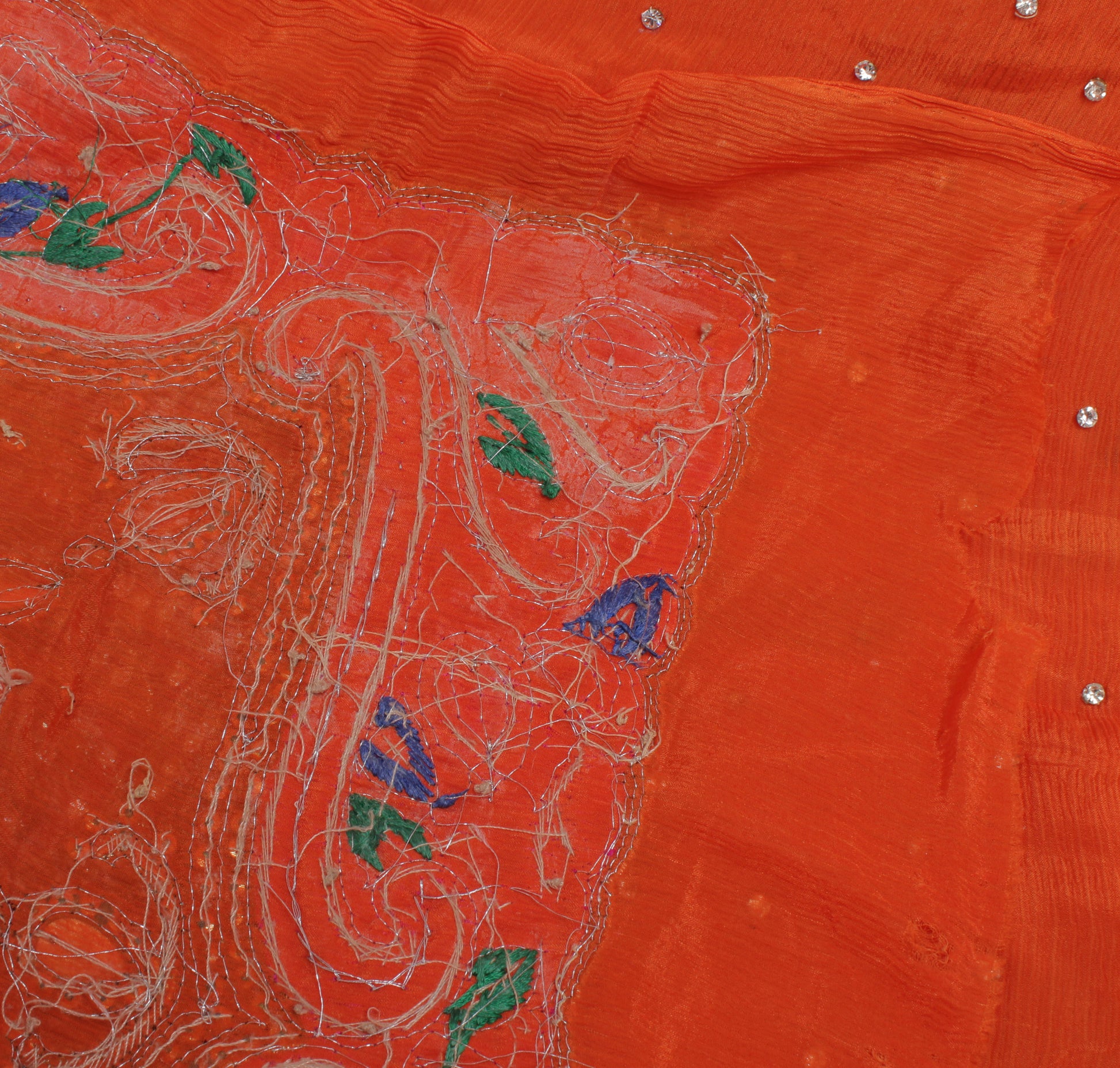 Sushila Vintage Orange Heavy Dupatta Pure Chiffon Silk Hand Beaded Long Stole