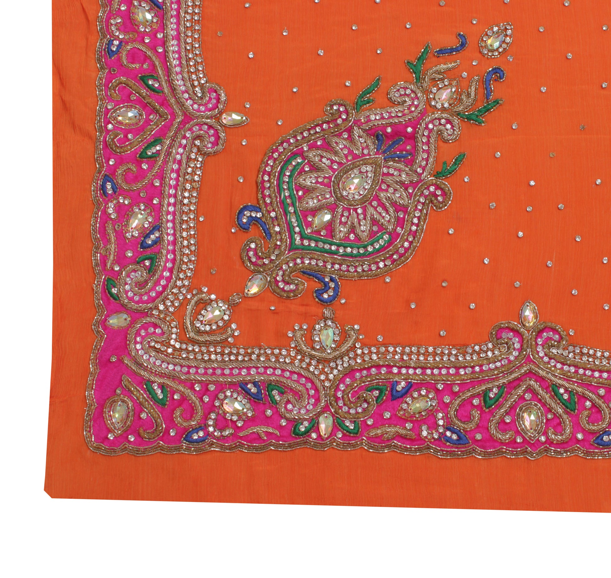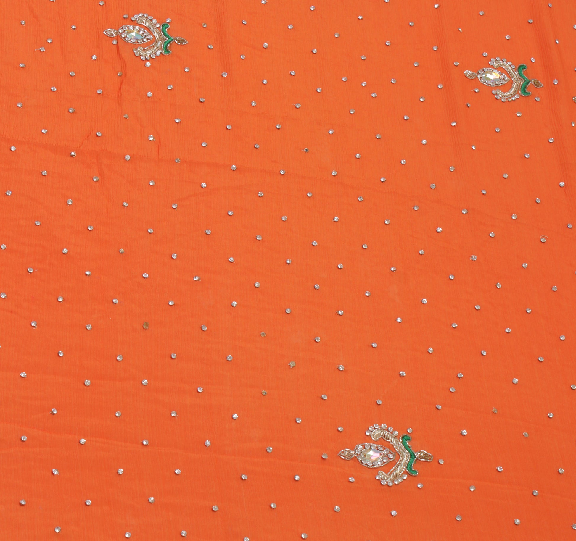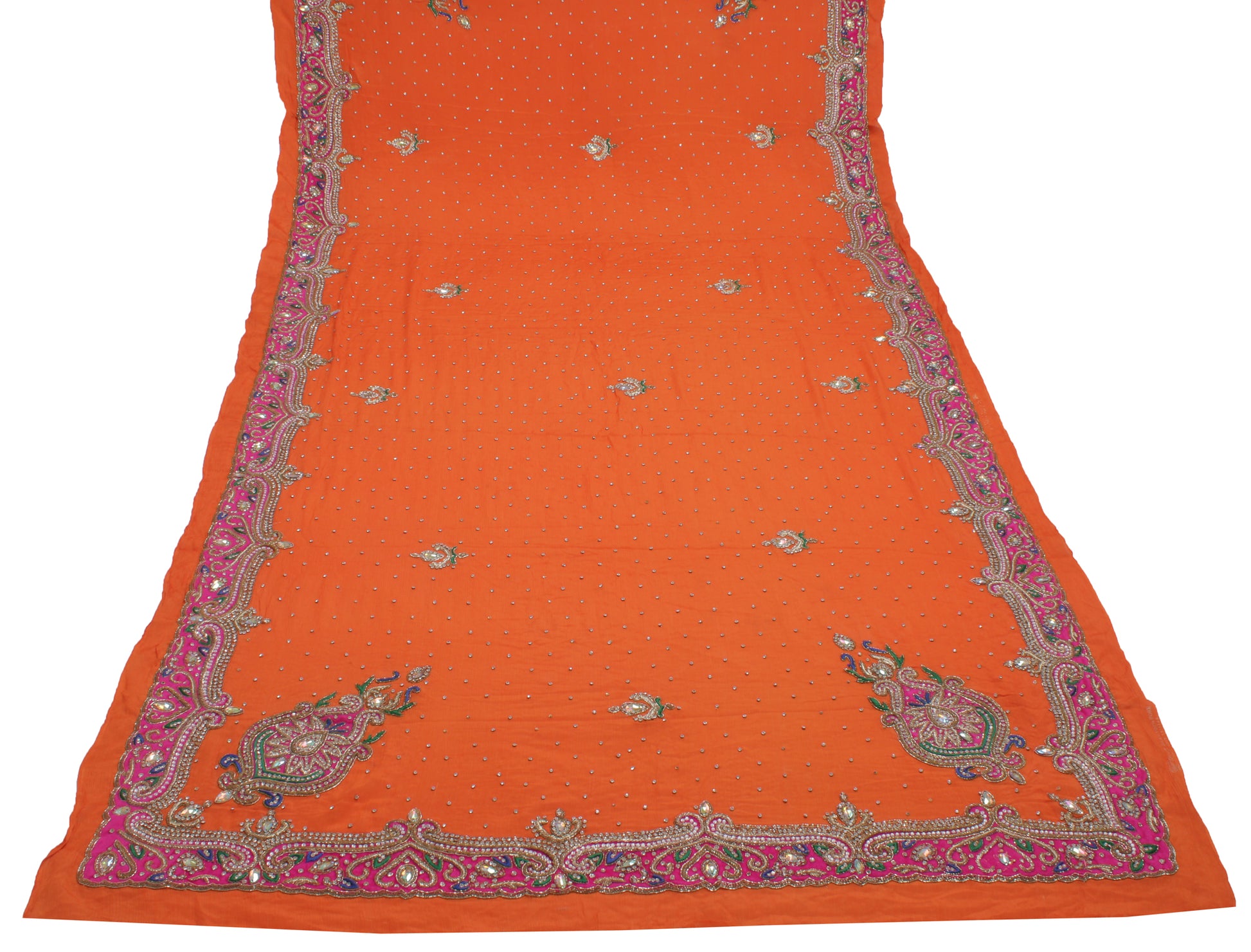 Add a touch of cultural heritage to your collection with this beautiful Orange Floral Heavy Dupatta, ideal for use as an Indian Long Stole, Scarves, Veil, or Hijab. Crafted from premium Pure Chiffon Silk, this piece features intricate Hand Beaded, Stone Work, Rhine Stone, Glass Beads, Patch Work & Embroidered work that captures the rich cultural heritage of India. The Orange base beautifully complements the delicate Floral details, making it a perfect choice for weddings, festivals, or creative upcycling projects.