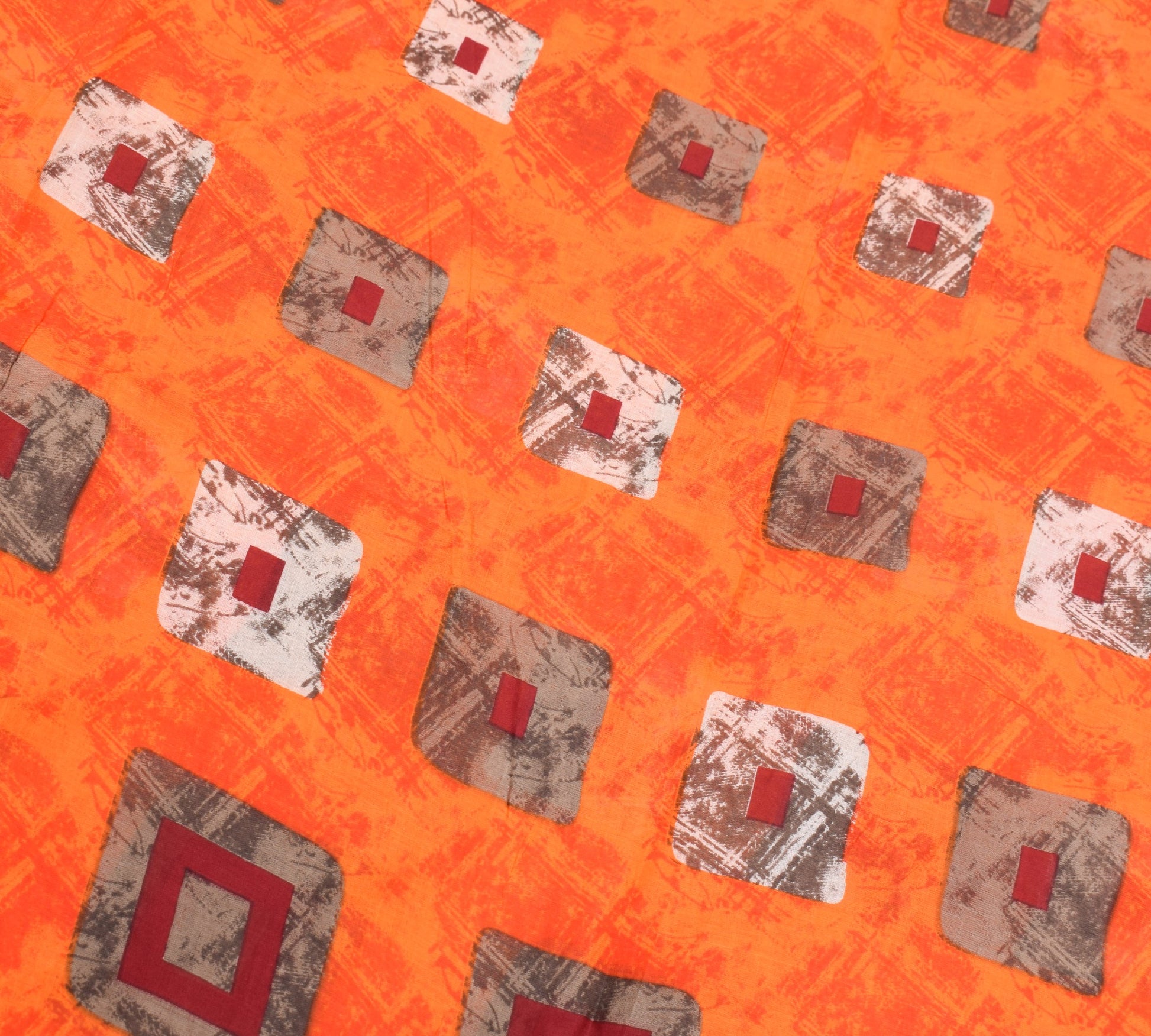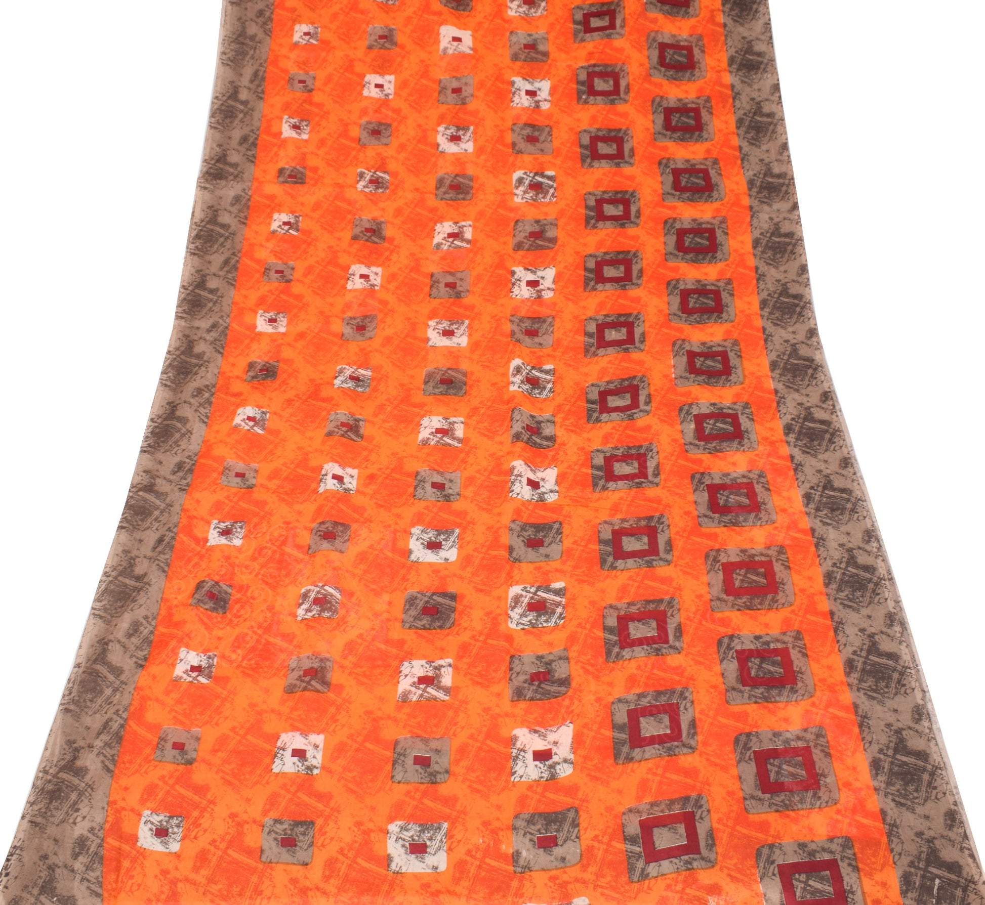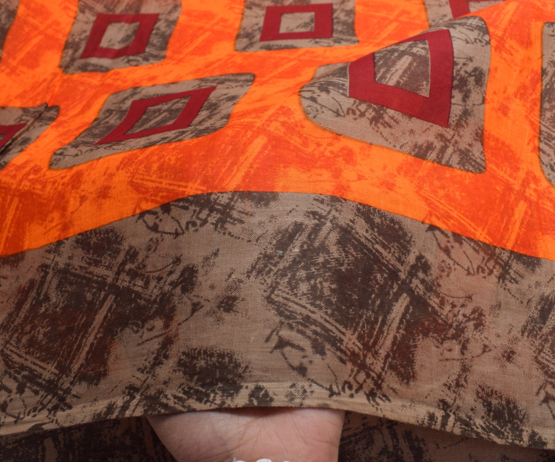 Sushila Vintage Orange Saree 100% Pure Cotton Geometrical Printed Craft Fabric