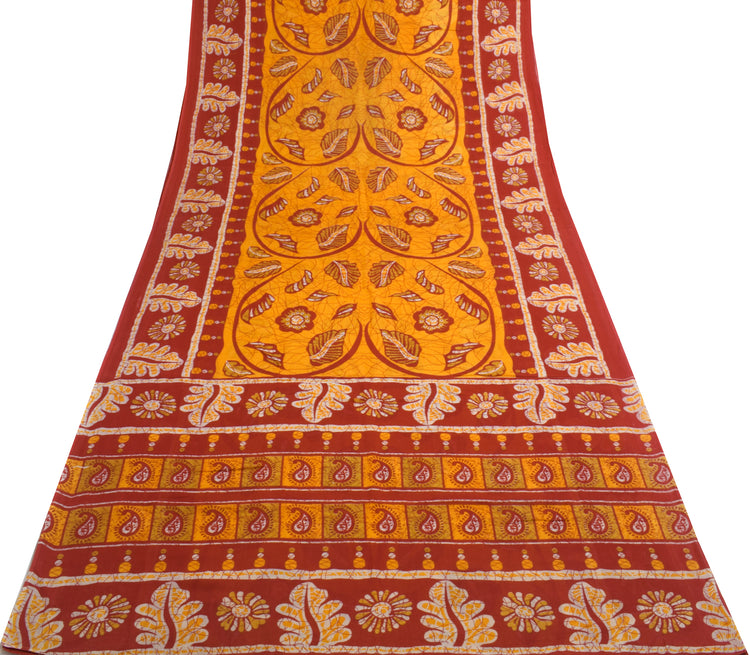 Sushila Vintage Orange Saree 100% Pure Cotton Printed Floral Soft Craft Fabric
