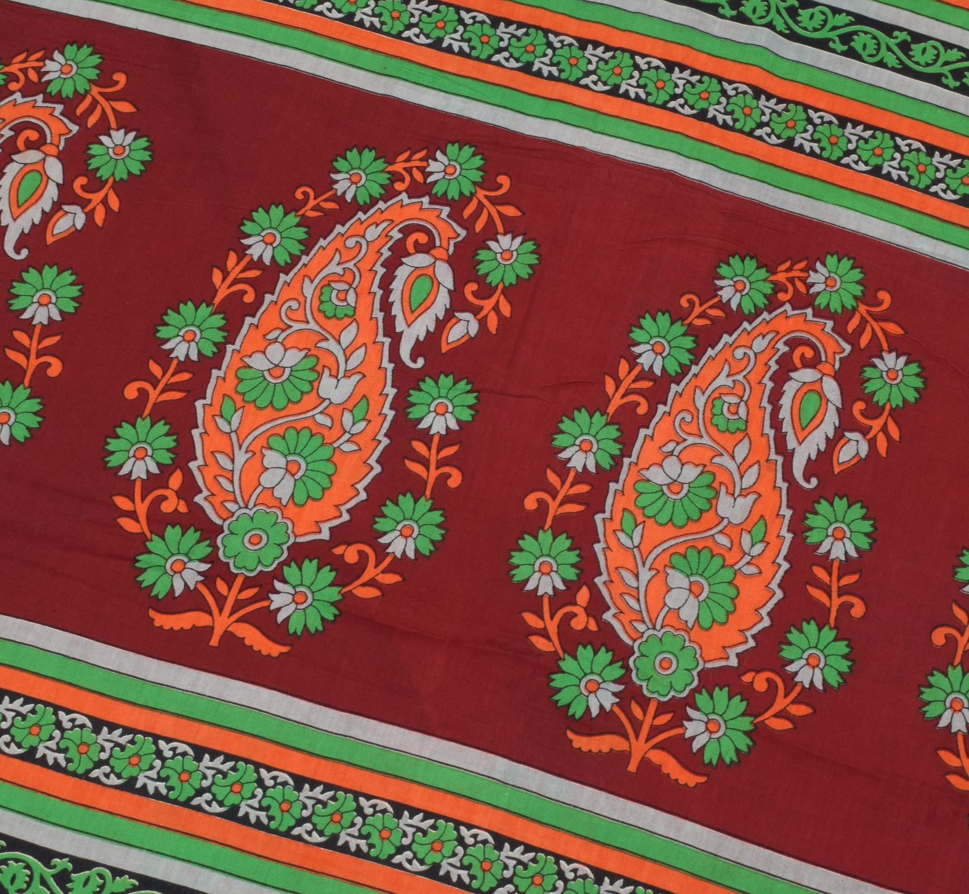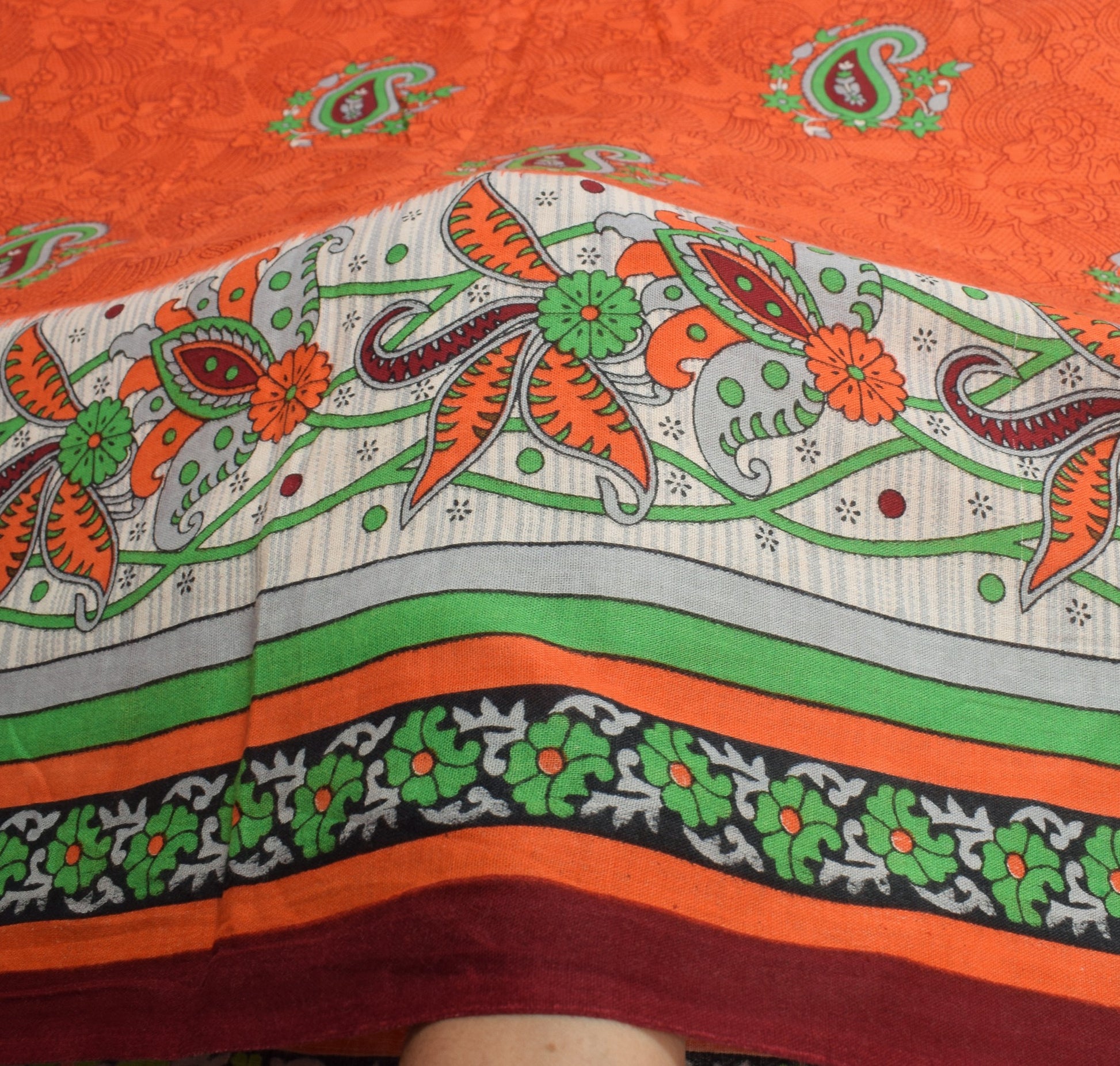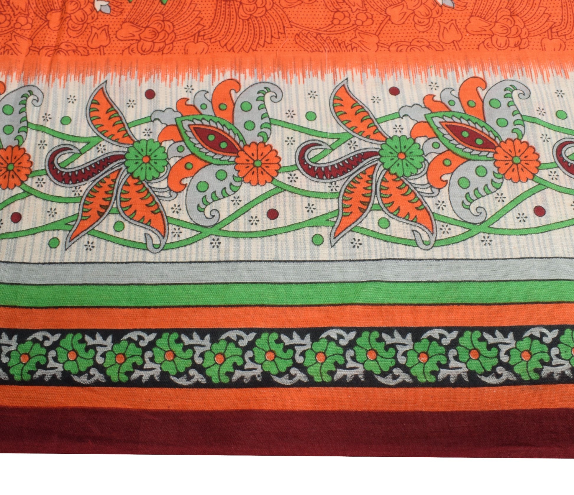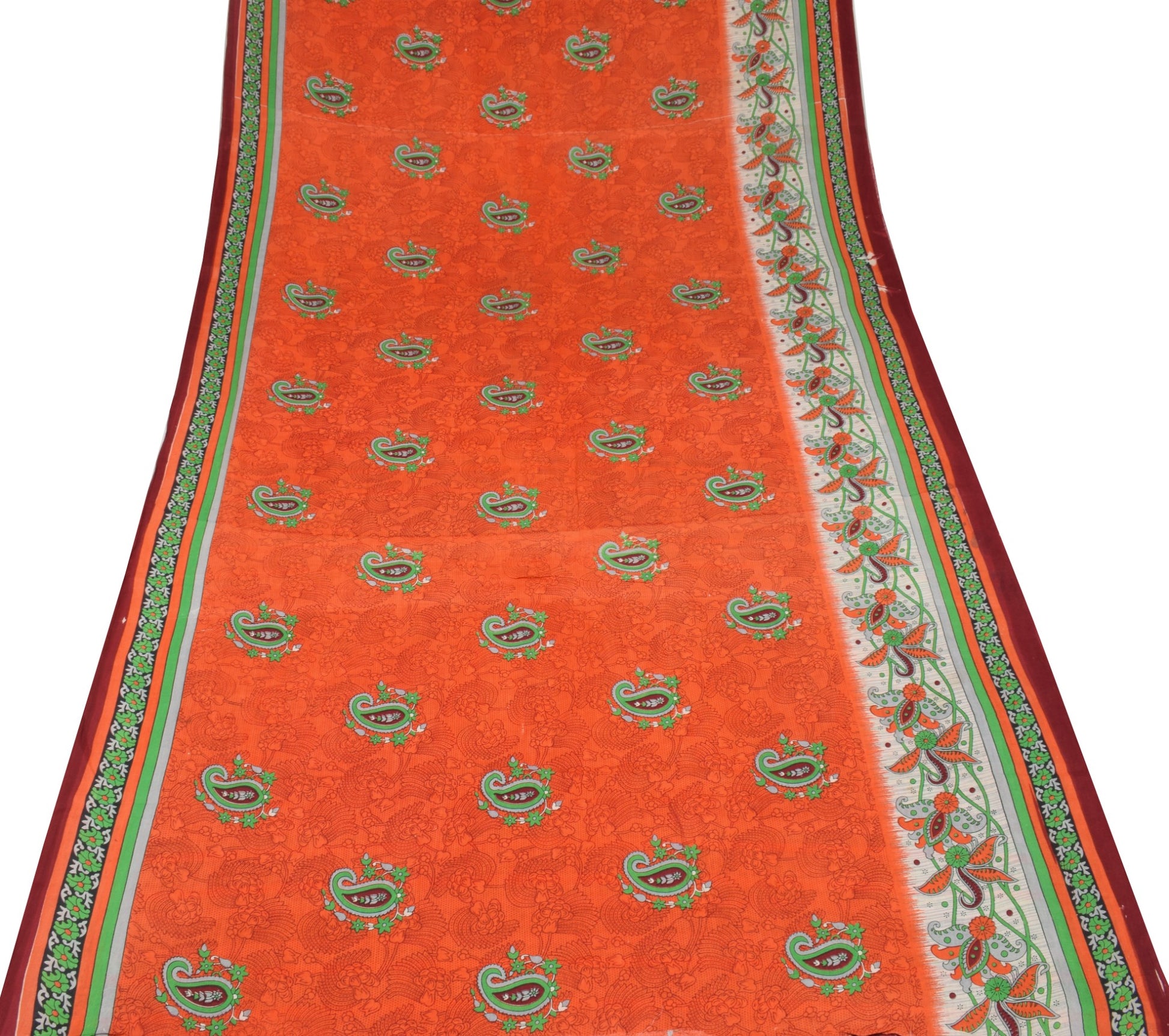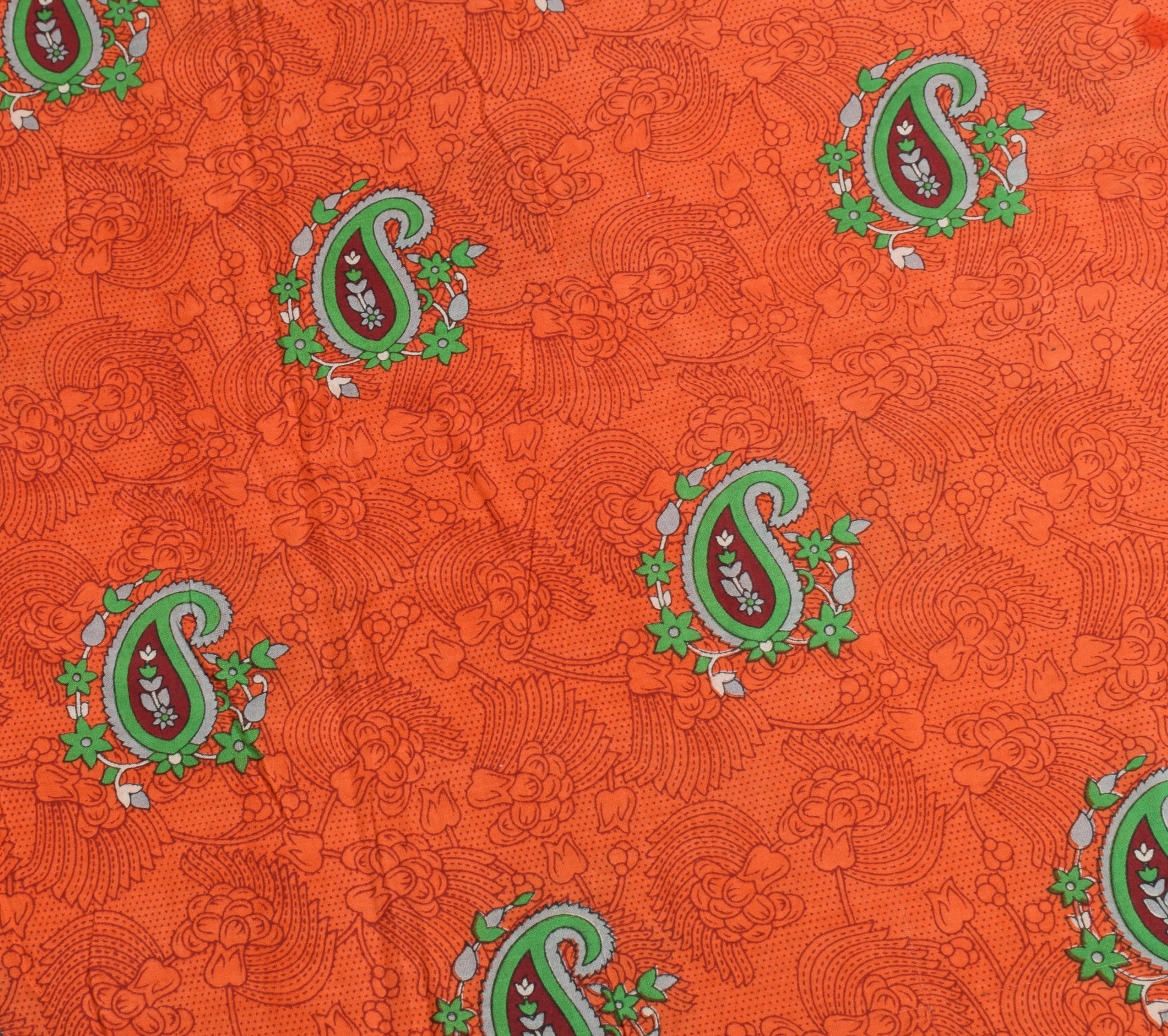 Sushila Vintage Orange Saree 100% Pure Cotton Soft Paisley Printed Craft Fabric