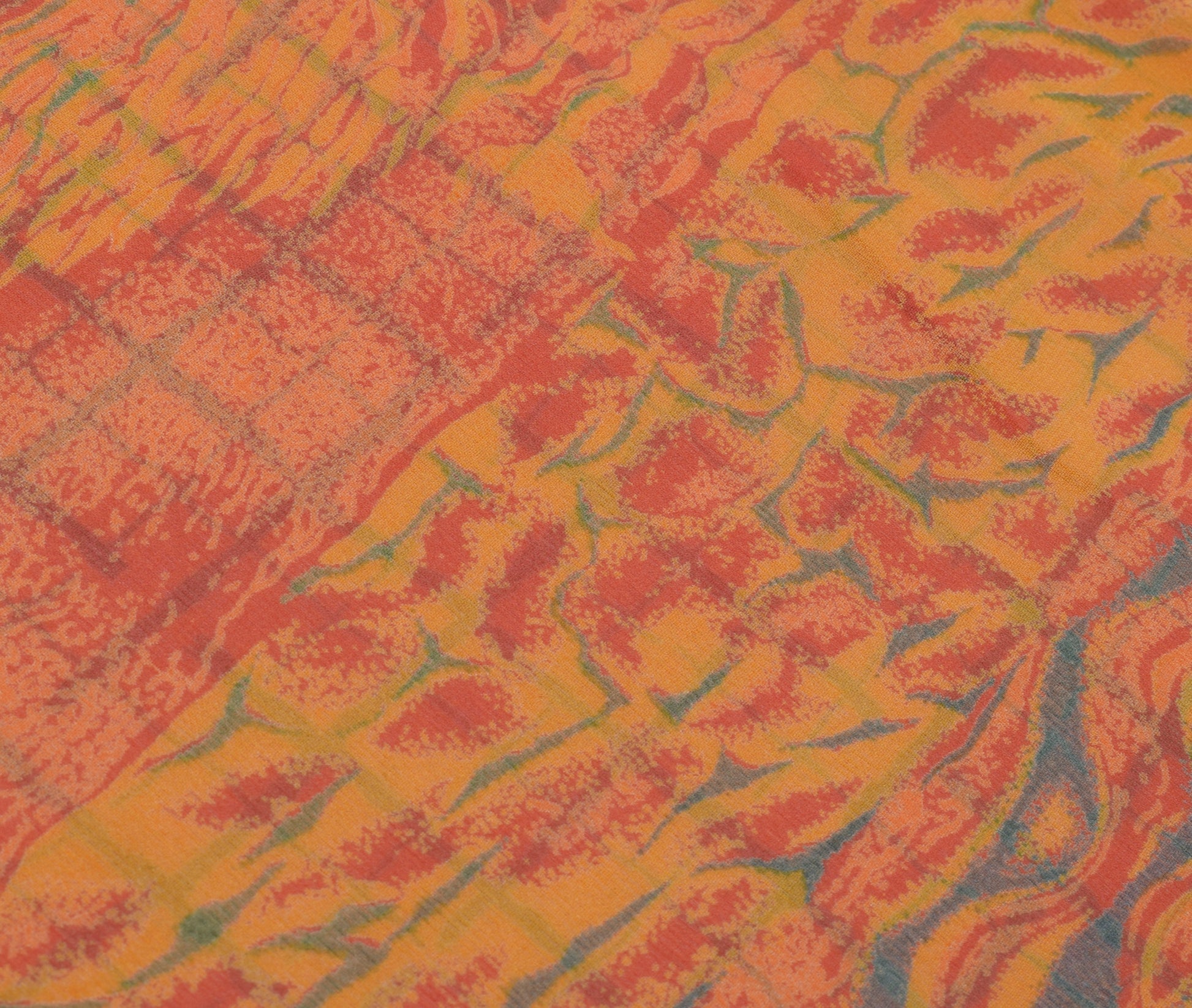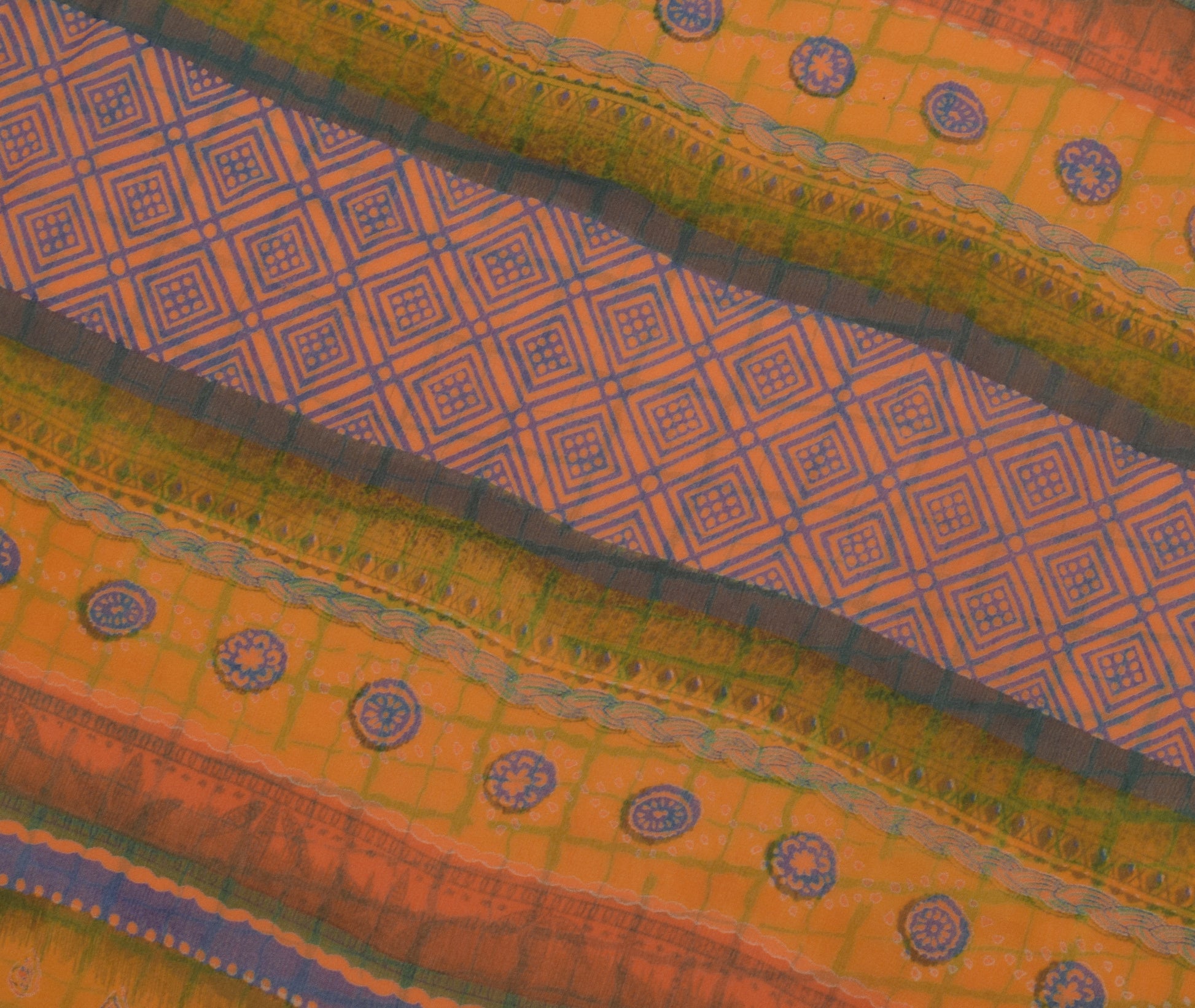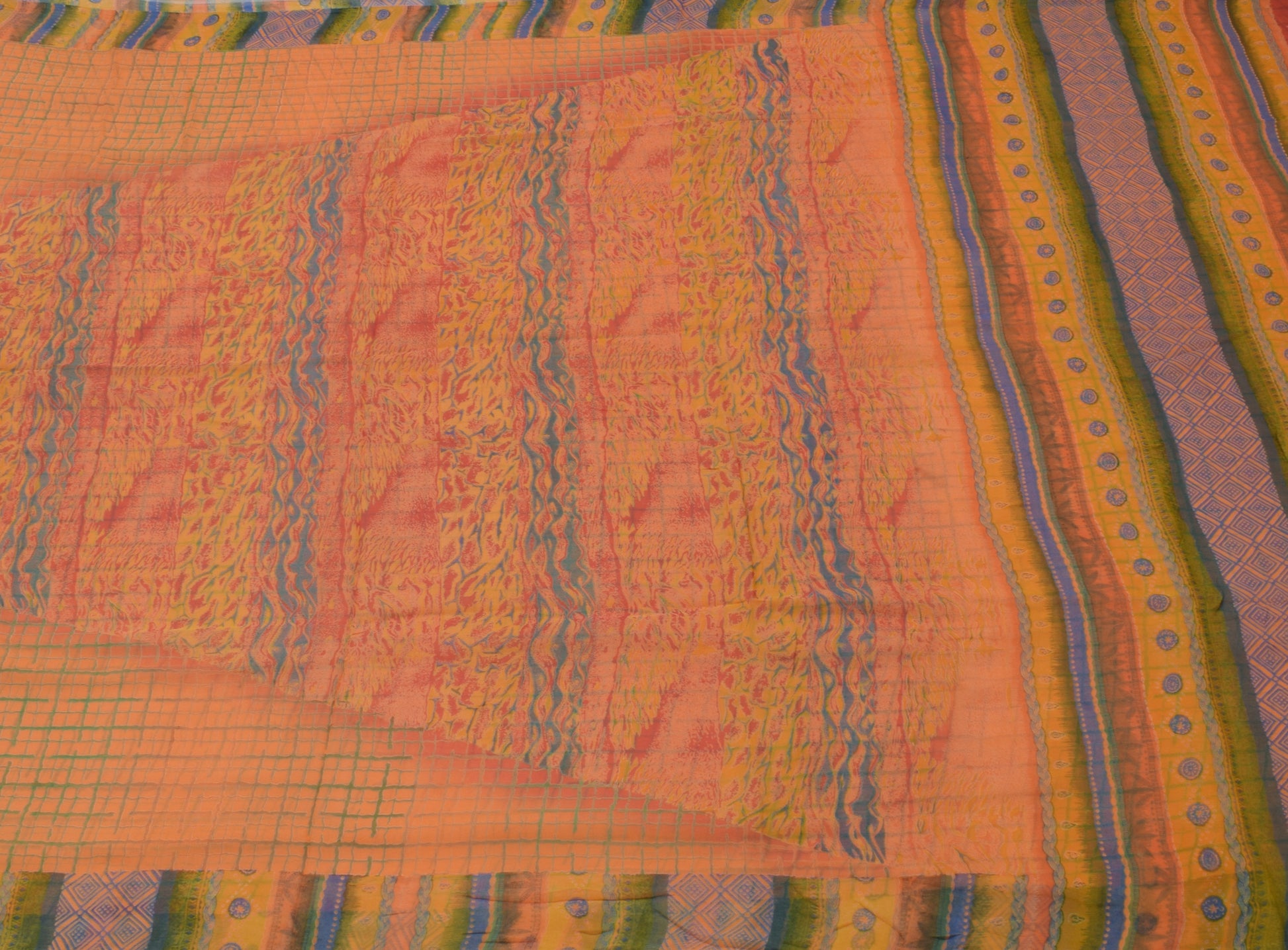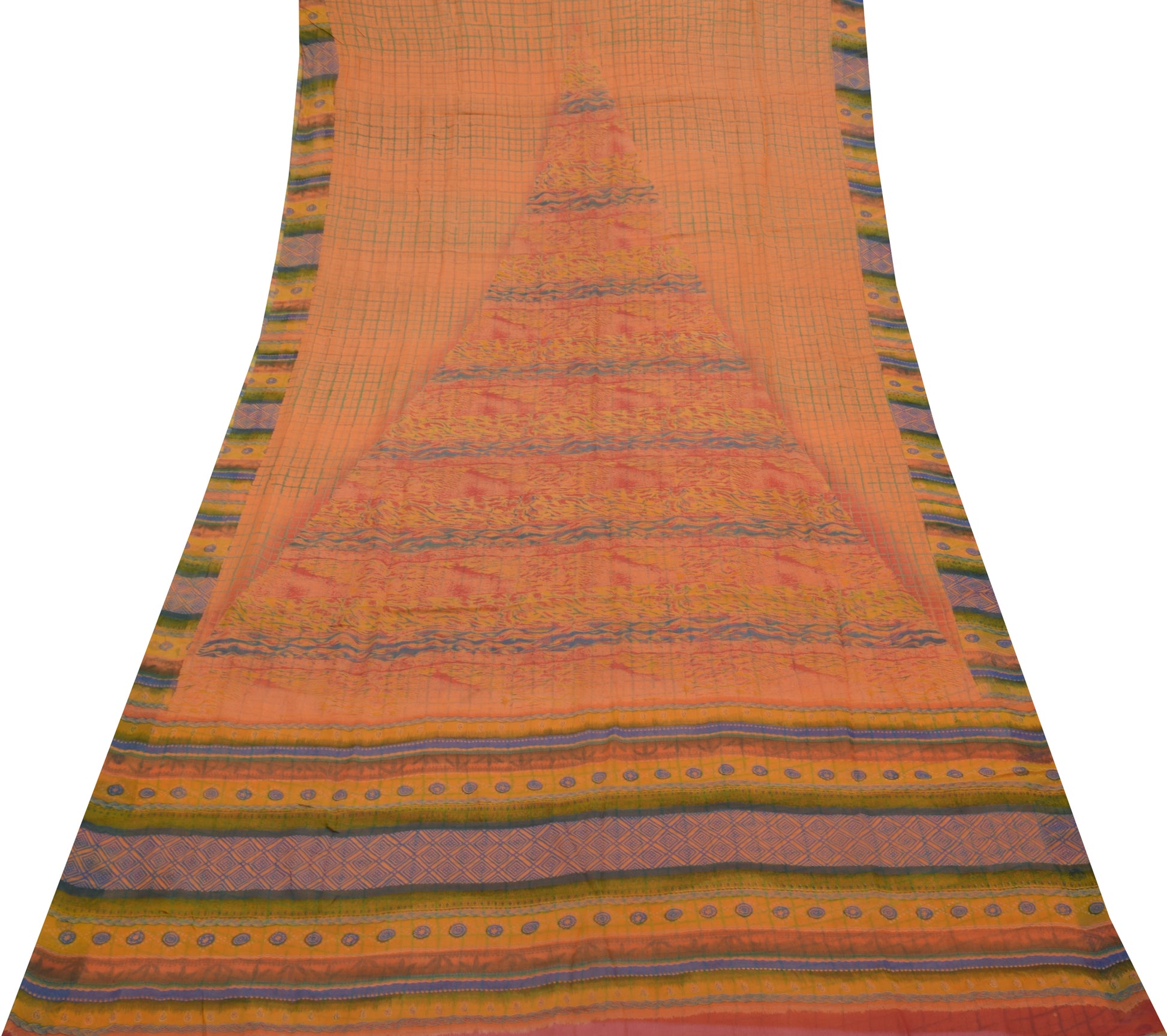 Sushila Vintage Orange Saree 100% Pure Georgette Silk Printed Craft Sari Fabric