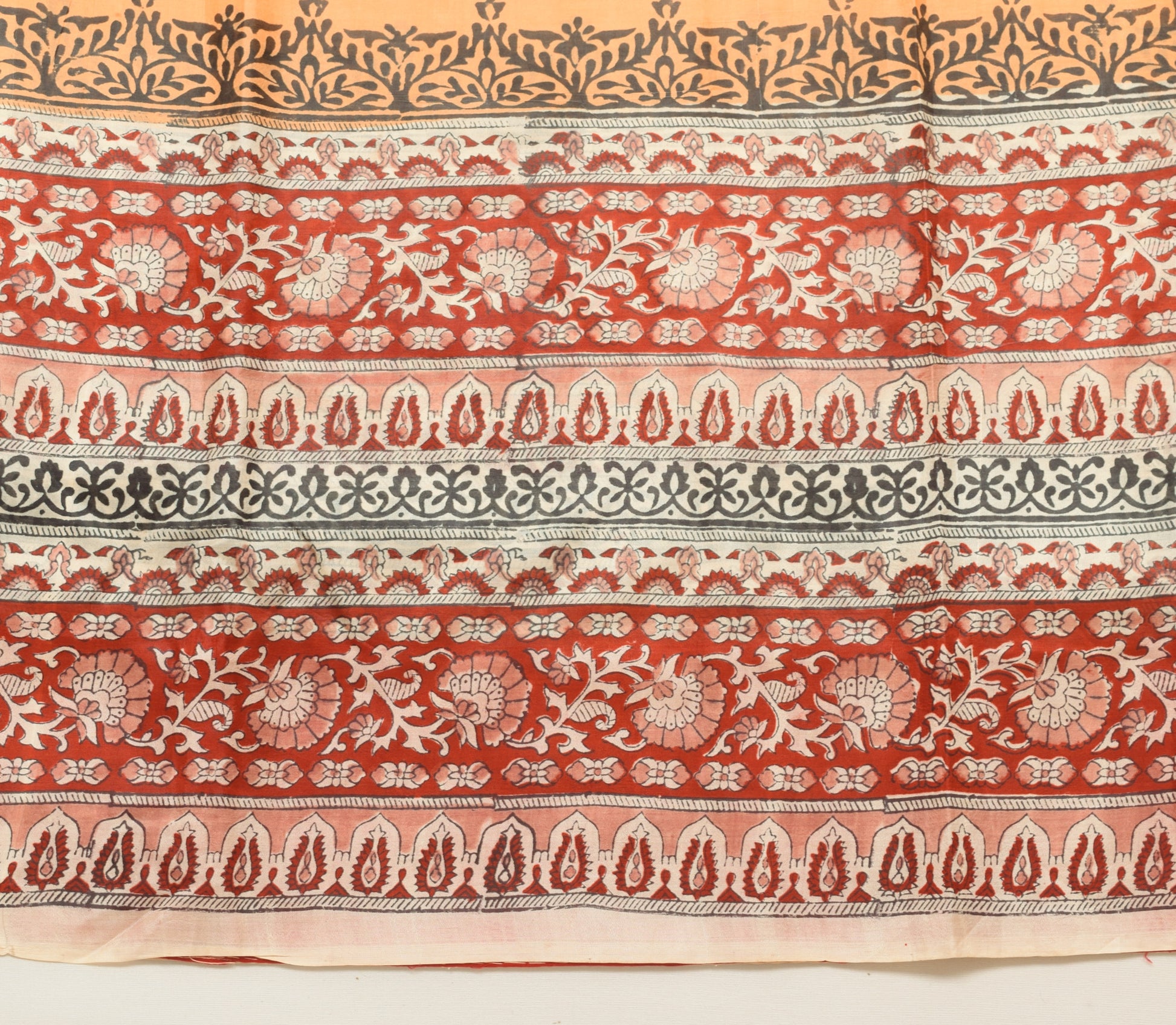 Celebrate the beauty of heritage textiles with this stunning light orange 100% pure silk saree, adorned with floral patterns and fine hand block printed craftsmanship. Crafted from pure, breathable 100% pure silk, this saree is known for its luxurious drape and timeless appeal. Measuring approximately 190 inch in length and 44 inch in width, it offers versatile styling possibilities, whether worn traditionally or repurposed for creative projects. With a weight of 210 grams (actual product weight), it drapes beautifully, making it an ideal choice for those who appreciate the charm of vintage textiles.