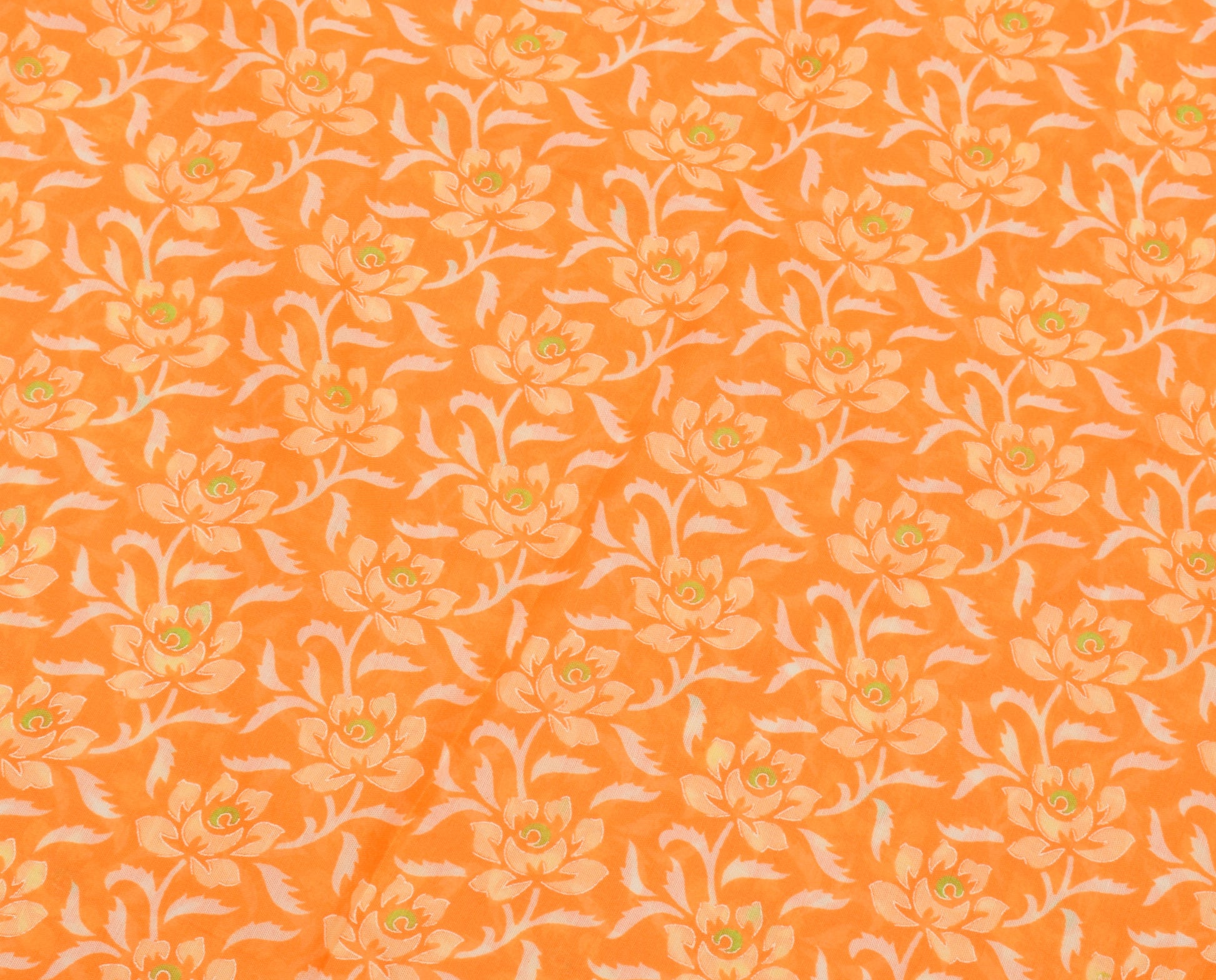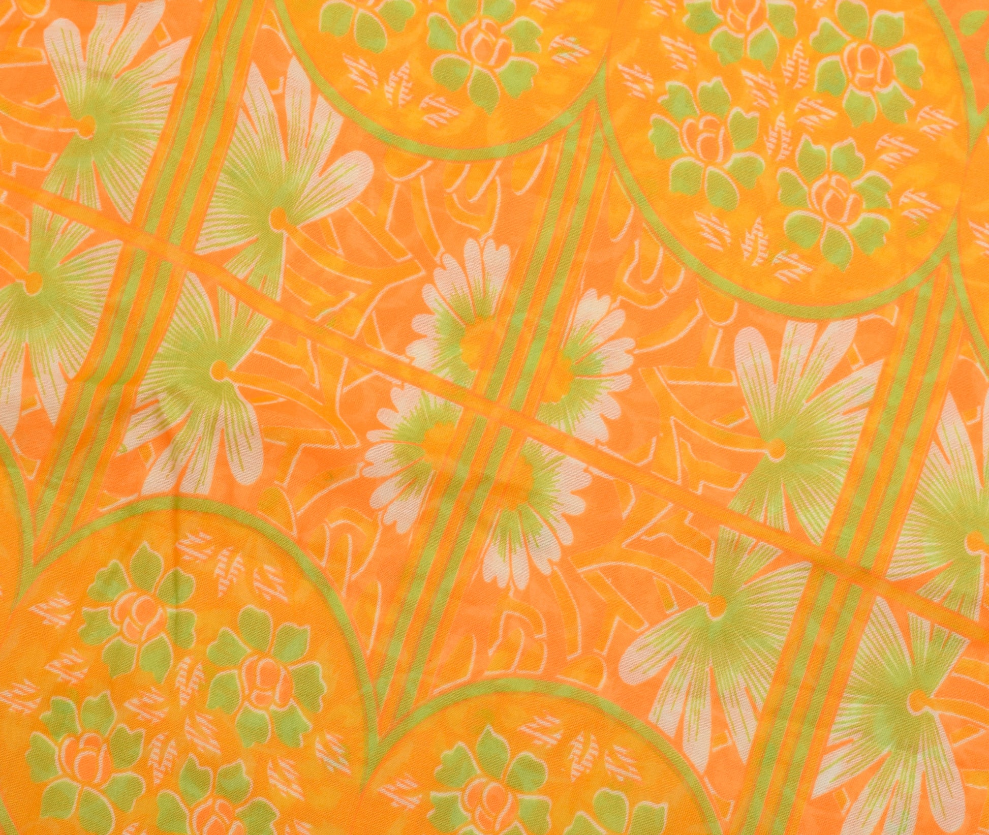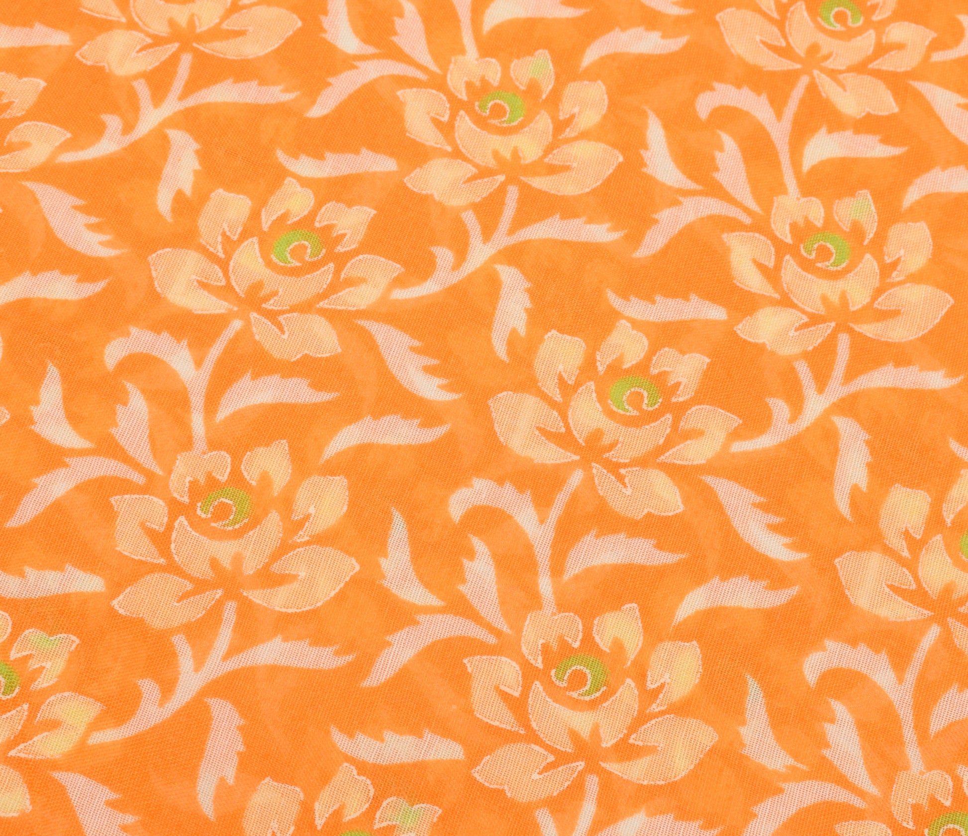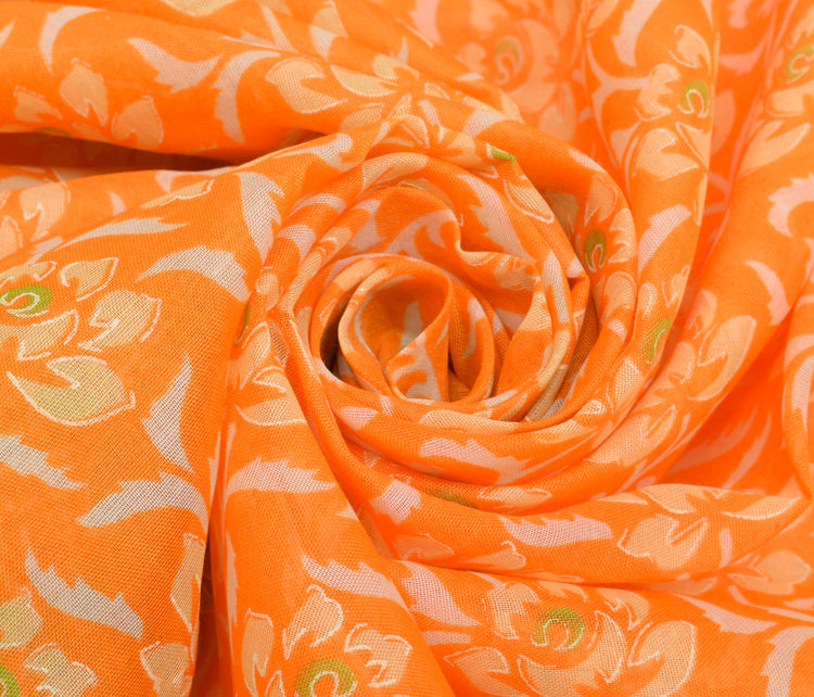 Sushila Vintage Orange Saree Blend Cotton Printed Floral Soft Craft 5 YD Fabric