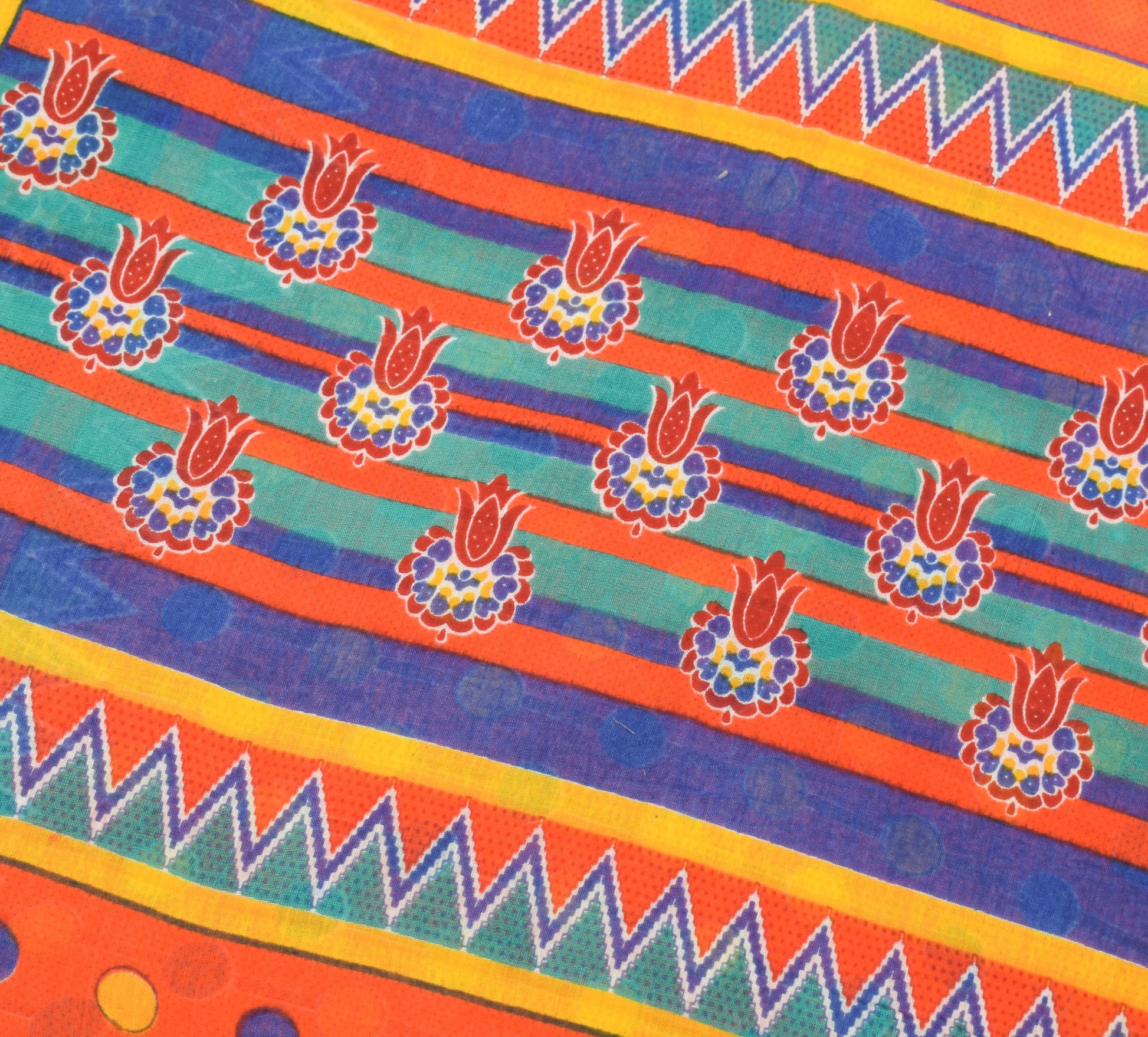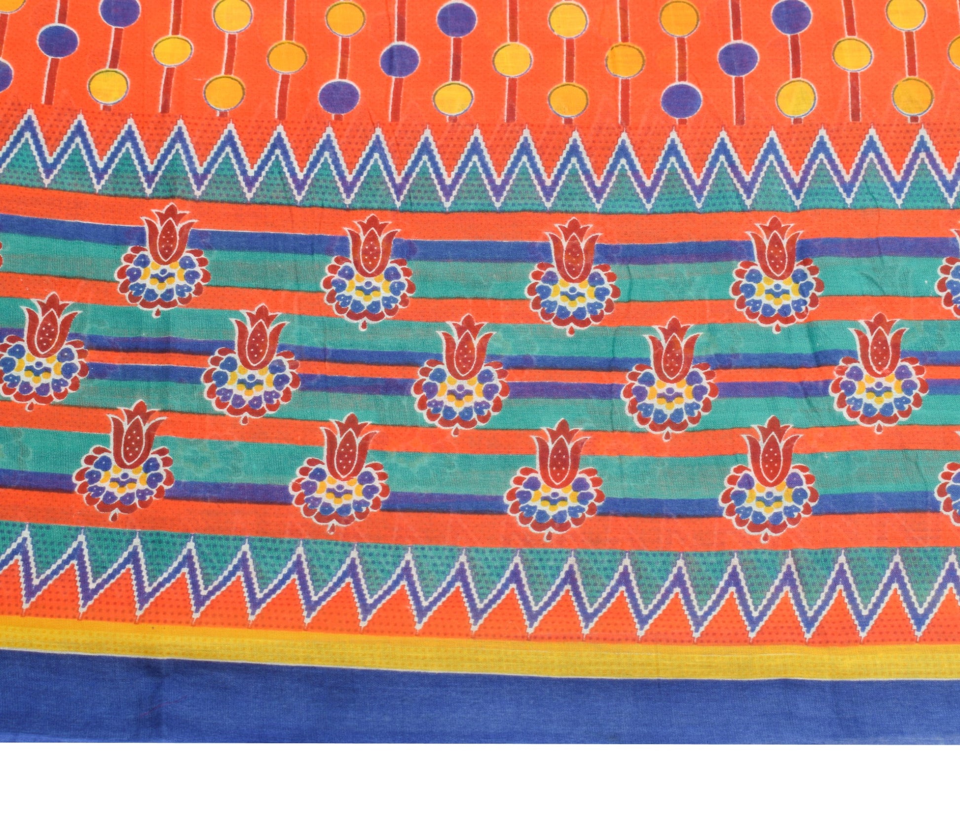 Sushila Vintage Orange Saree Polka Dot Printed 100%Pure Cotton Soft Craft Fabric