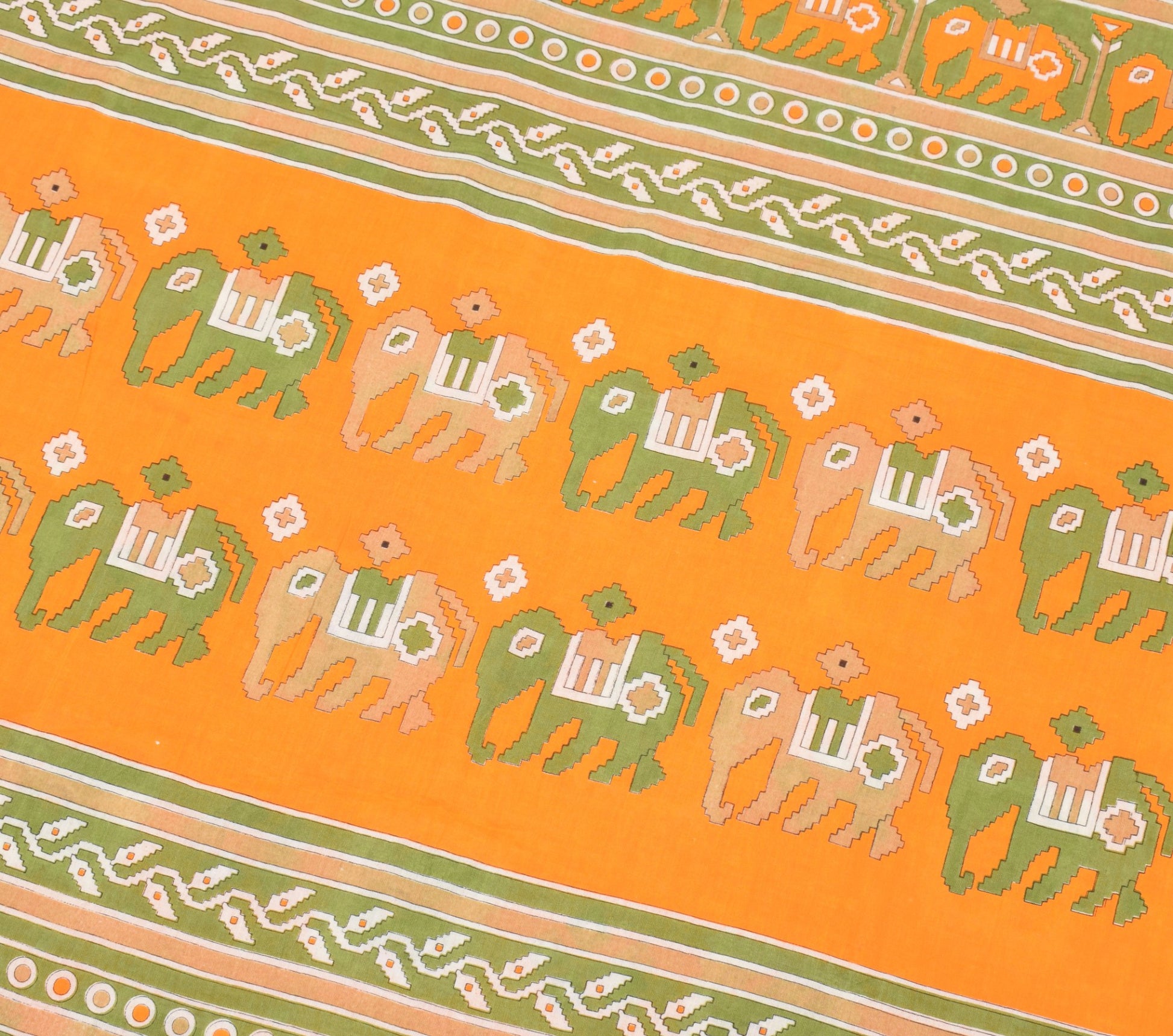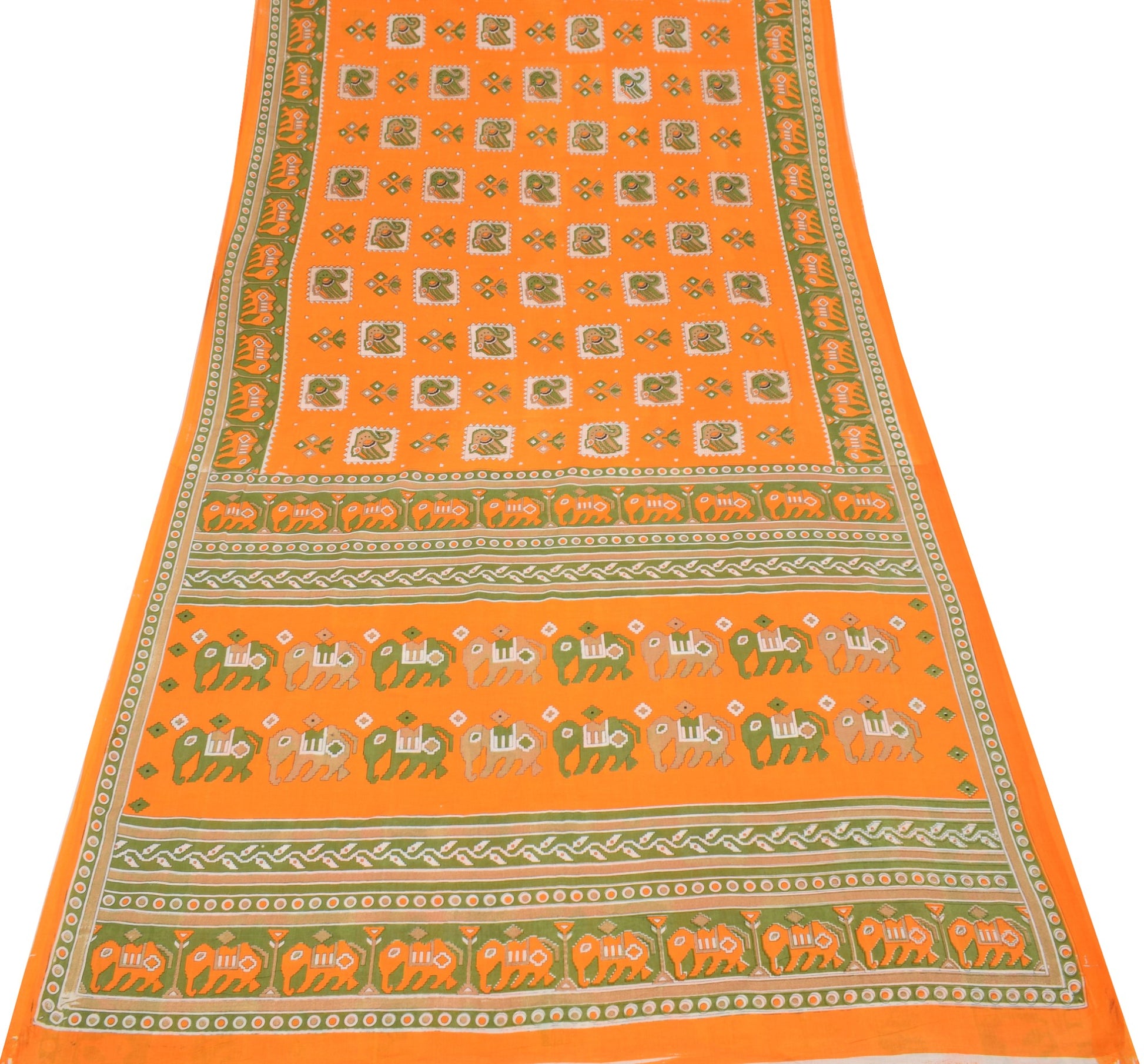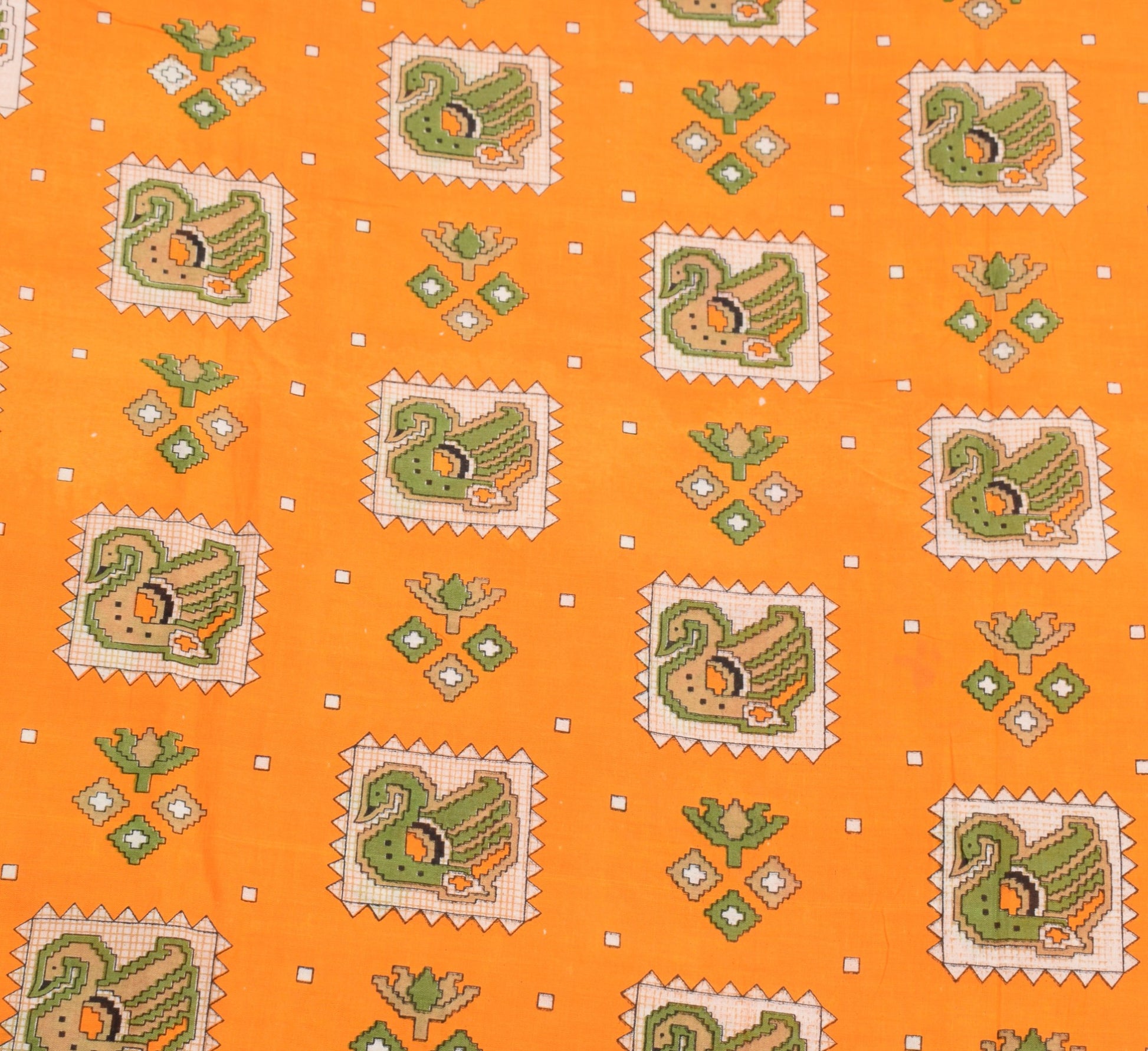 Sushila Vintage Orange Saree Pure Cotton Printed Birds&Animals Sari Soft Fabric