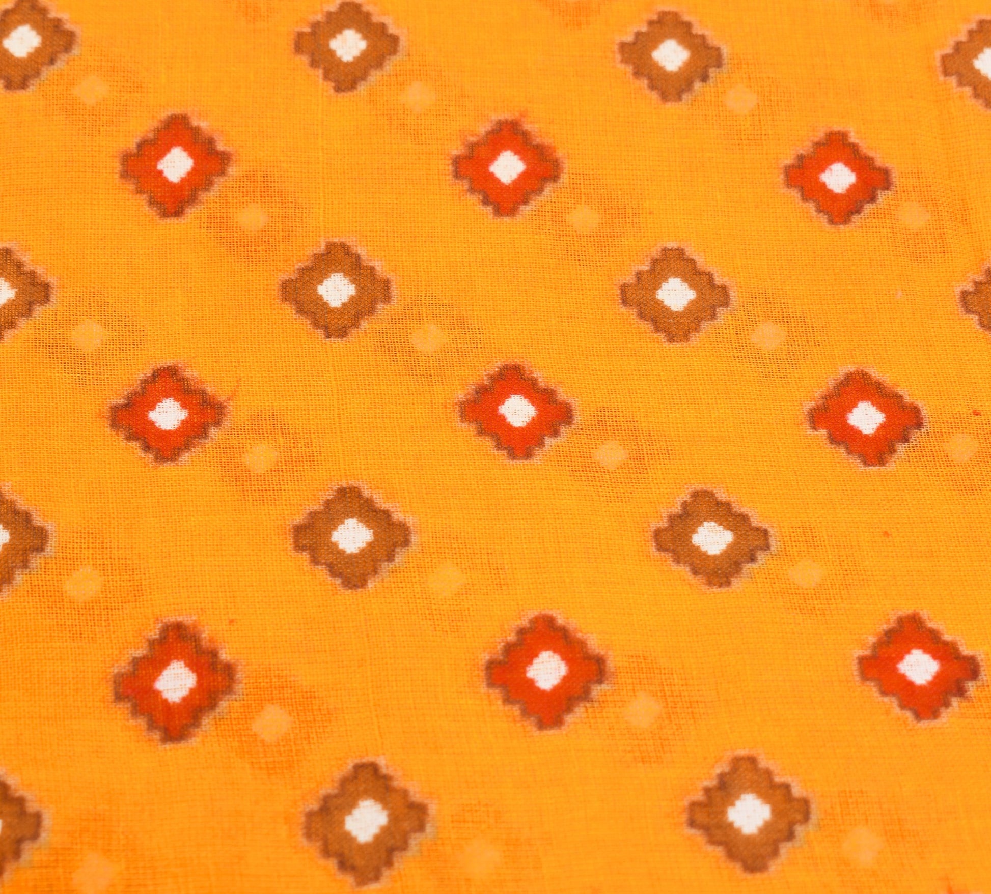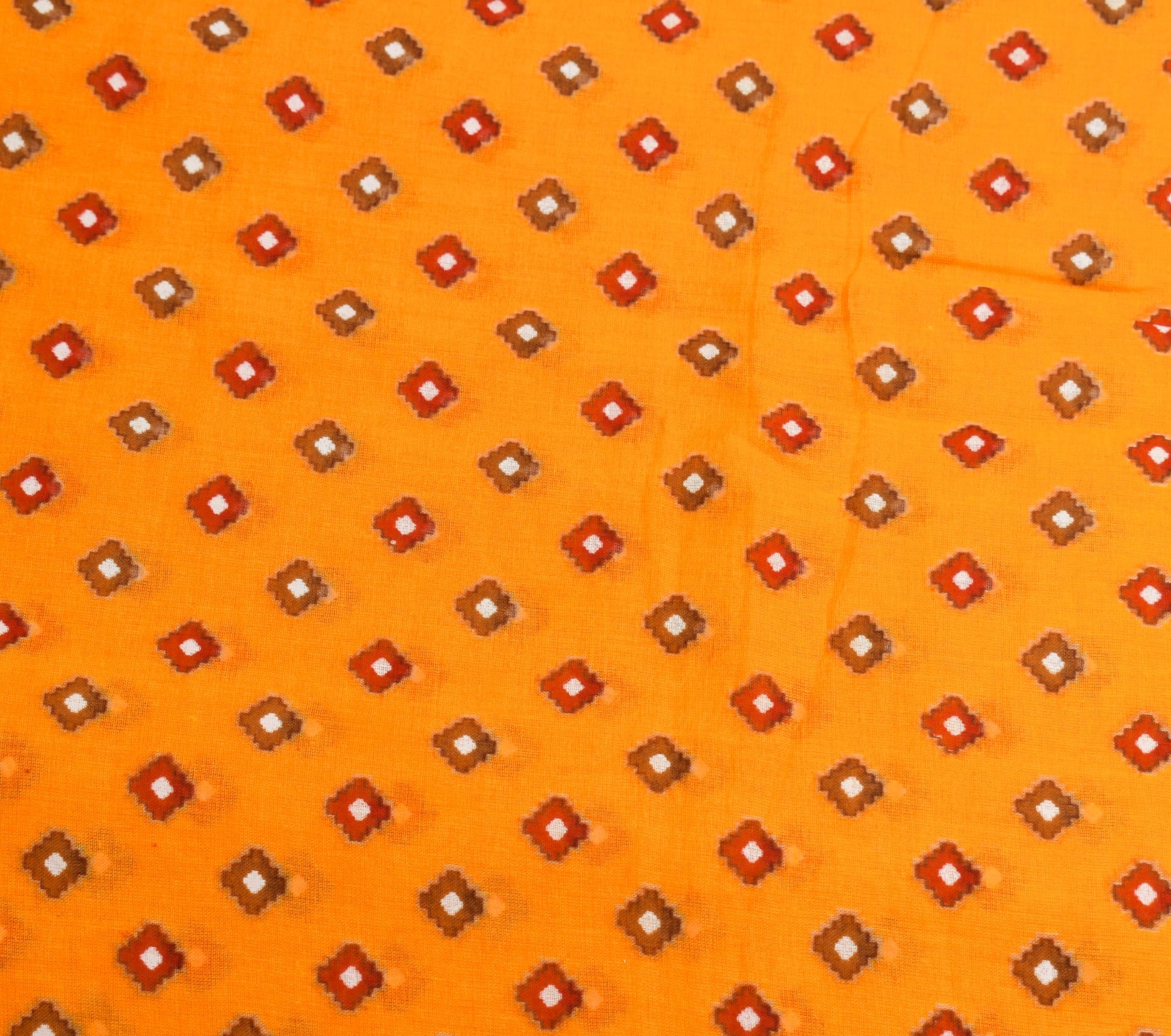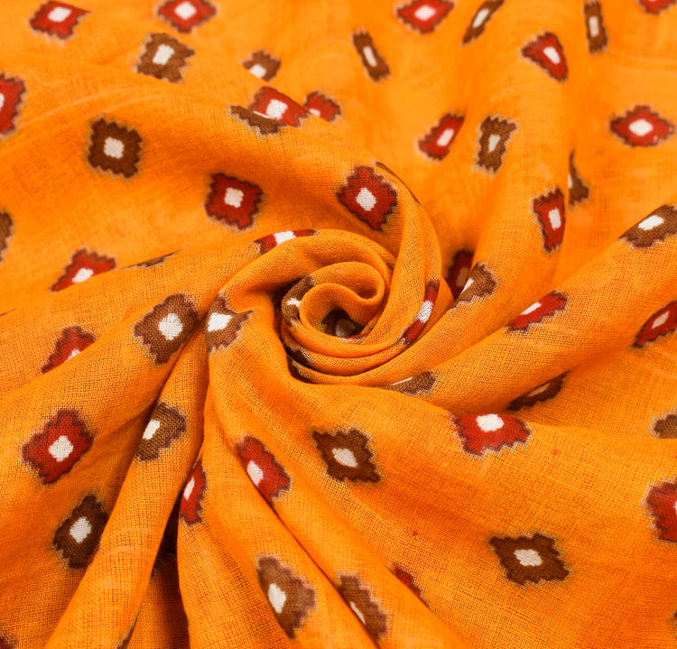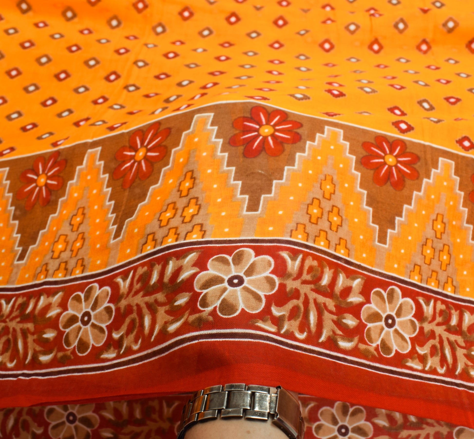Sushila Vintage Orange Saree Pure Cotton Printed Geometrical Soft Craft Fabric