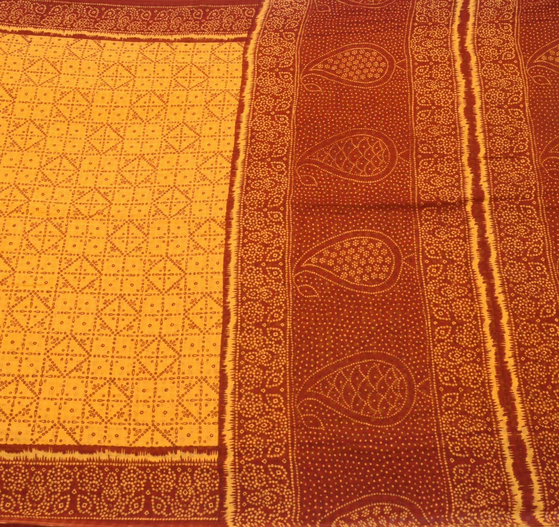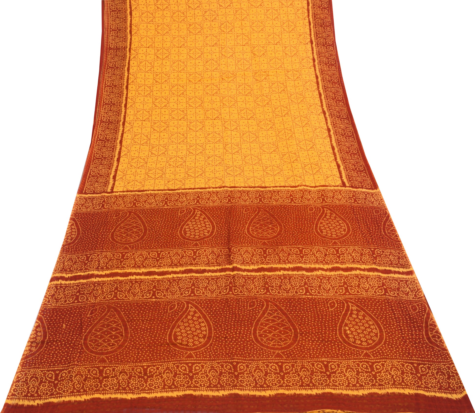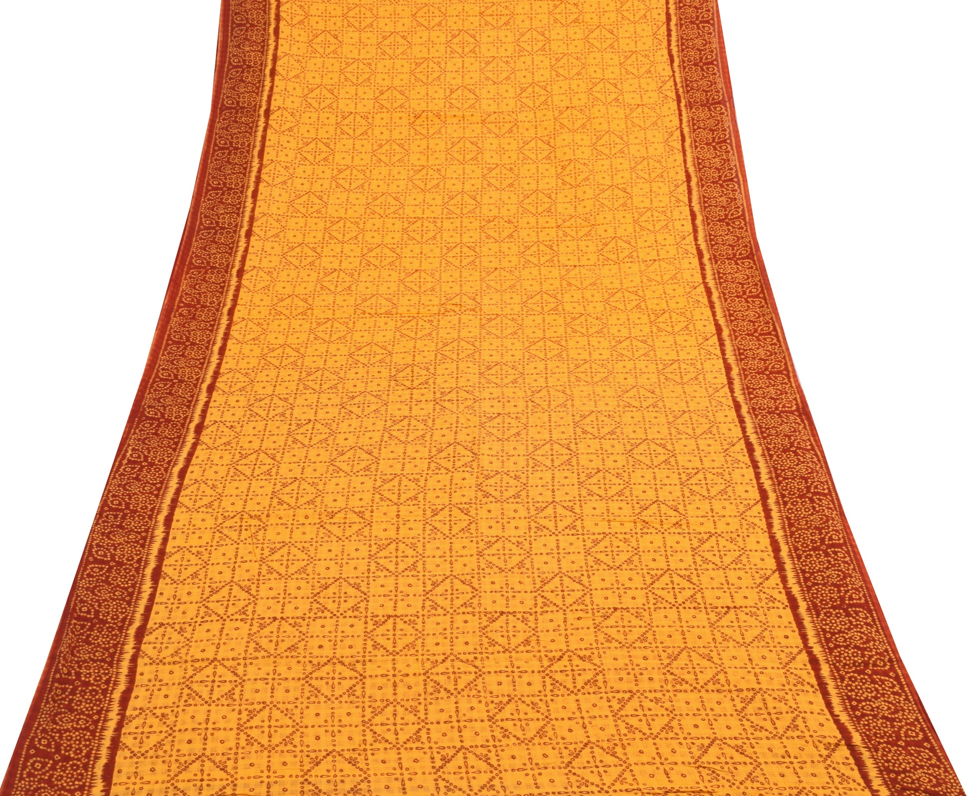 Sushila Vintage Orange Soft Saree 100% Pure Cotton Bandhani Printed Craft Fabric