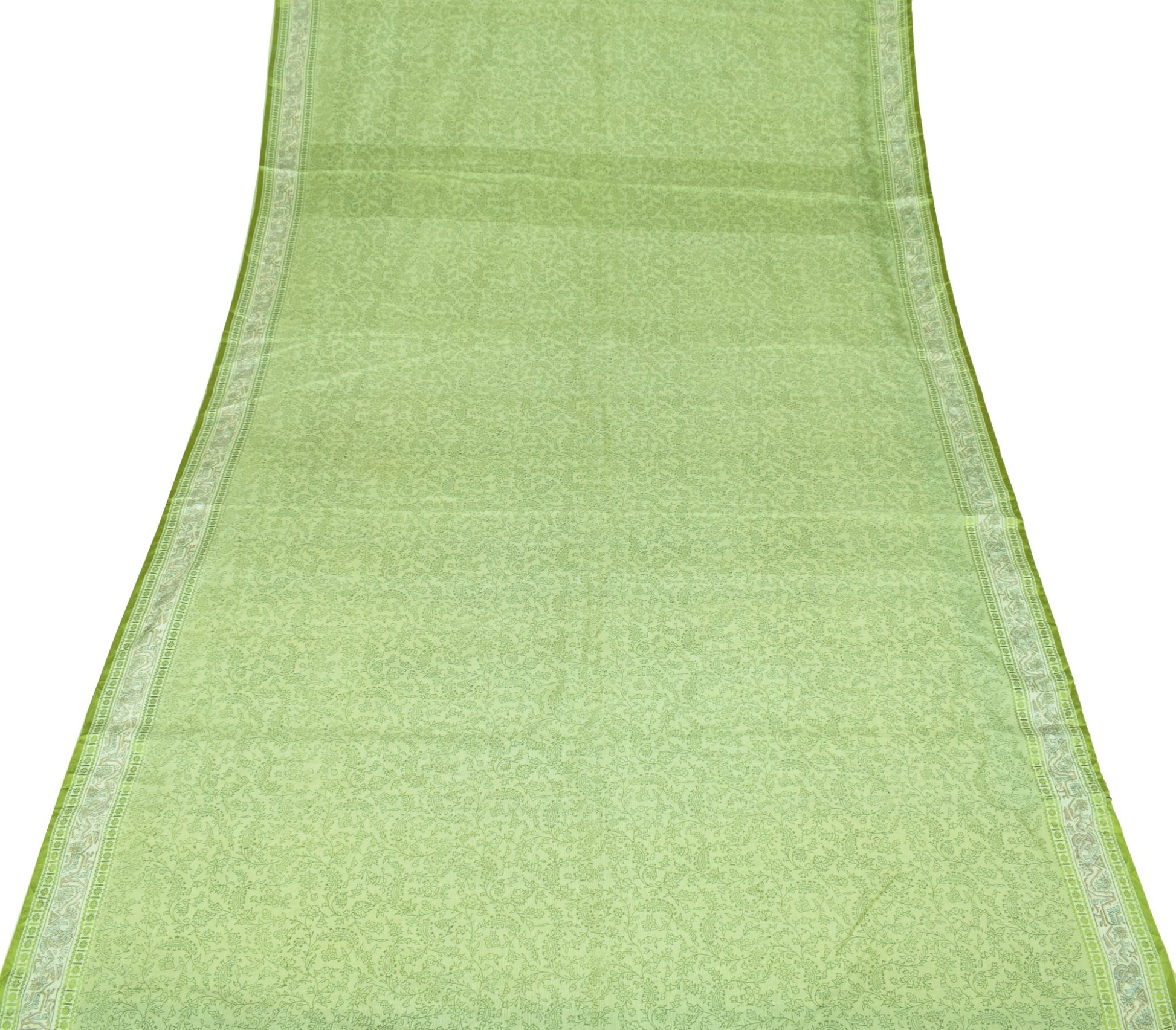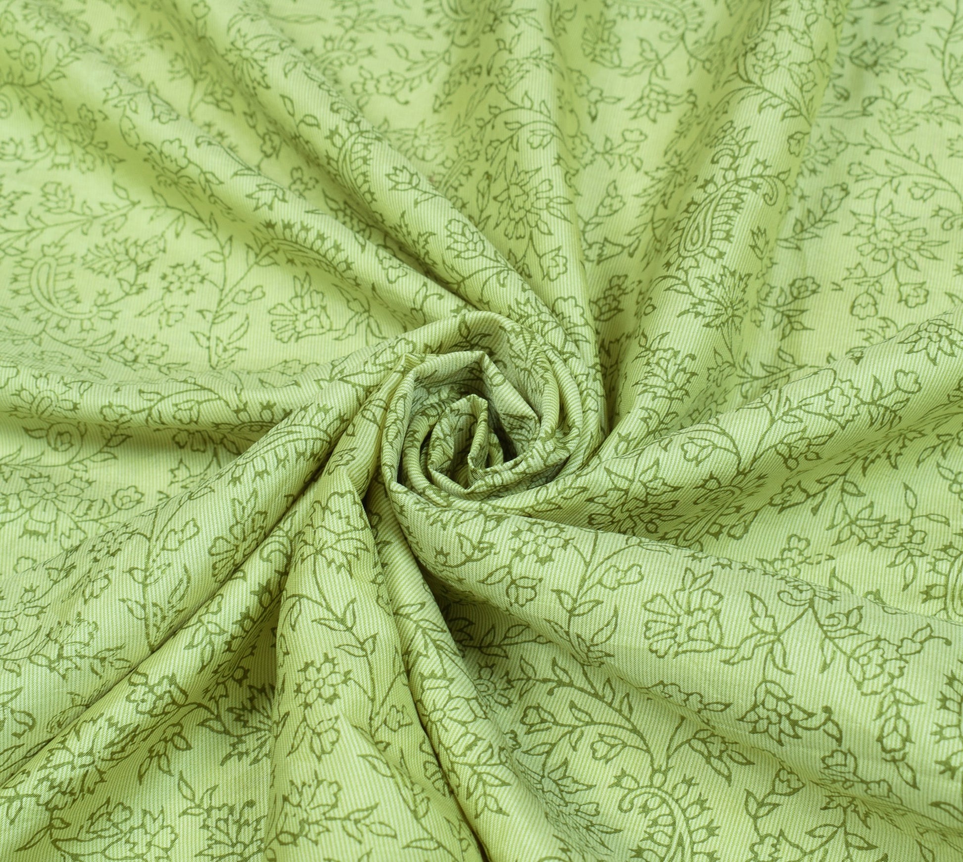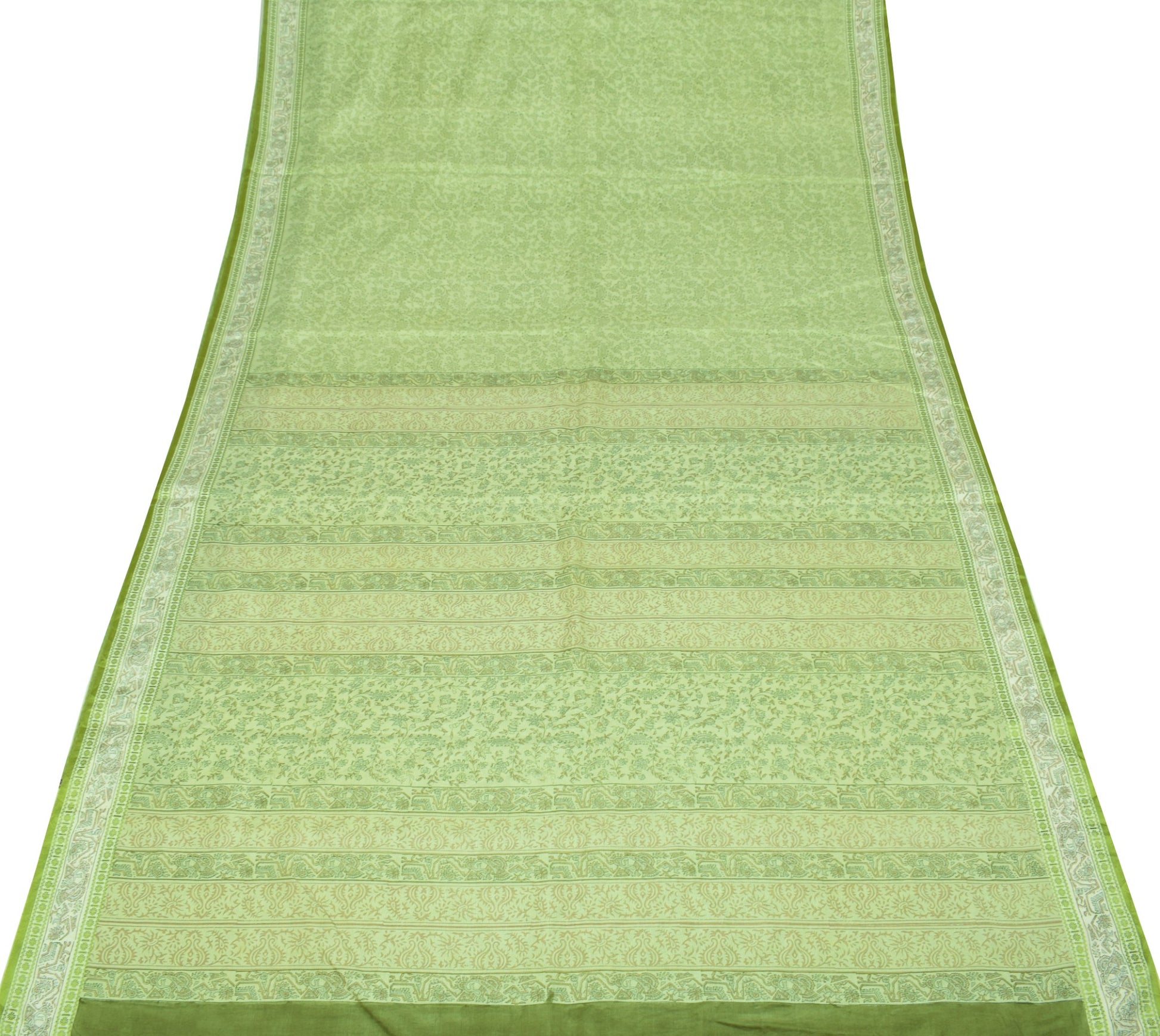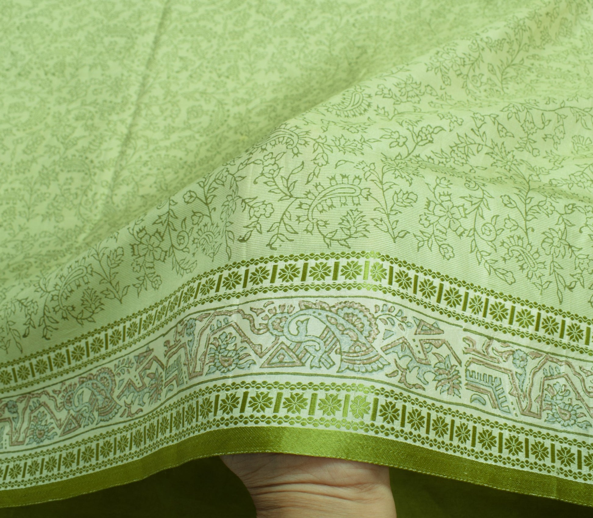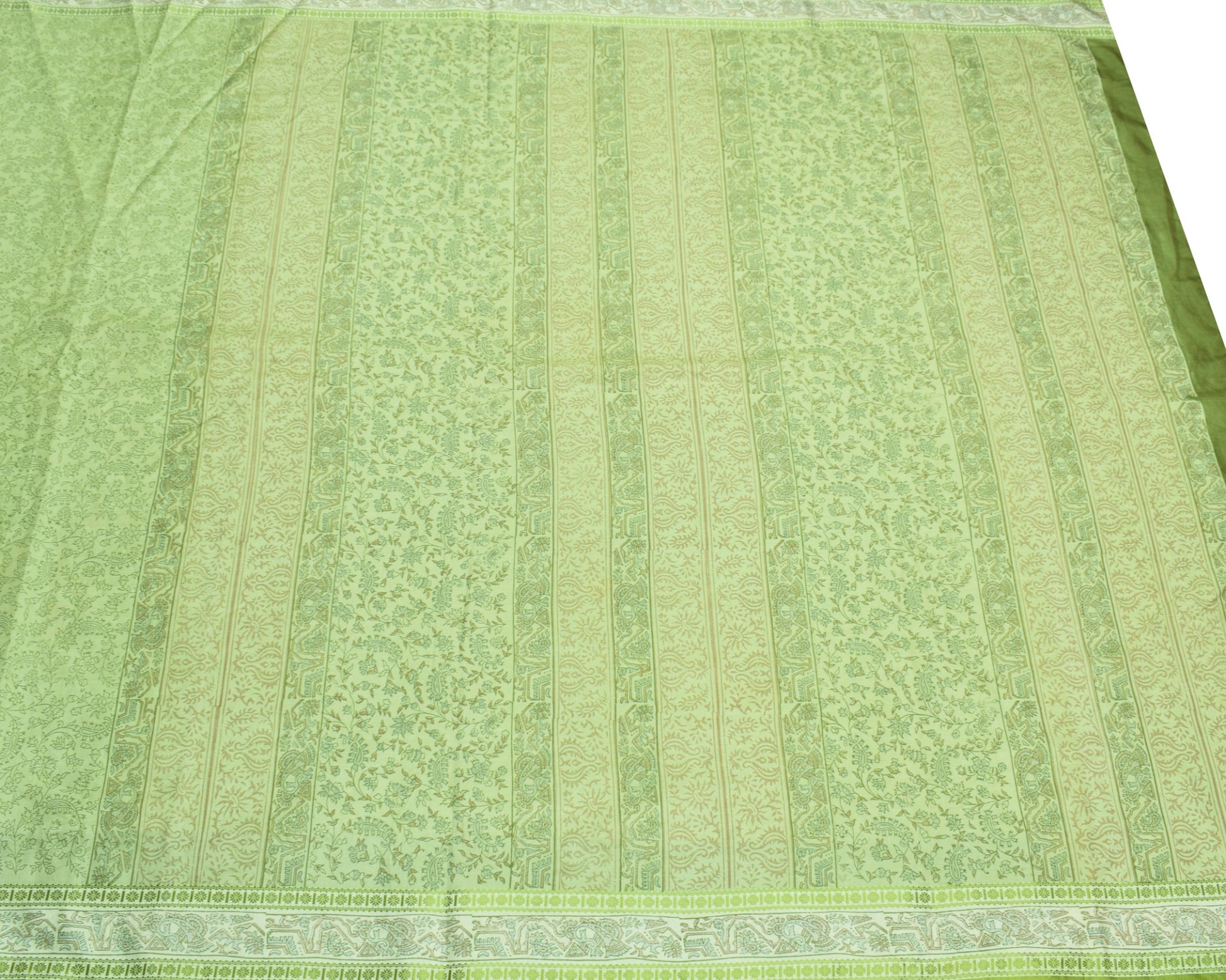 Sushila Vintage Paisley Green Saree Pure Silk Hand Block Printed 6YD Soft Fabric