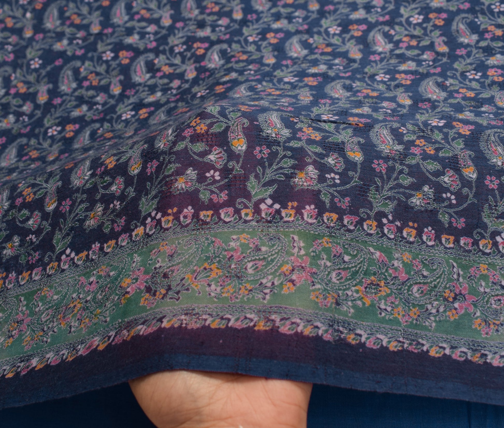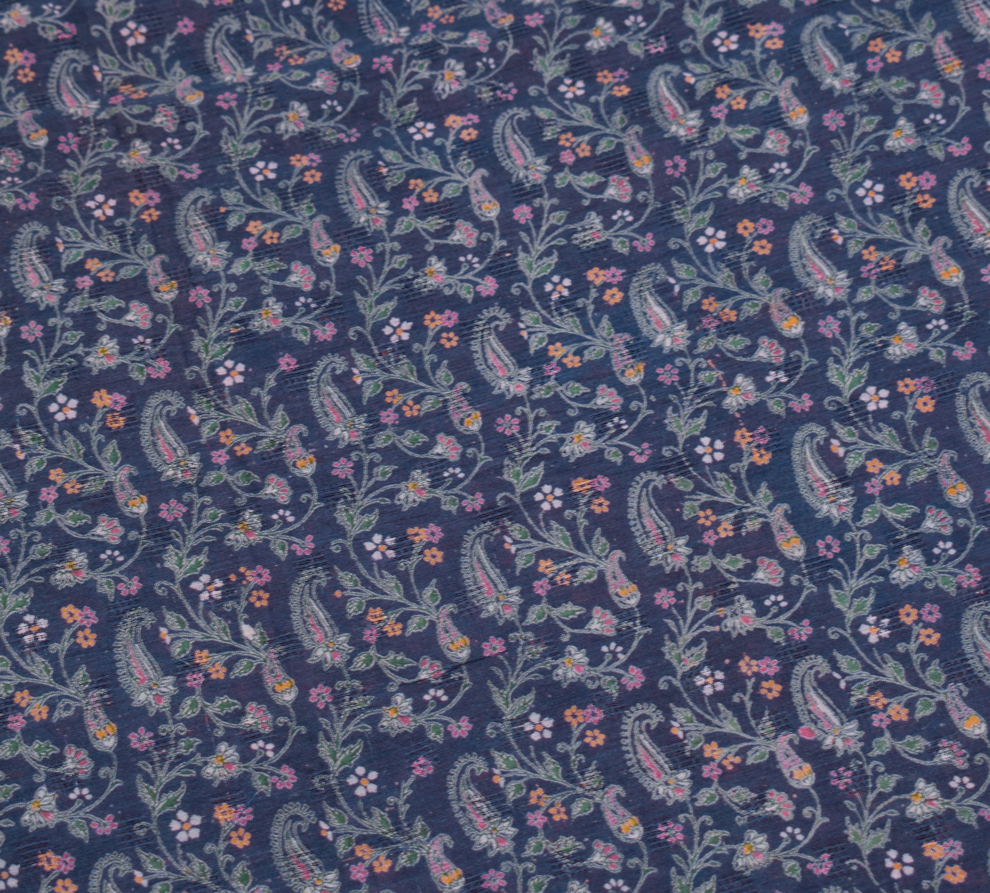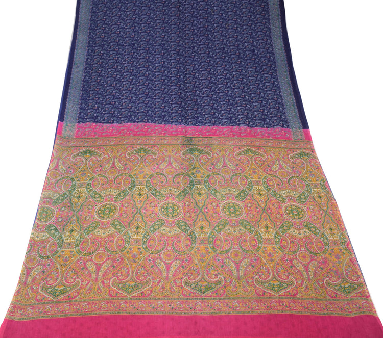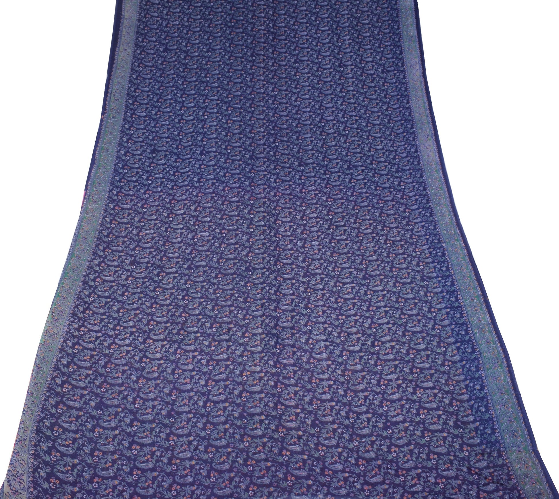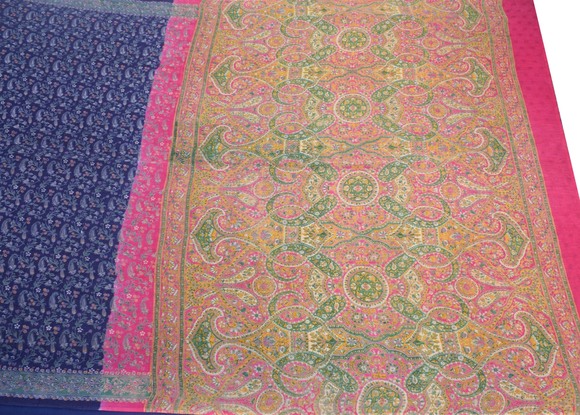 Sushila Vintage Paisley Printed Saree 100% Pure Cotton Blue Soft Craft Fabric