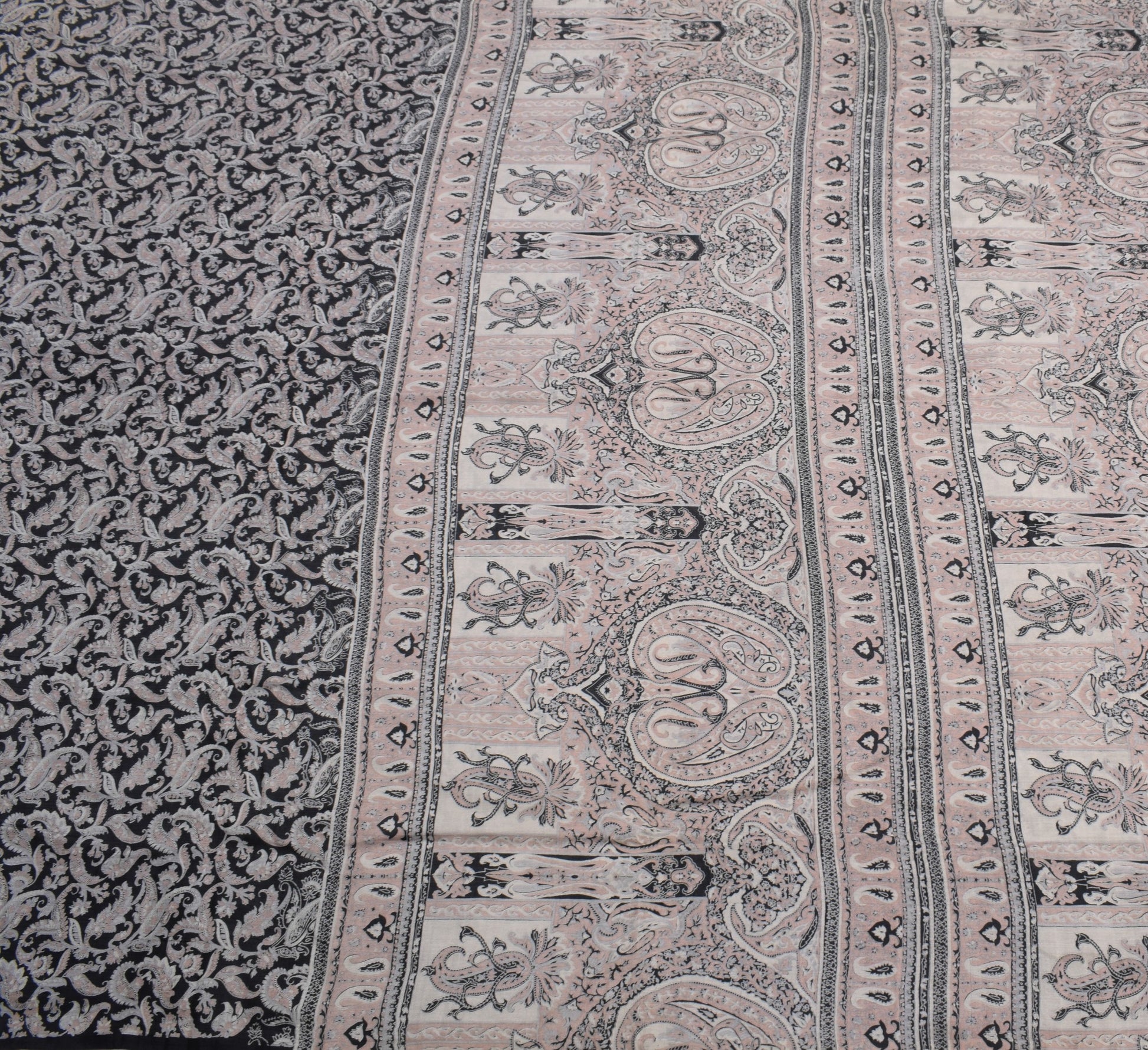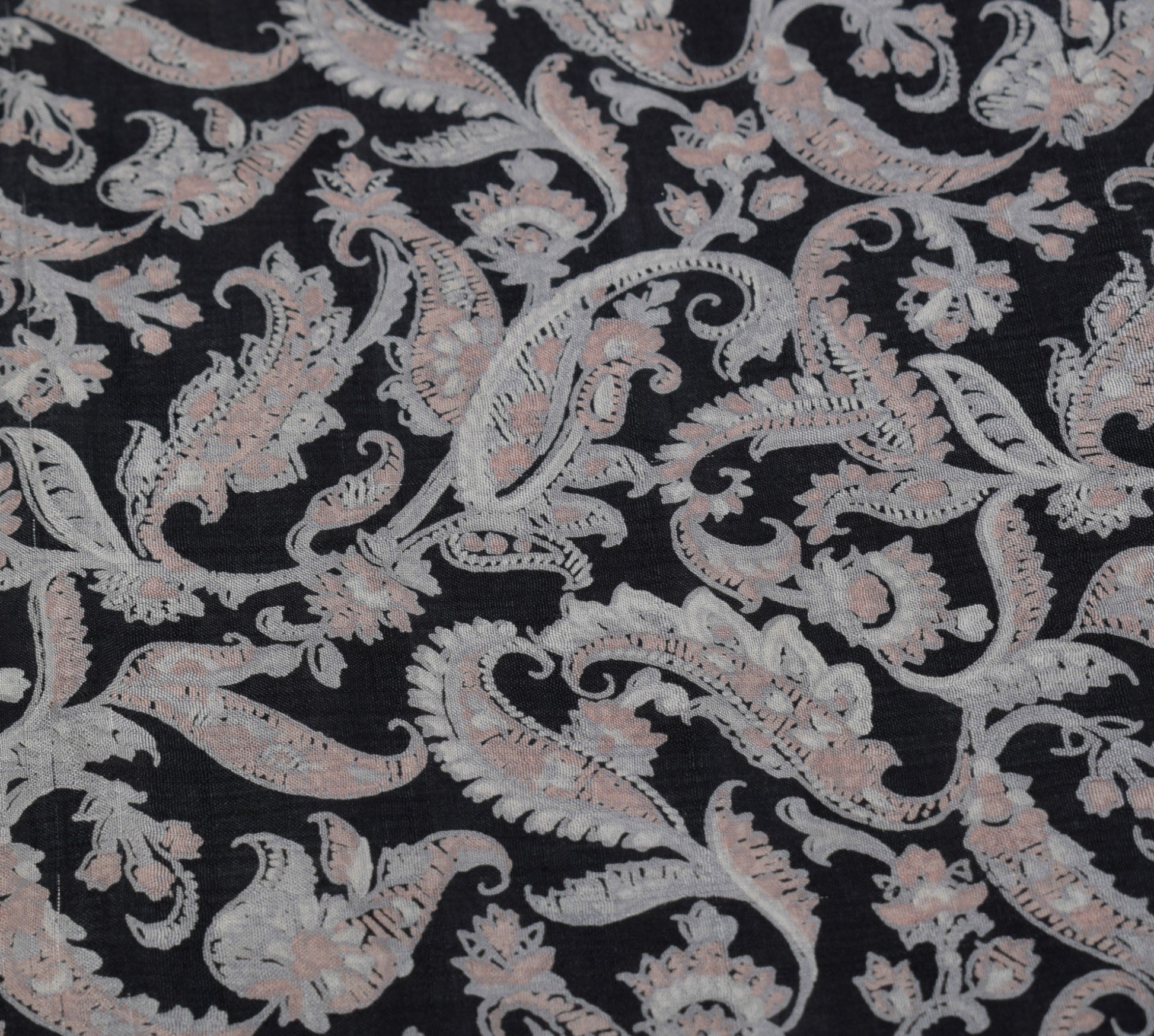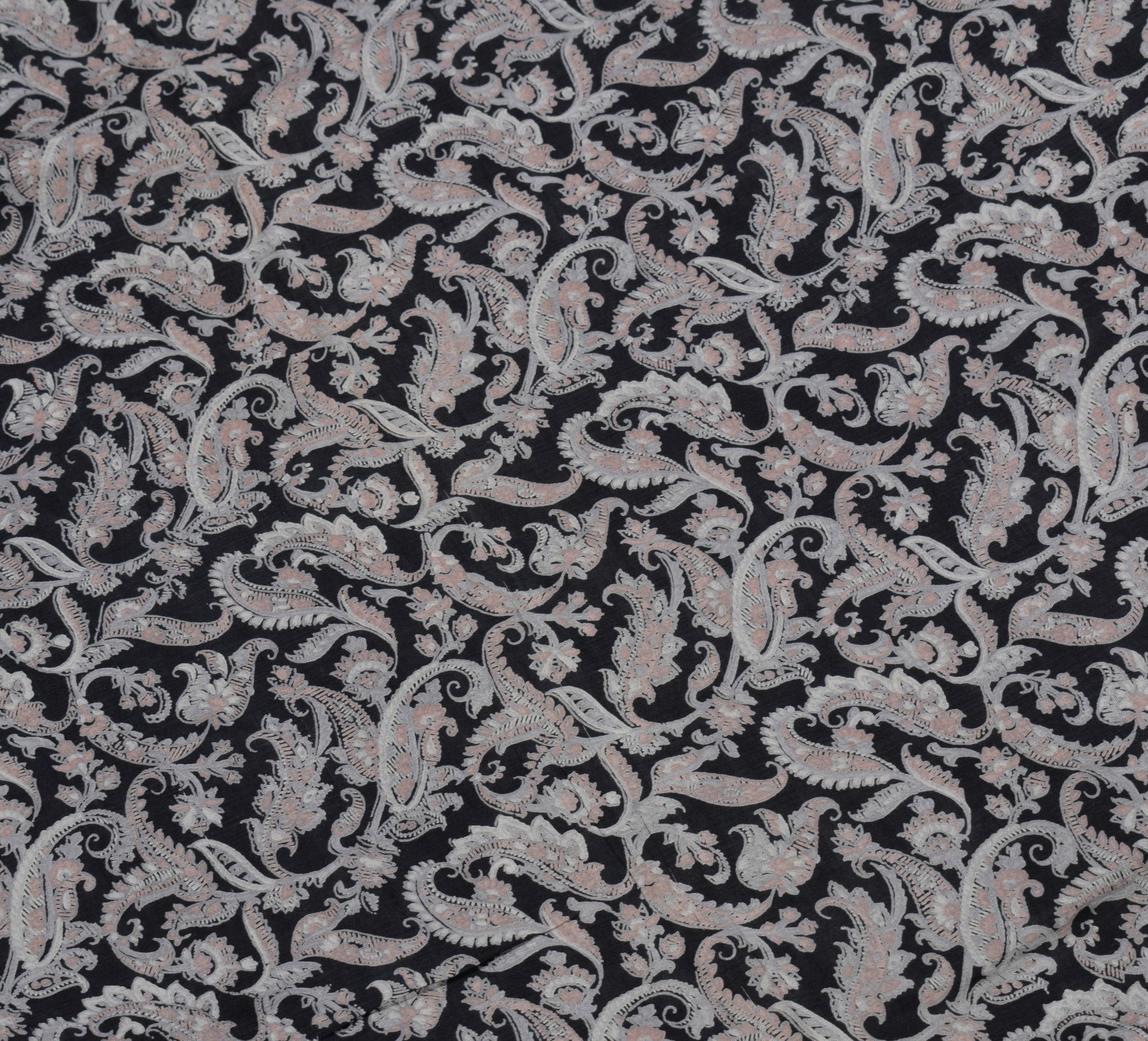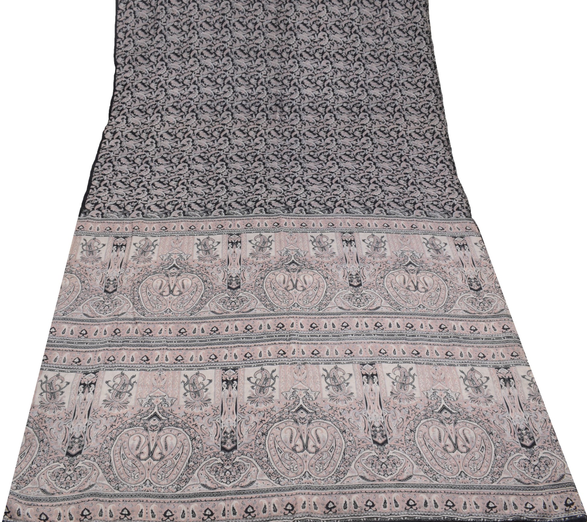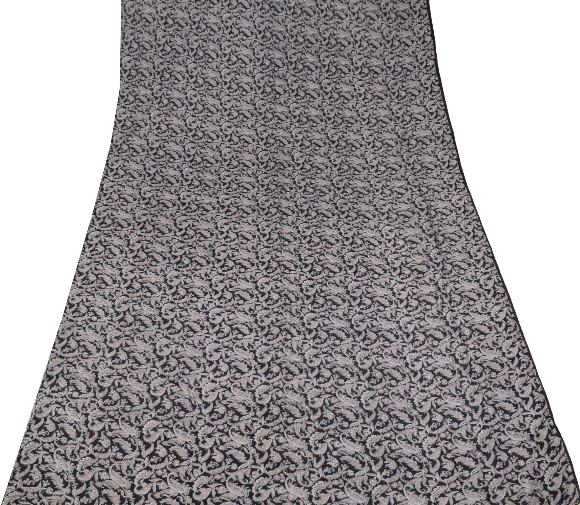 Sushila Vintage Paisley Printed Saree 100%Pure Silk Black Sari Soft Craft Fabric