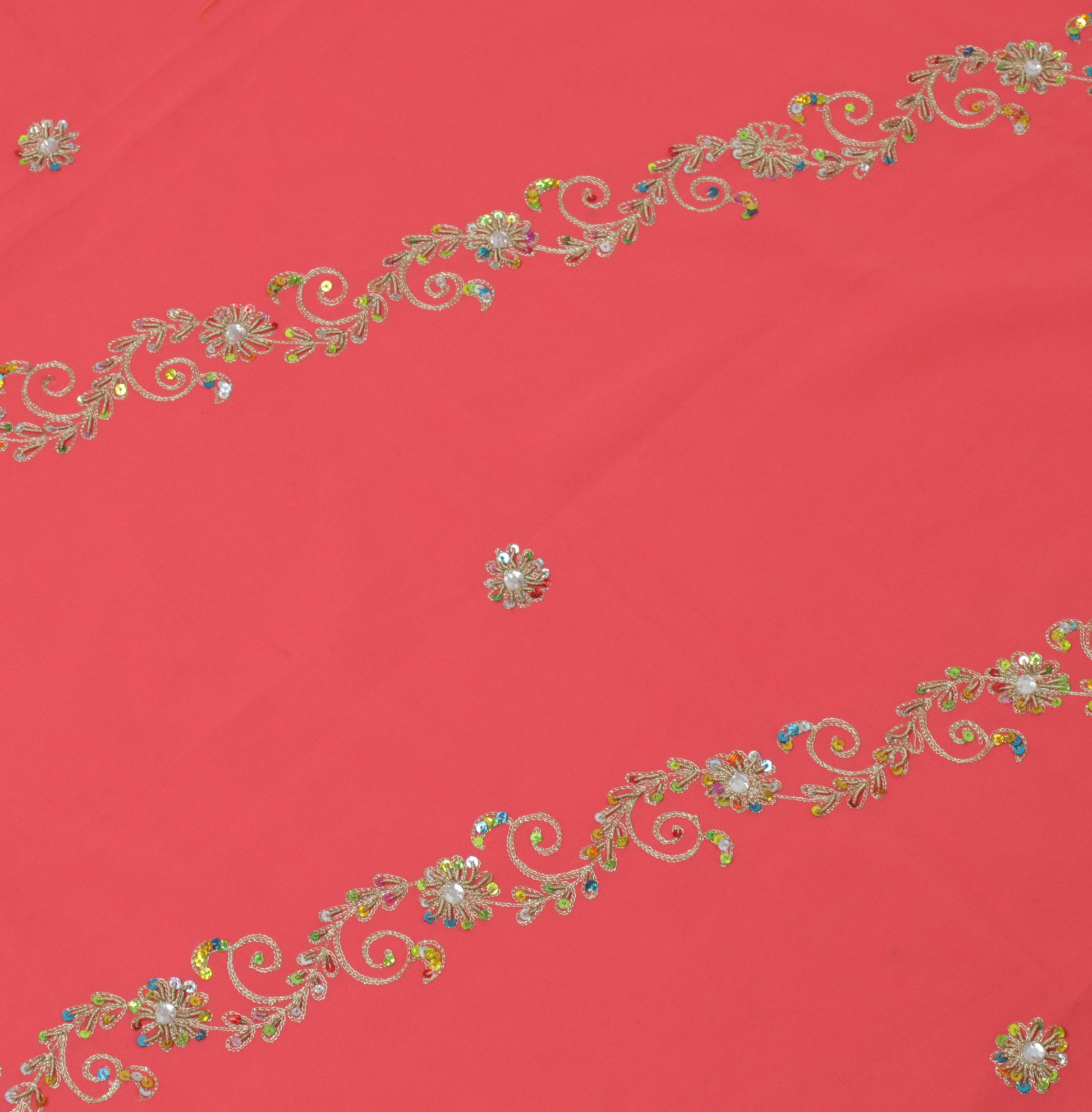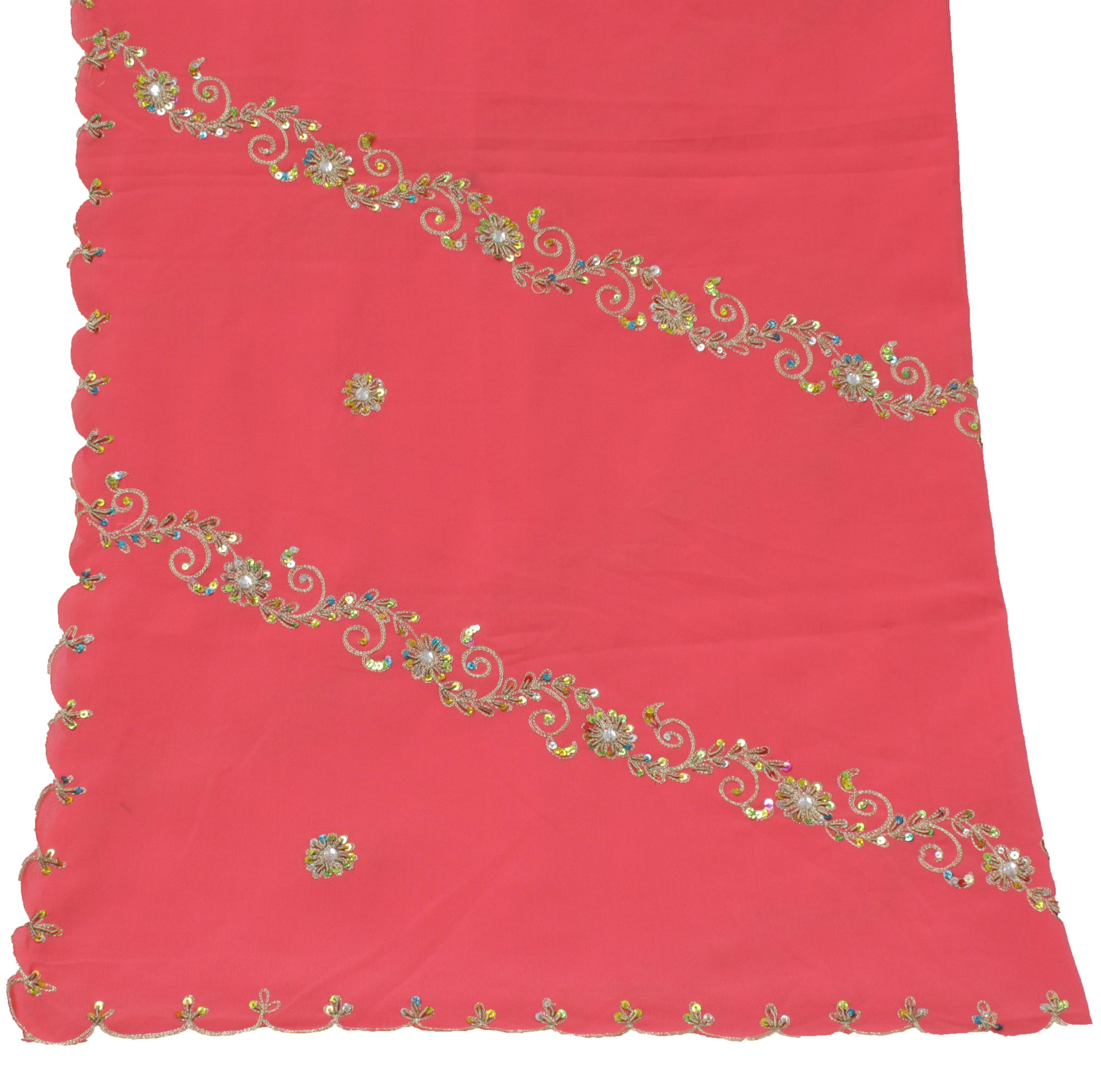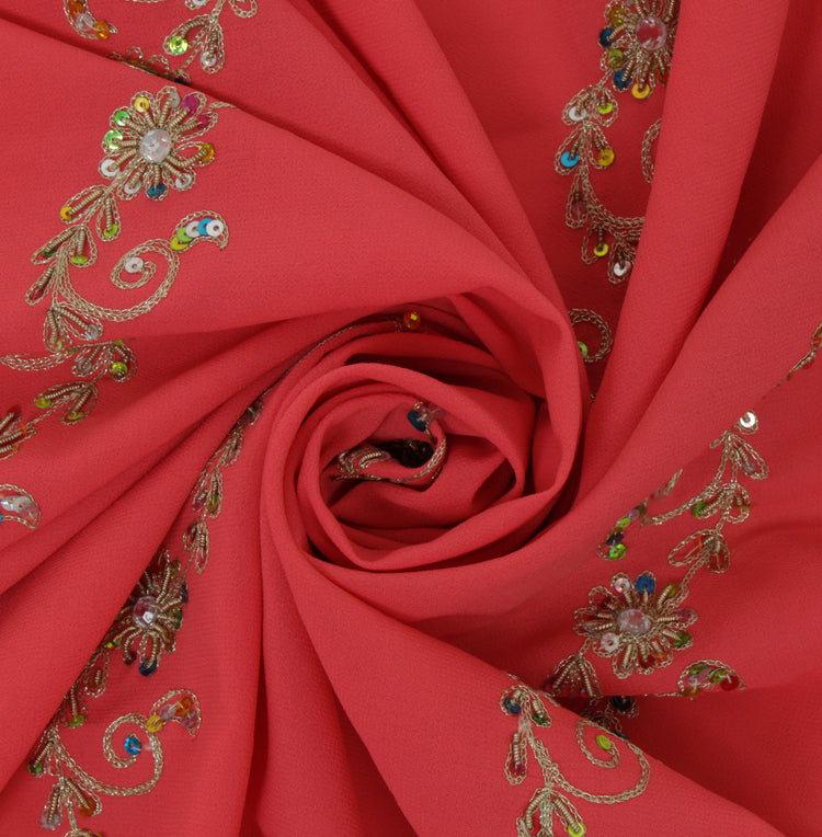 Make a lasting impression with this handcrafted Peach Floral Dupatta, Scarf, Indian Long Stole, Veil, or Hijab, ideal for adding a touch of sophistication to any outfit. Made from premium Blend Georgette Silk, this piece features intricate Hand Beaded Zardozi Work, Sequins Work, Rhine Stone & Zari Embroidered work, adding a touch of traditional charm to any outfit. The Peach base beautifully complements the delicate Floral detailing, creating a truly timeless accessory.