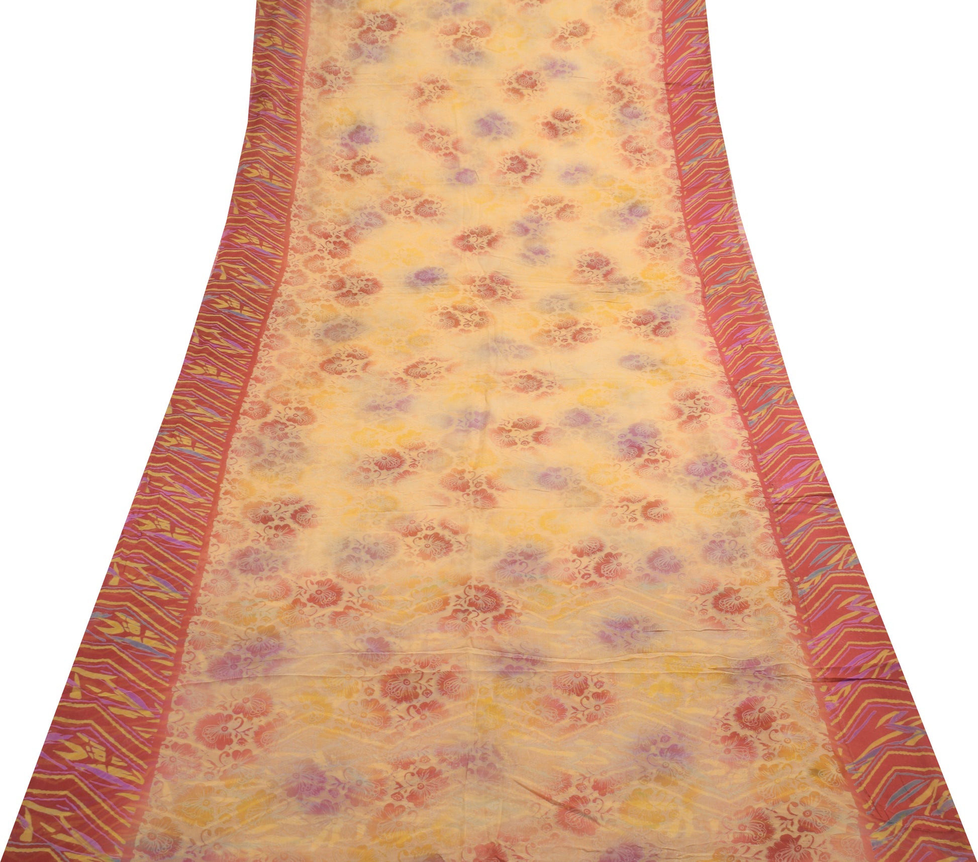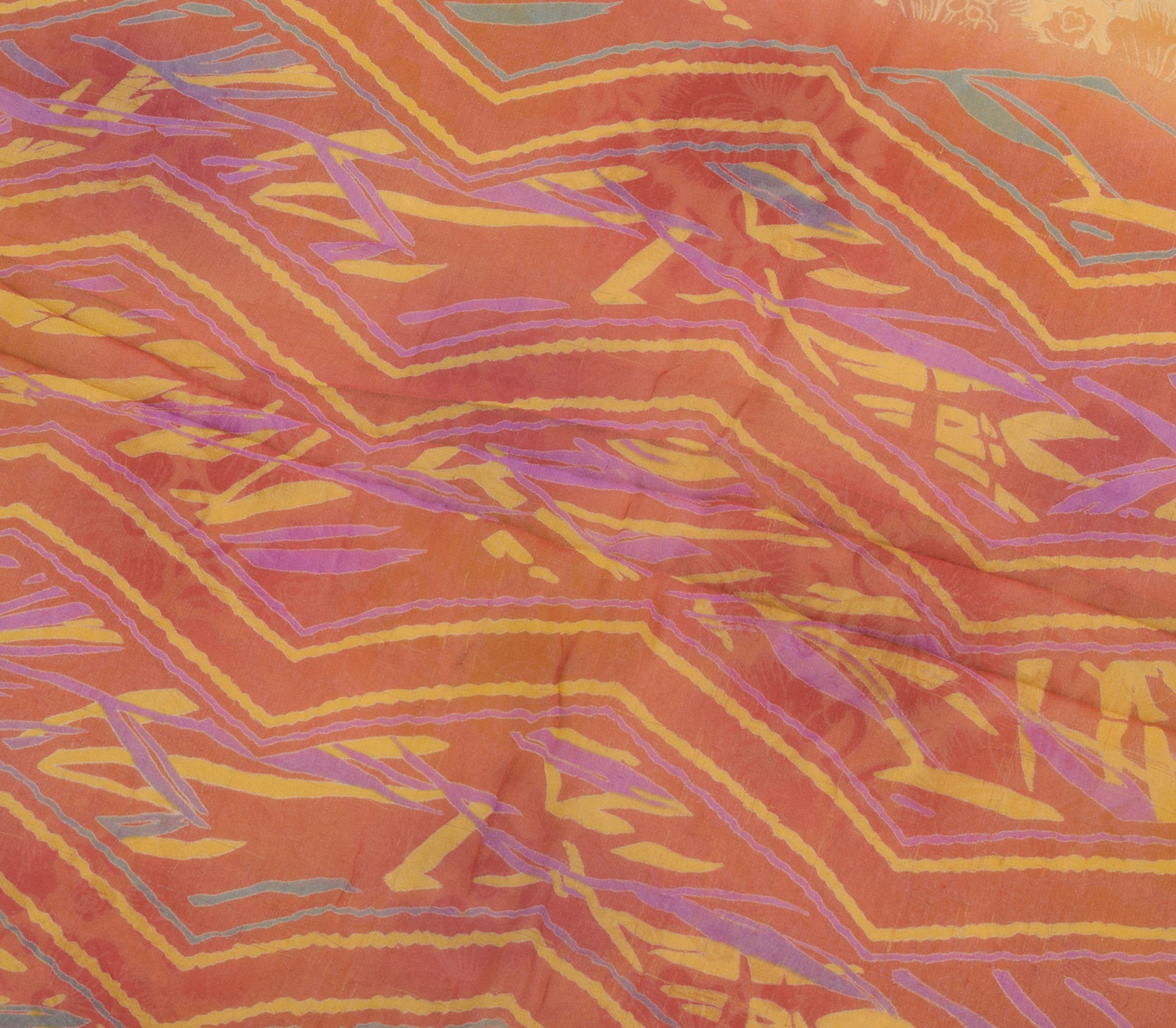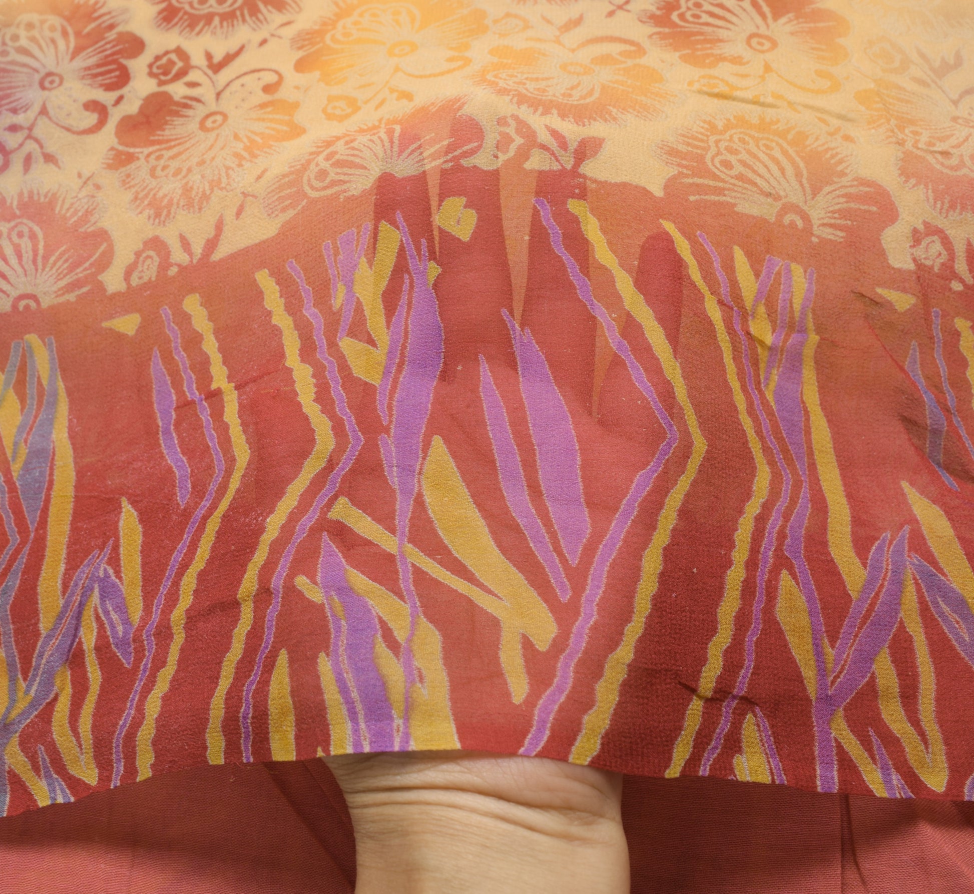Sushila Vintage Peach Floral Saree 100% Pure Georgette Silk Printed Craft Fabric