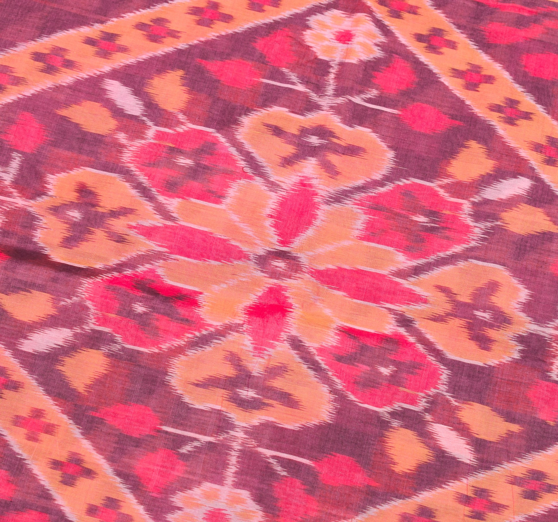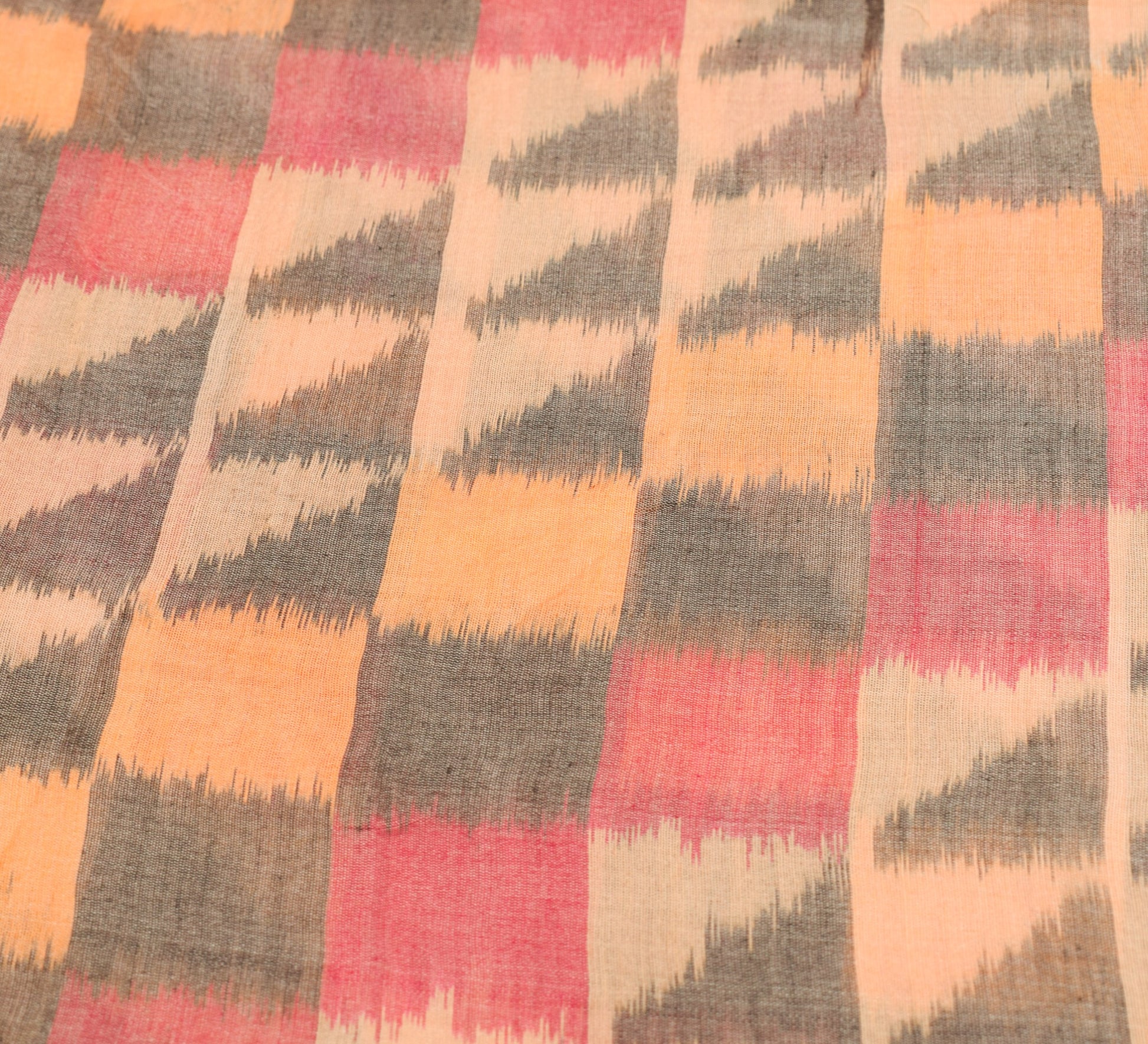 Sushila Vintage Peach Pure Cotton Silk Saree Zari Border Pochampally Ikat Sari