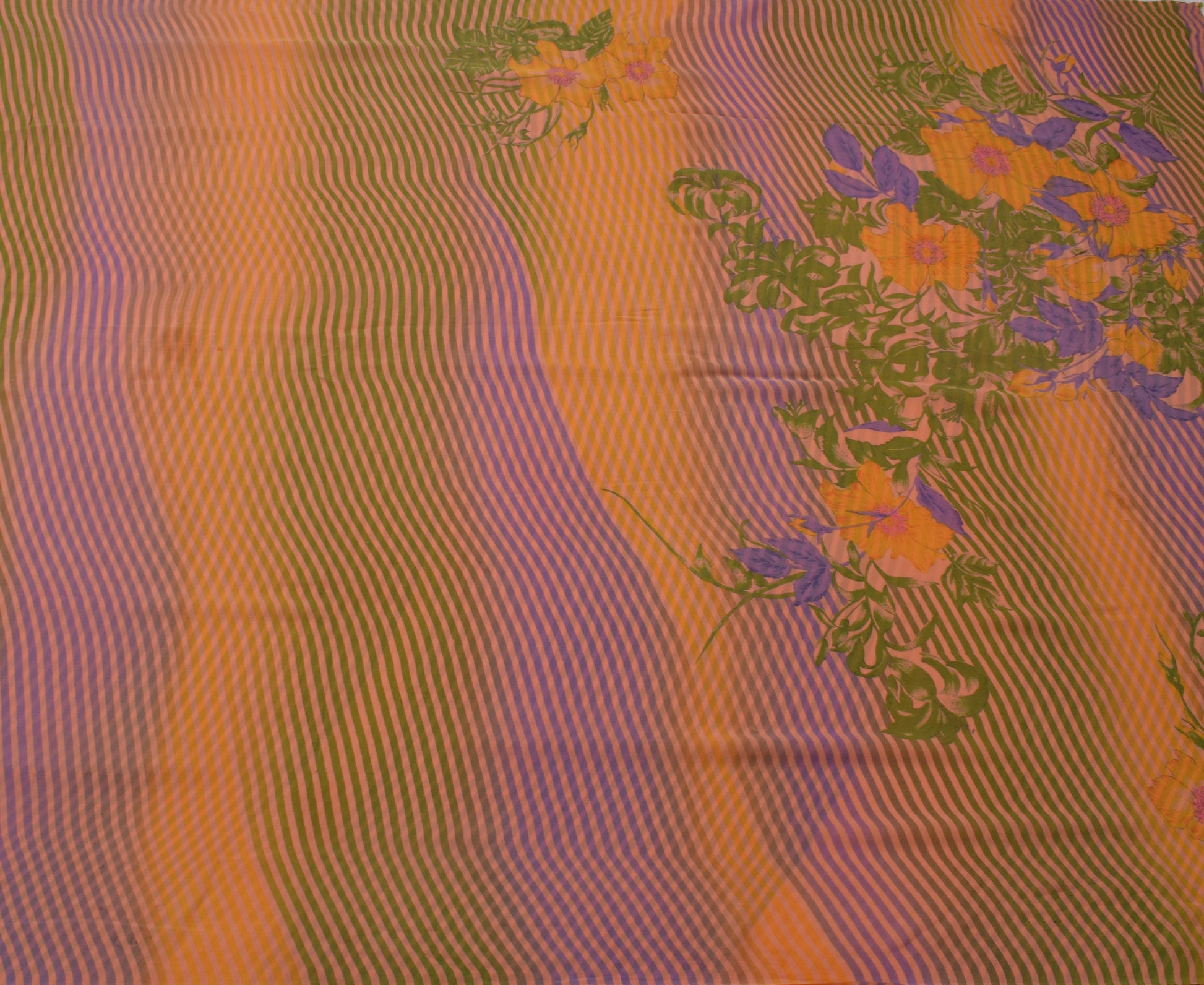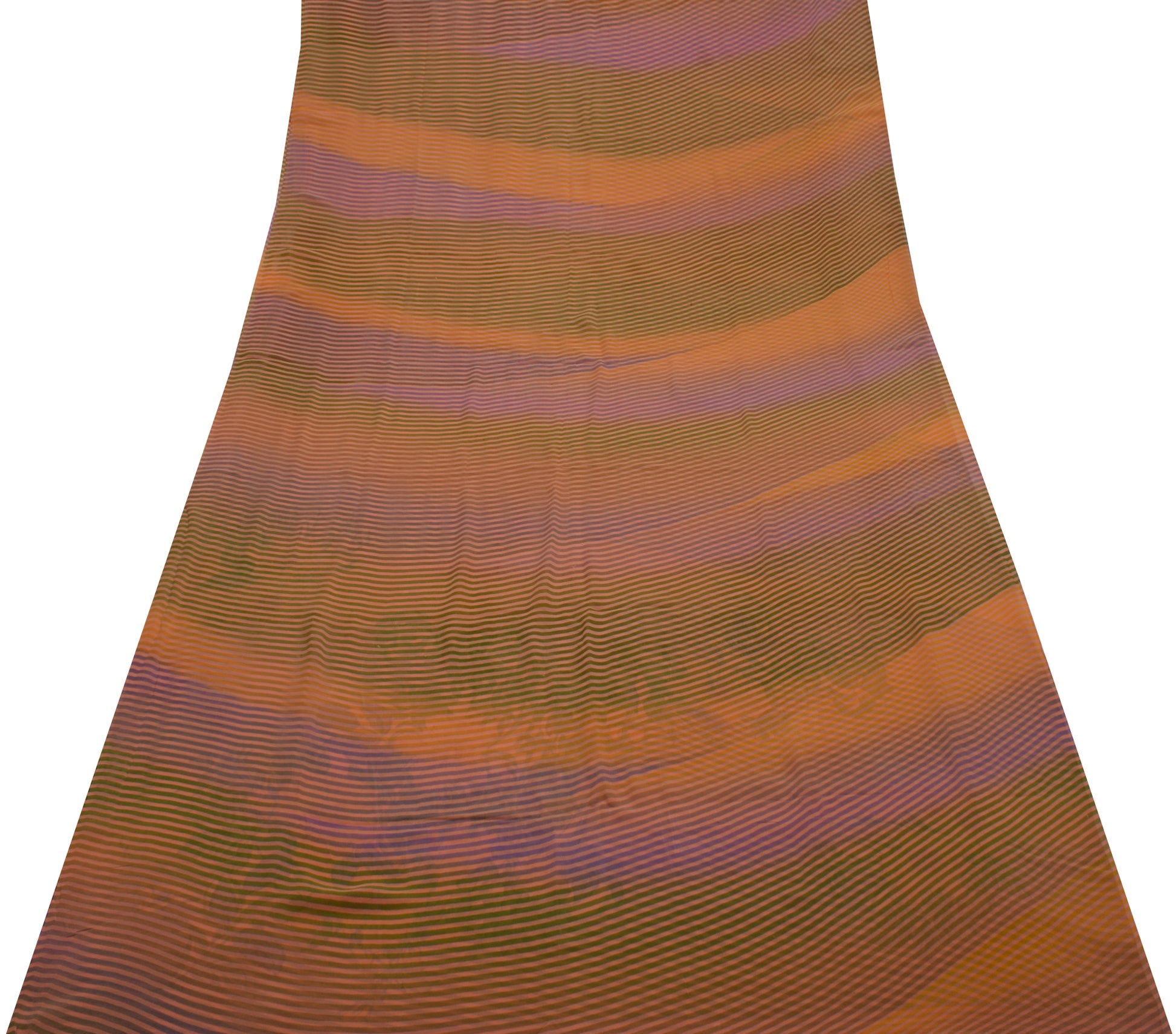 Sushila Vintage Peach Saree 100% Pure Georgette Silk Printed Strips Craft Fabric