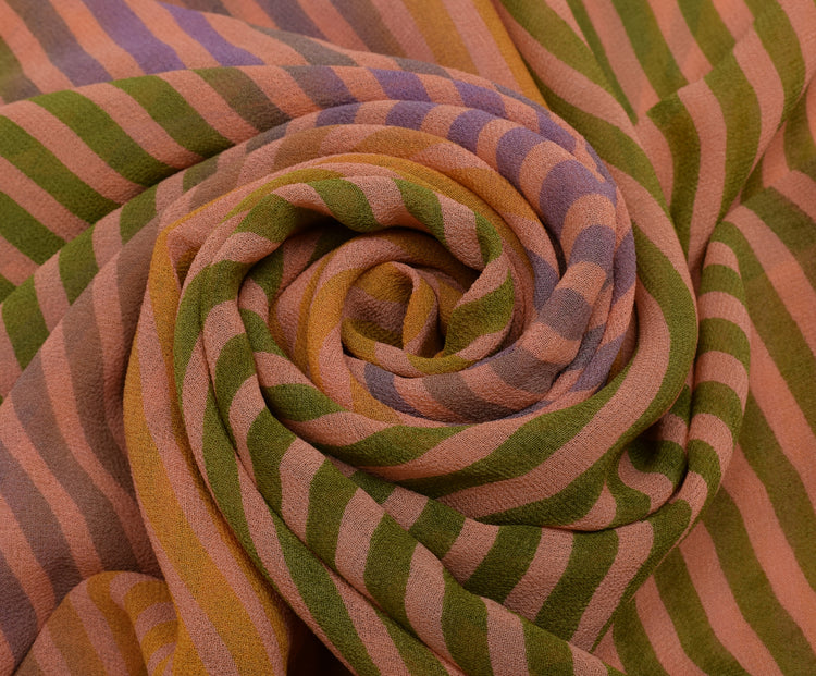Experience the timeless allure of this Peach 100% Pure Georgette Silk saree, crafted with intricate Strips motifs and refined Printed details. It is perfect for special occasions, creative repurposing, or as a beautiful heirloom gift. Measuring approximately 192 Inch in length and 43 Inch in width, this sari offers versatile styling options. It is lightweight, weighing just 325 Grams (Actual Product weight), making it easy to drape and carry for long hours. The natural breathability and luxurious drape of 100% pure georgette silk make it a prized choice for those who appreciate fine craftsmanship and vintage fashion.